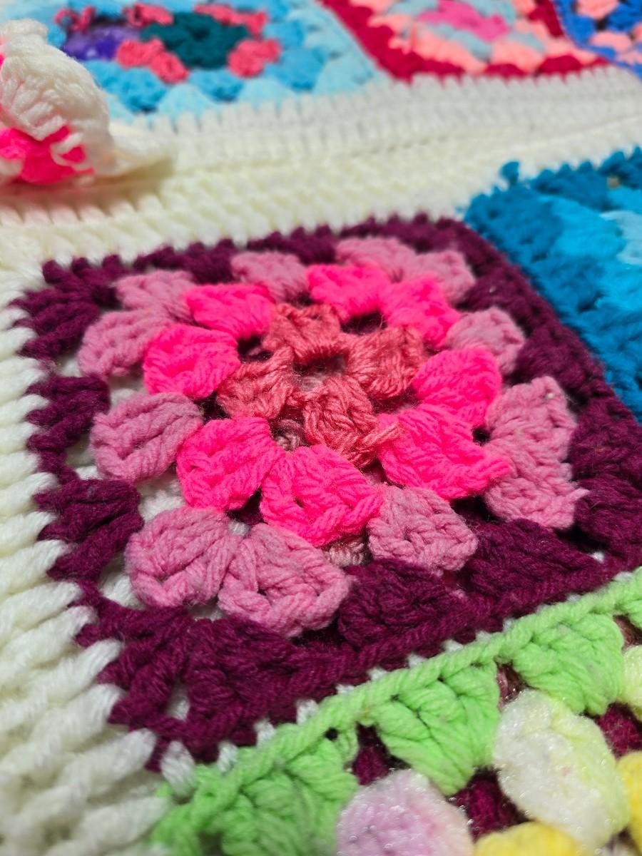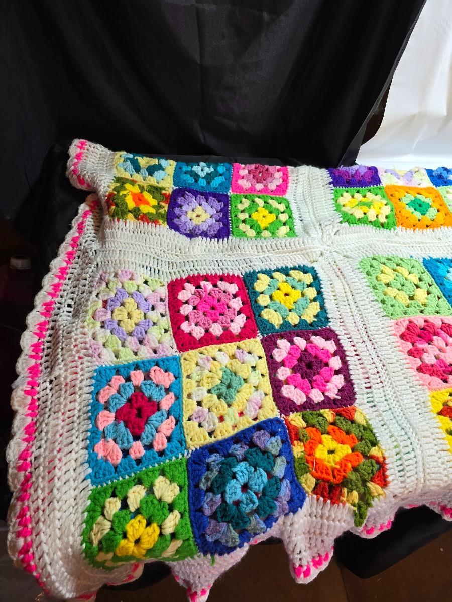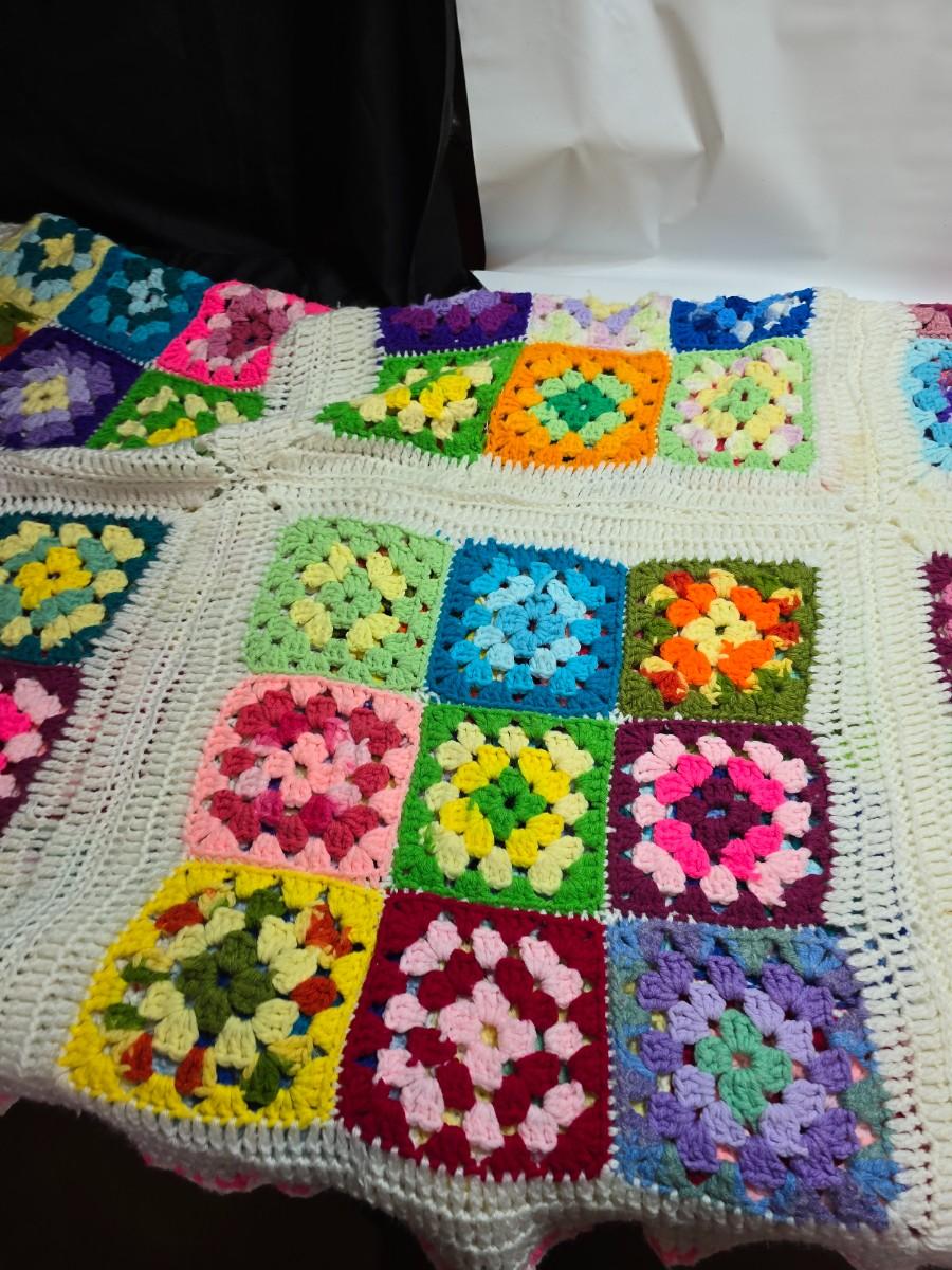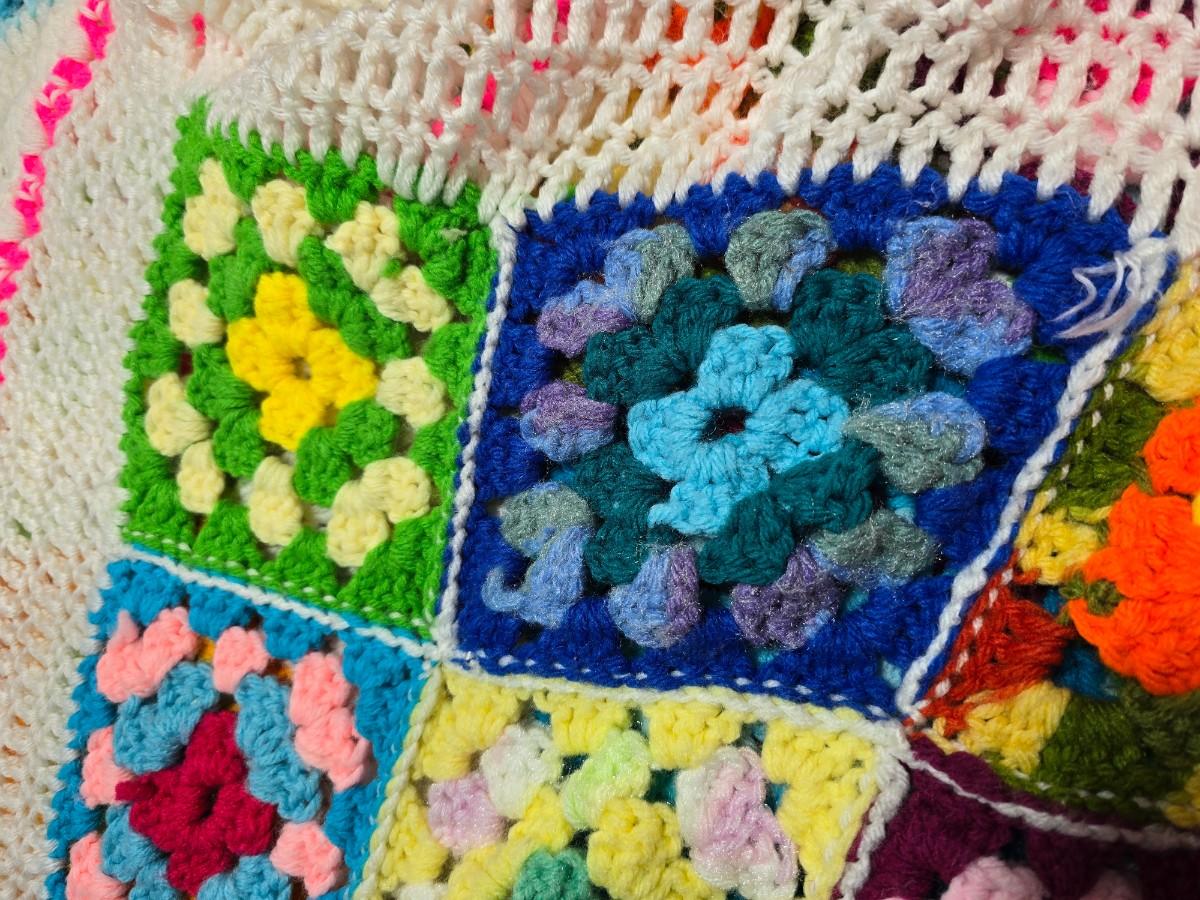 Fancy and fun crocheted Afghan blanket - colorful quilted like pattern