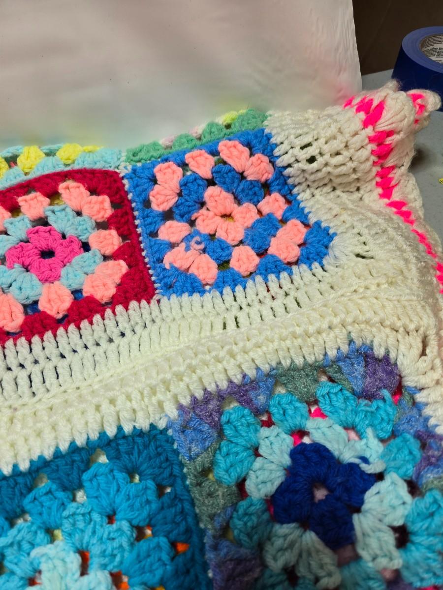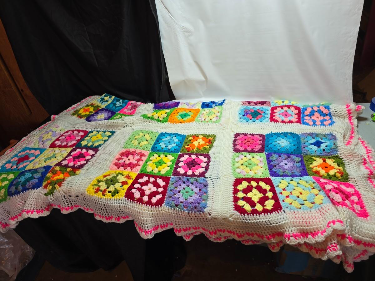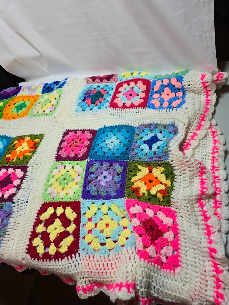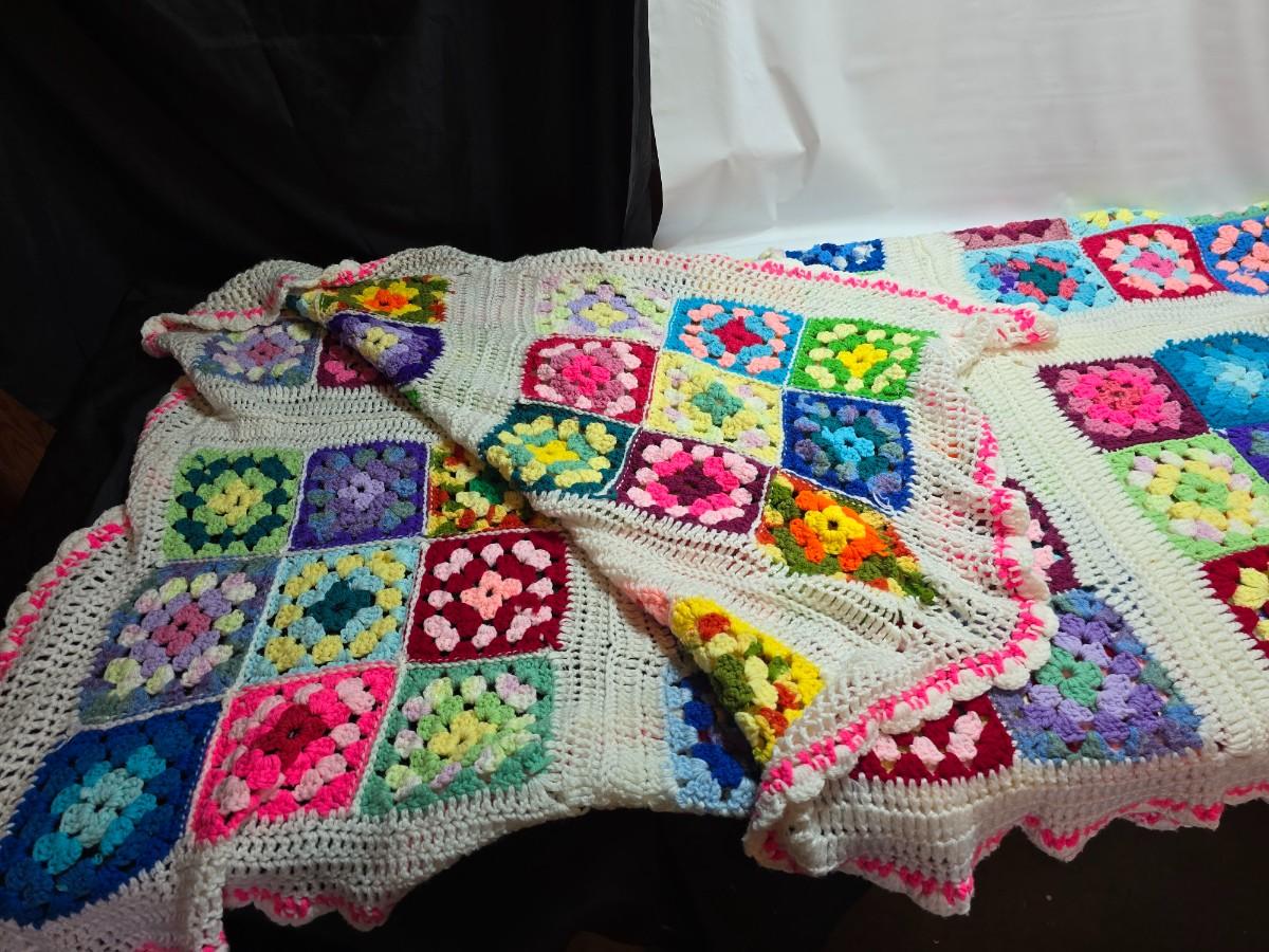 Fancy and fun crocheted Afghan blanket - colorful quilted like pattern