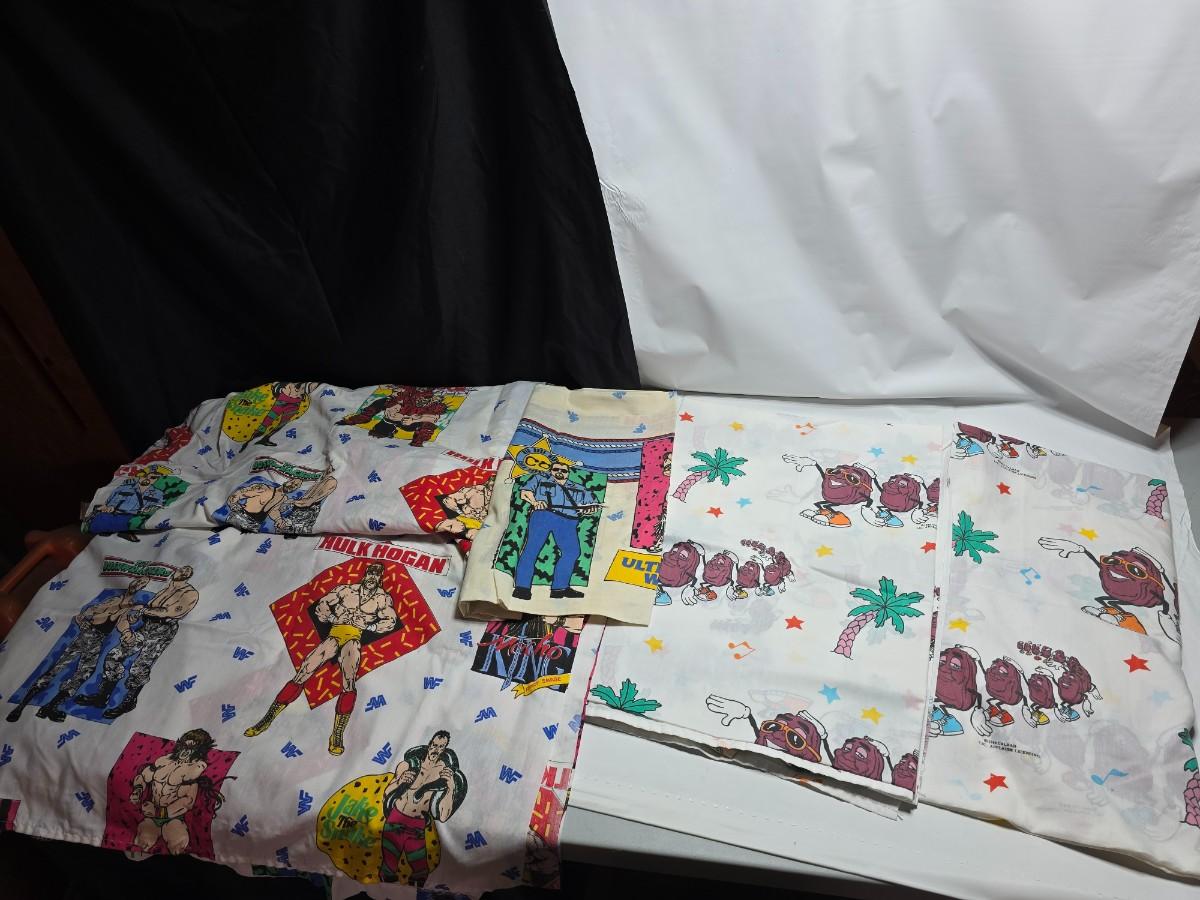 Twin sized vintage sheets - California Raisins - and wrestle mania including Hulk Hogan!