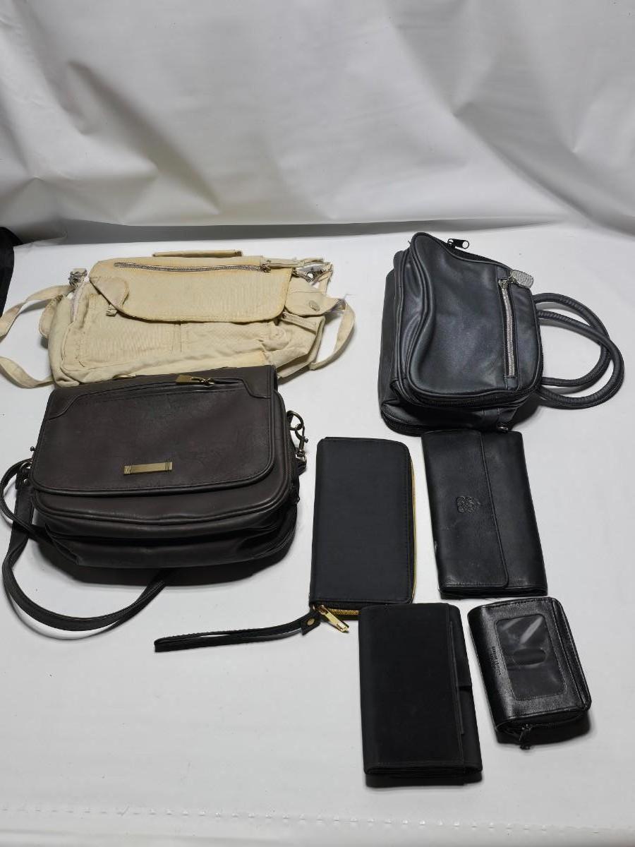 Collection of purses and small wallets - including vintage 1960's beaded purse with Bakelite handle Kiss lock purse -