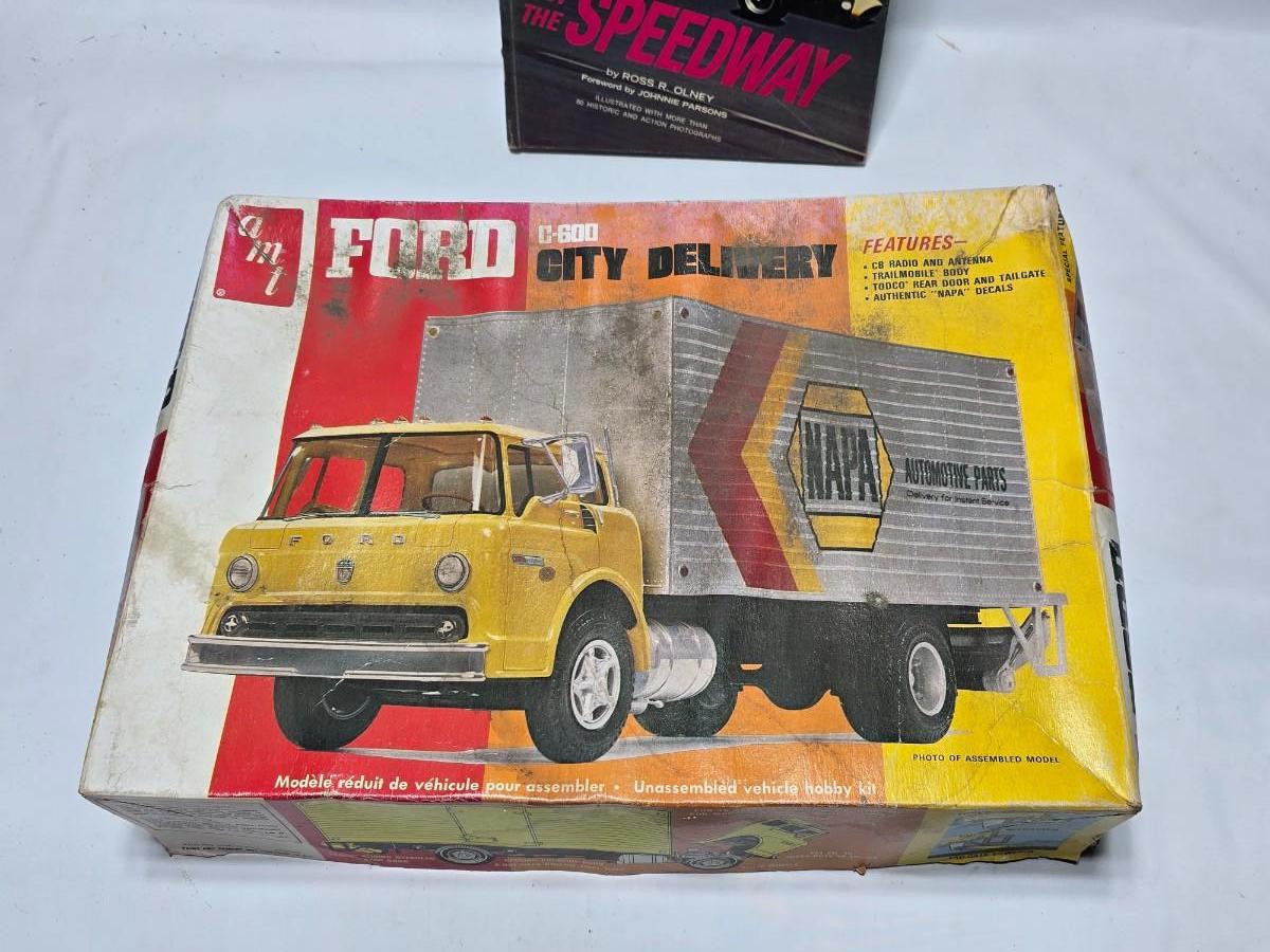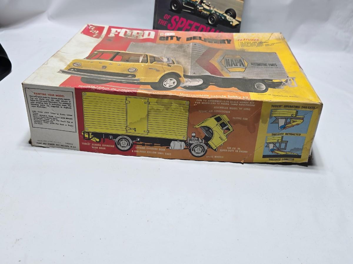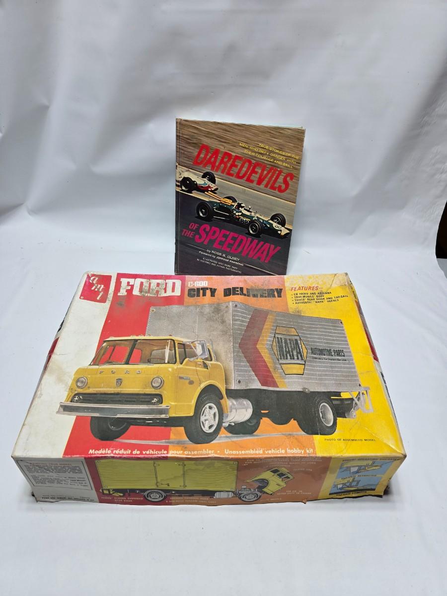 Vintage AMT Ford C600 City Delivery Hertz 1/25 Scale Model Kit T548 appears complete with a Darefevil book