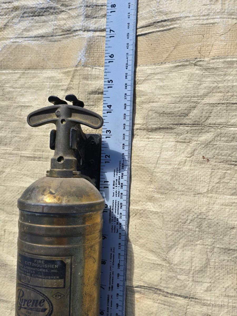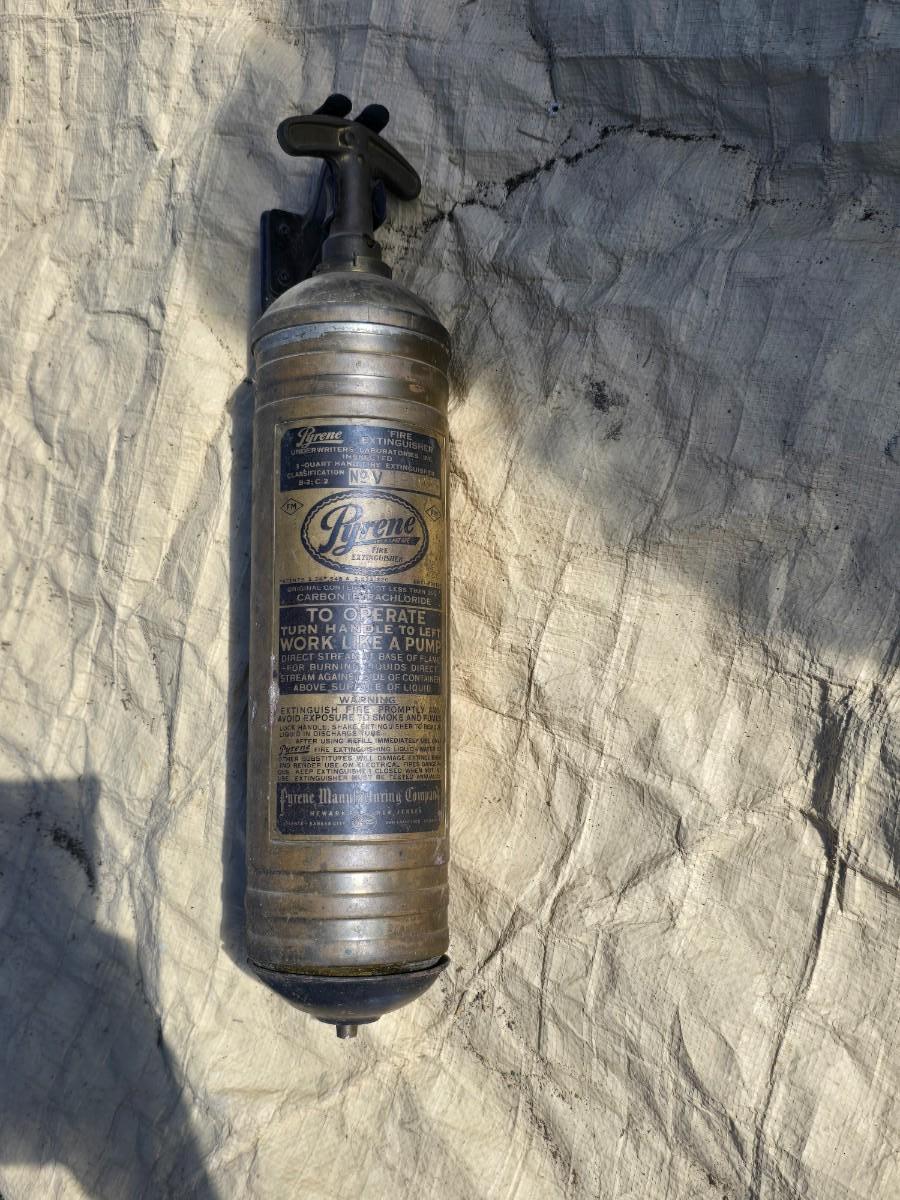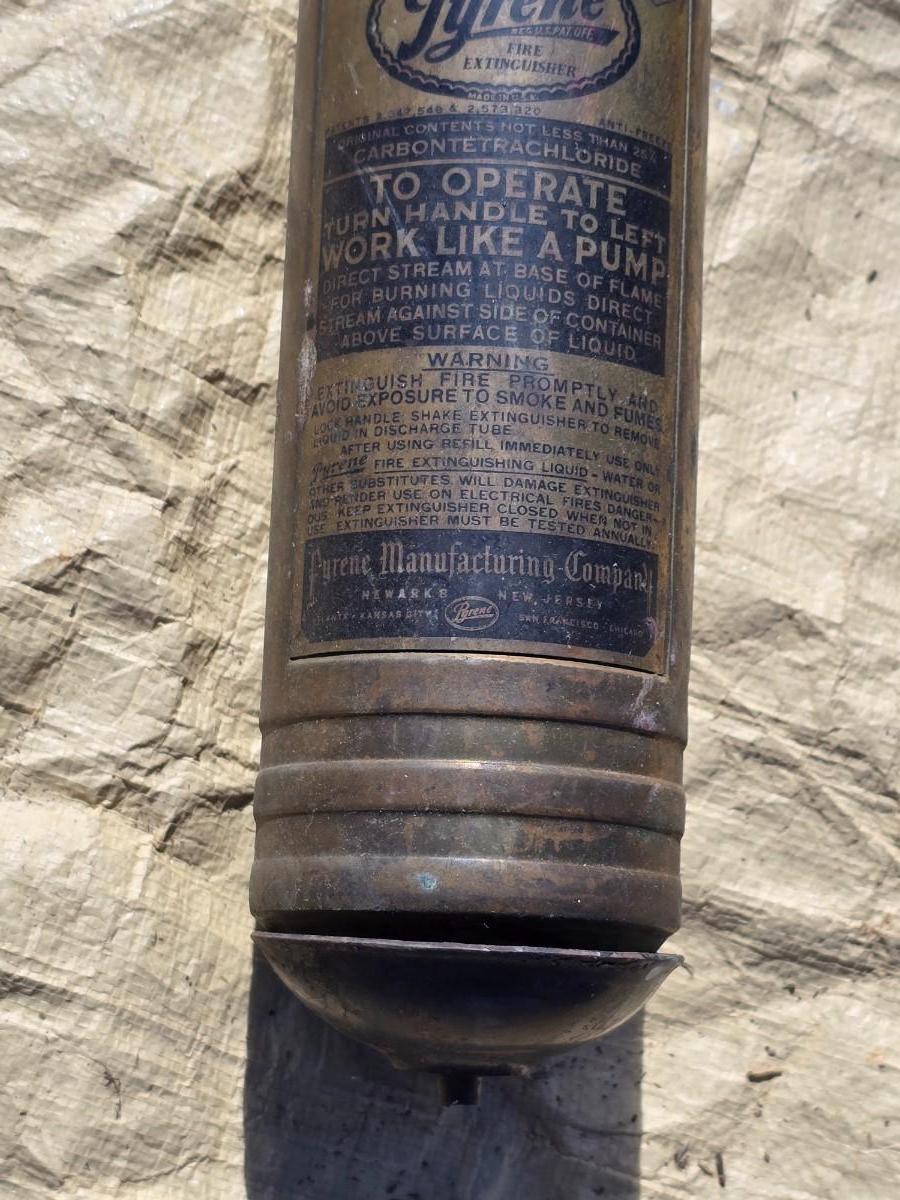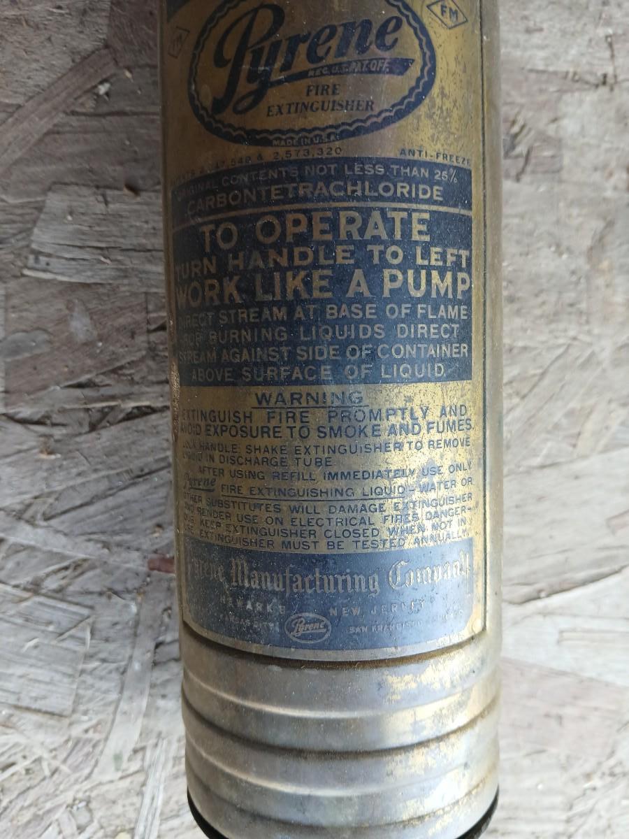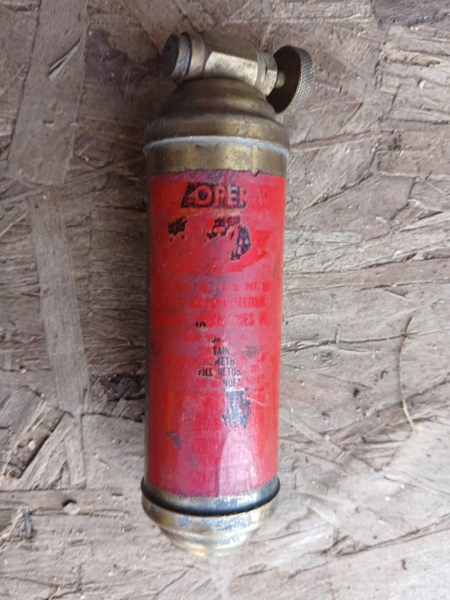 Vintage brass Fire Extinguishers - Pyrene manufacturing - and vintage Presto CB motorcycle fire extinguisher