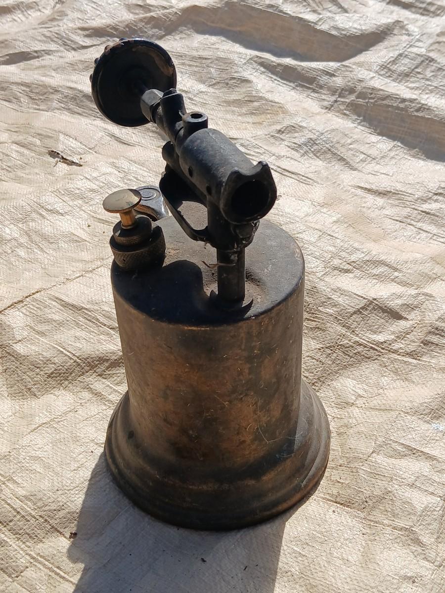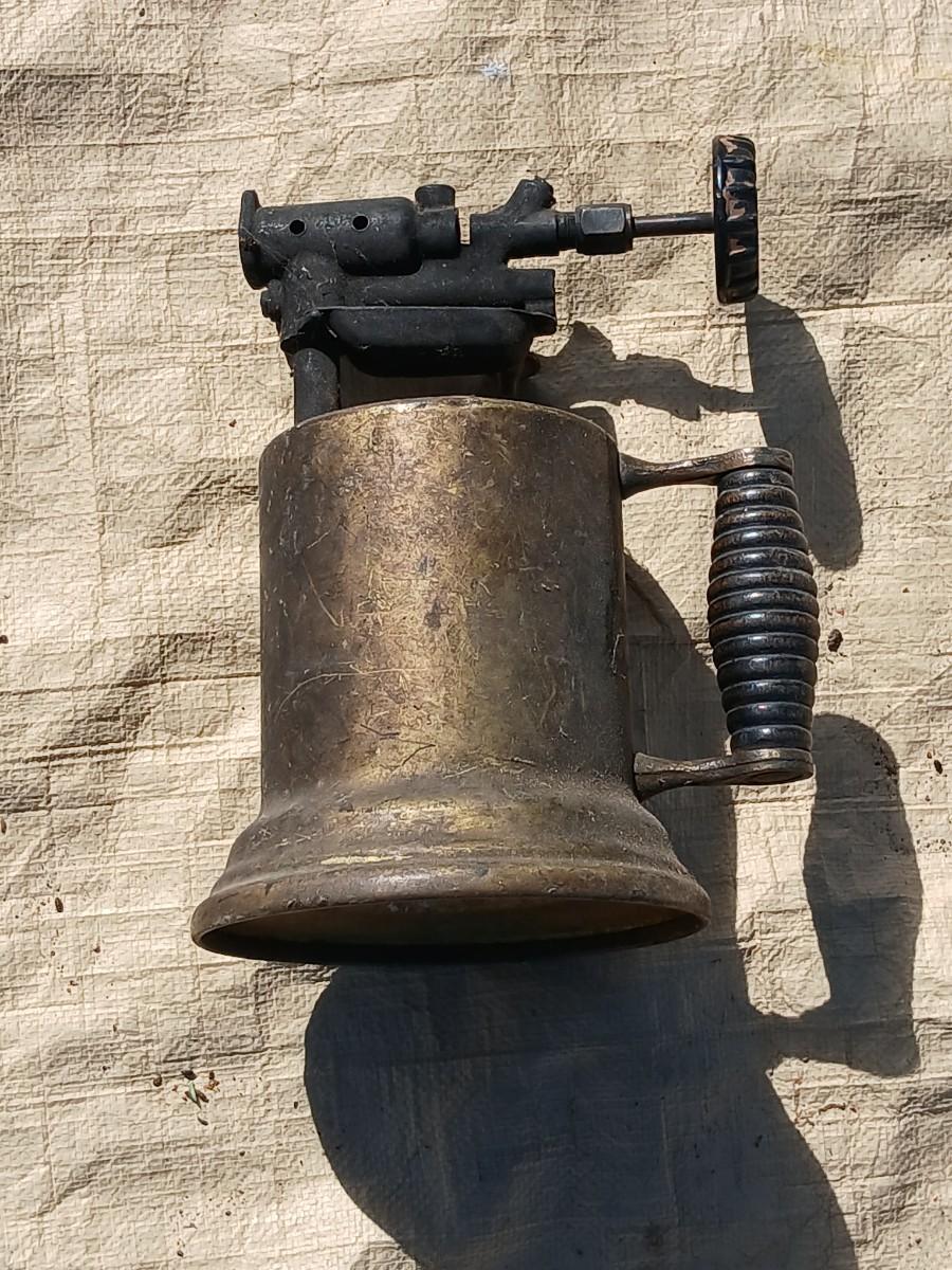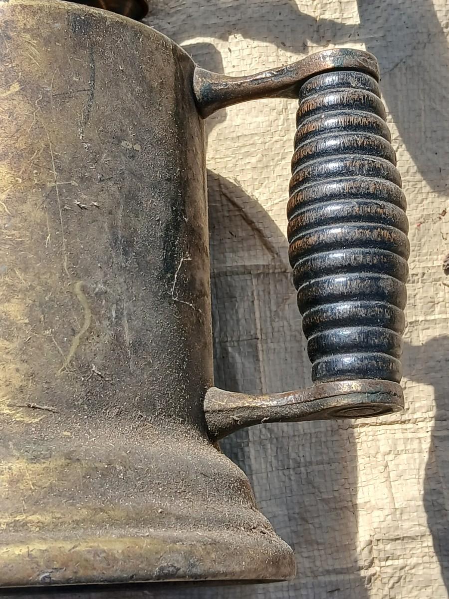 Antique Brass blow torch with wooden rustic handle Unrestored blow torch