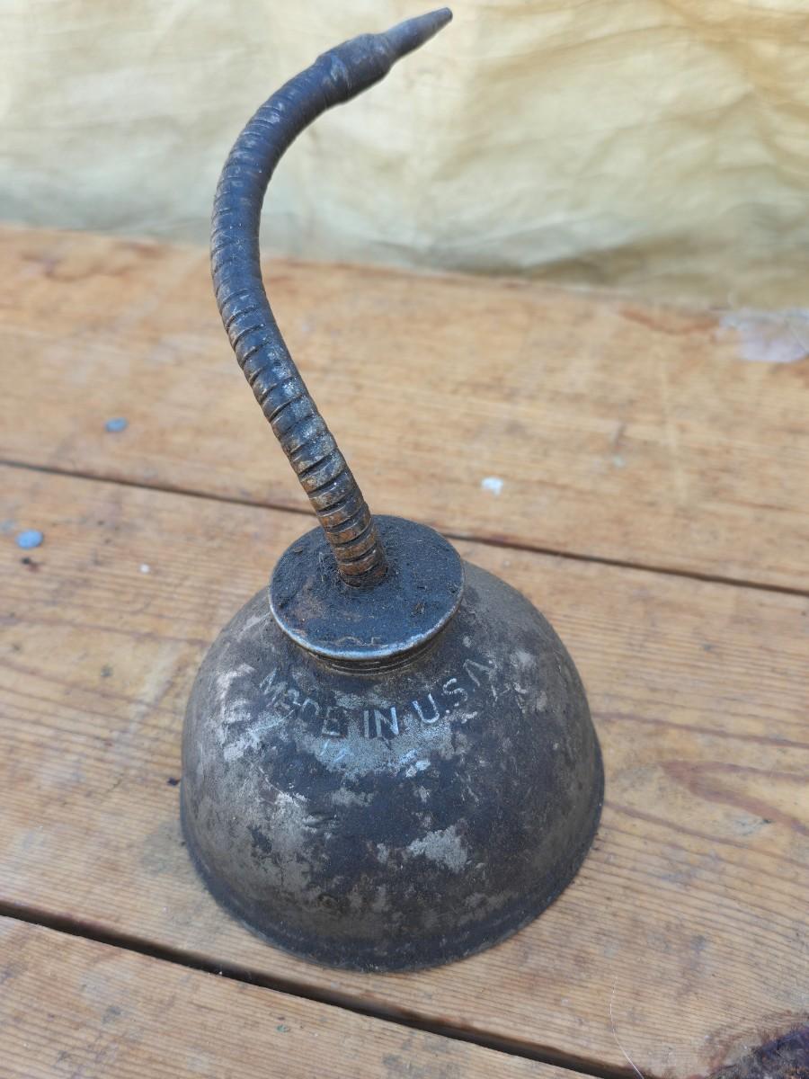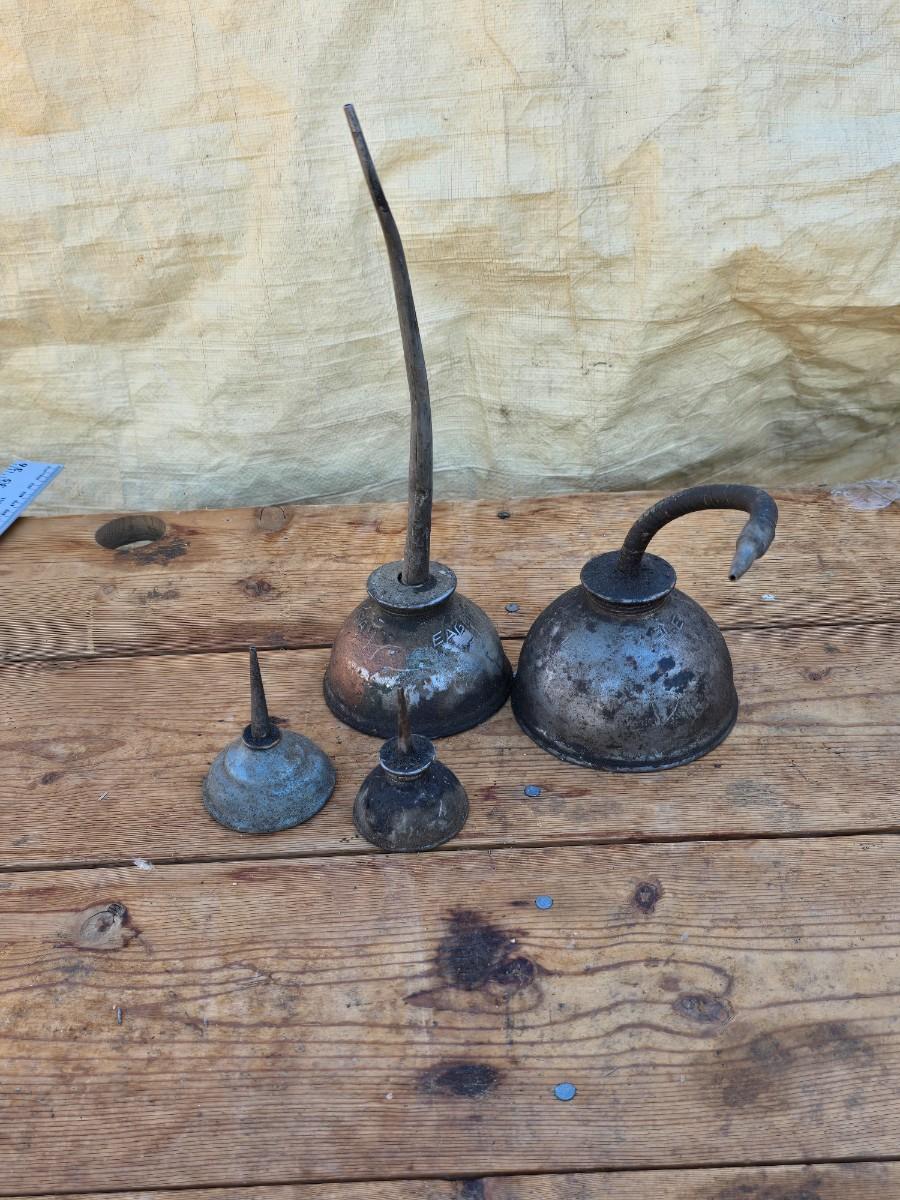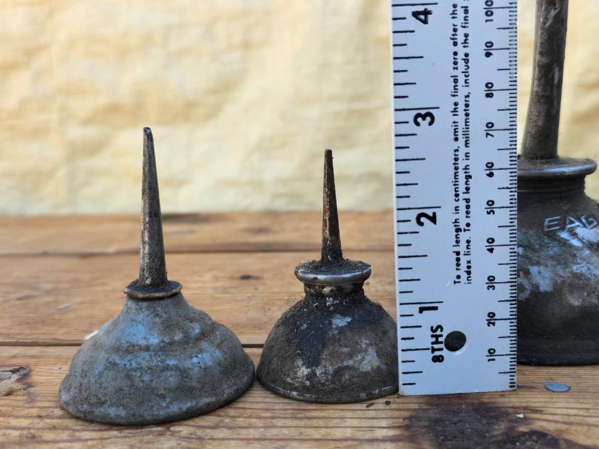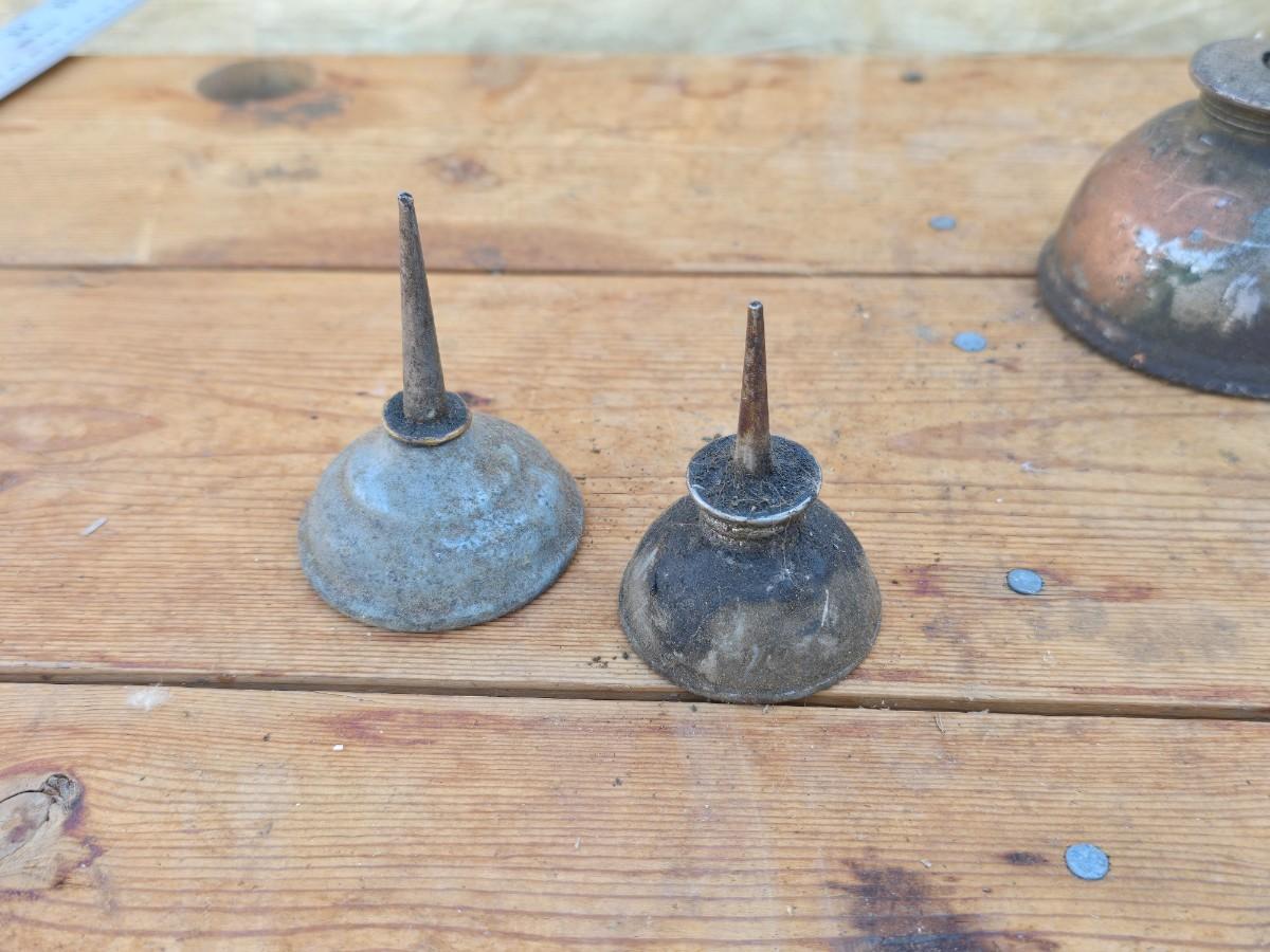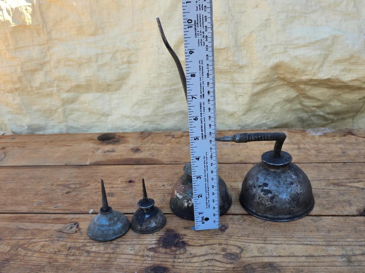 Four vintage oil cans - 2 small thumb press dome cans and 2 larger