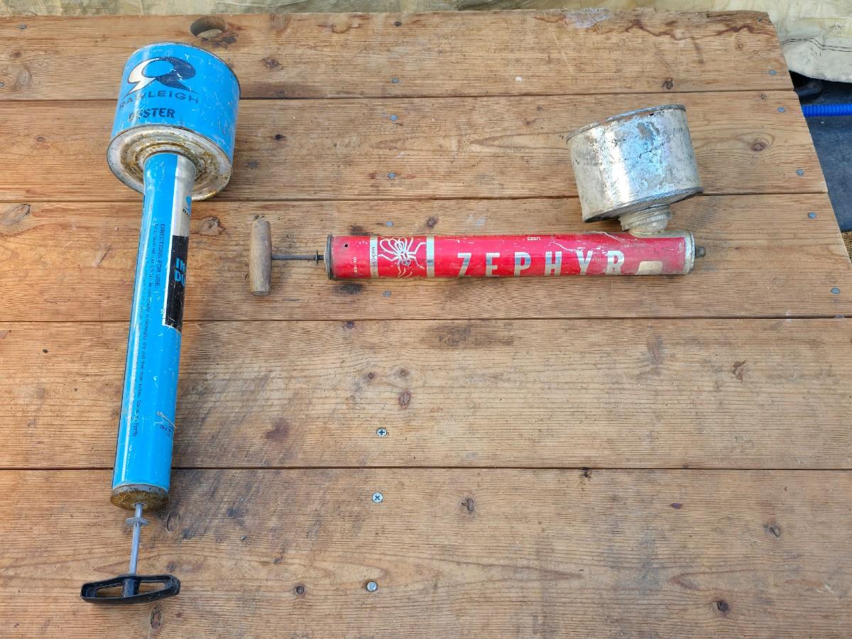 Two vintage bug duster / sprayers - Zephyr - Rawleigh Insect duster -