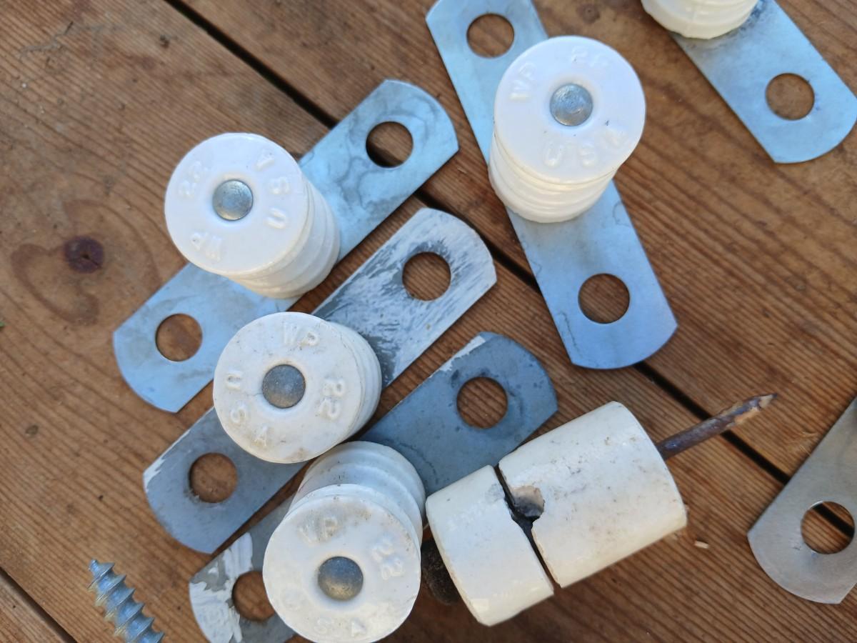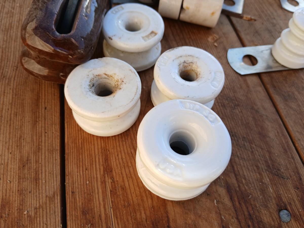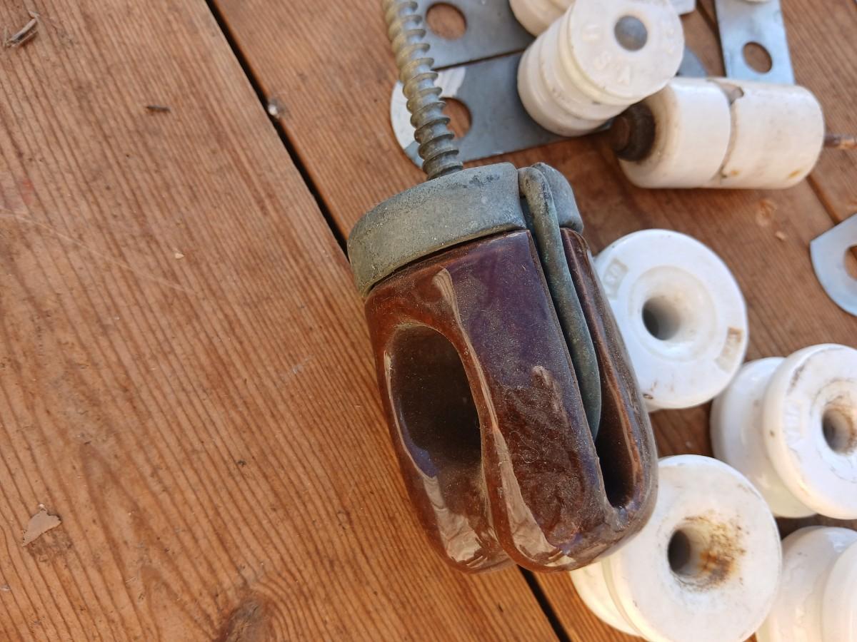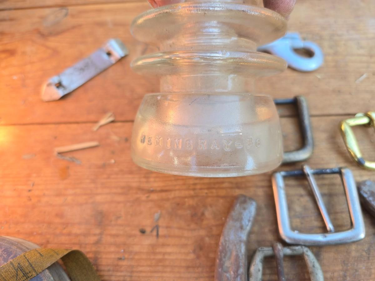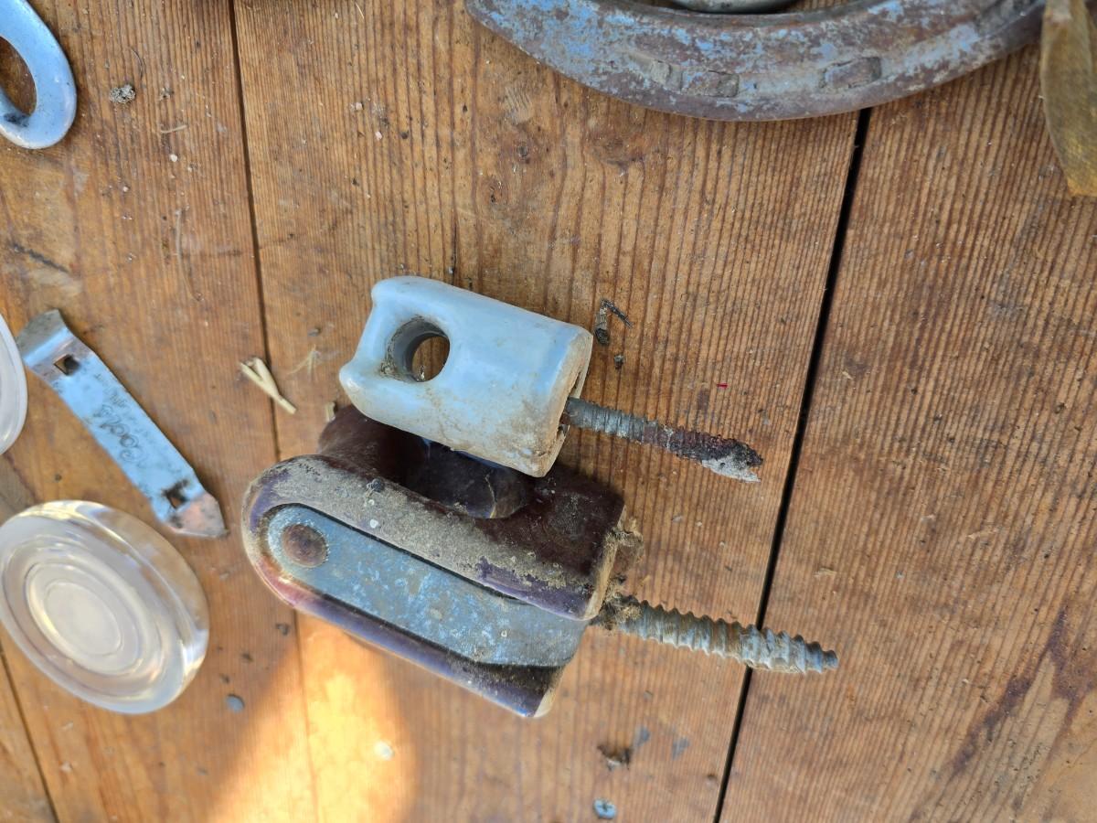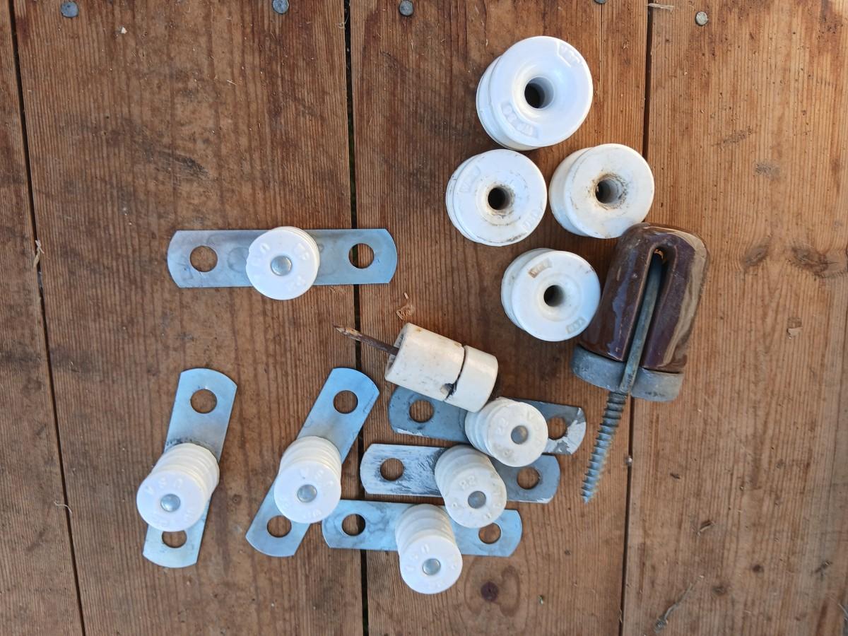 Antique porcelain insulators - cast iron - wrenches - and other rustic farm items for the side of the farm shed!