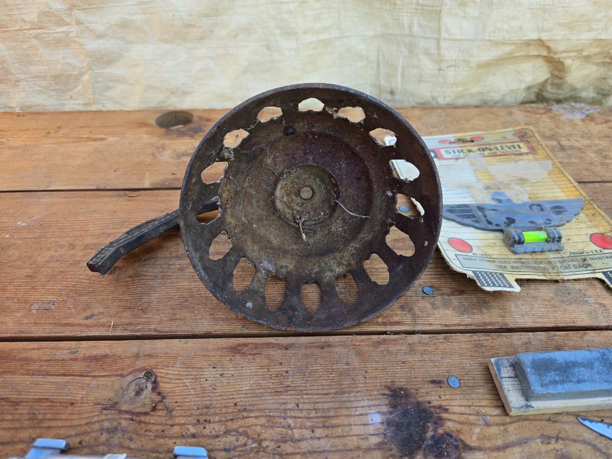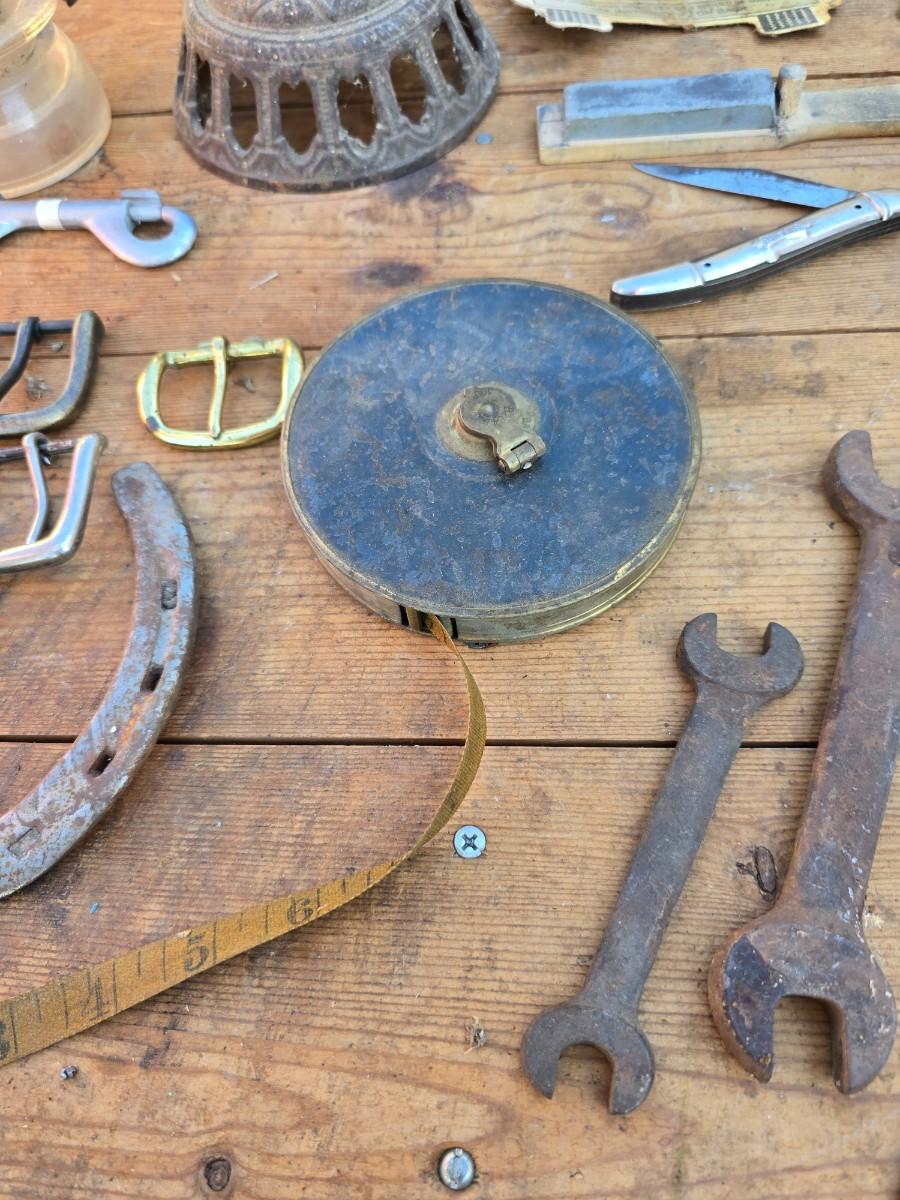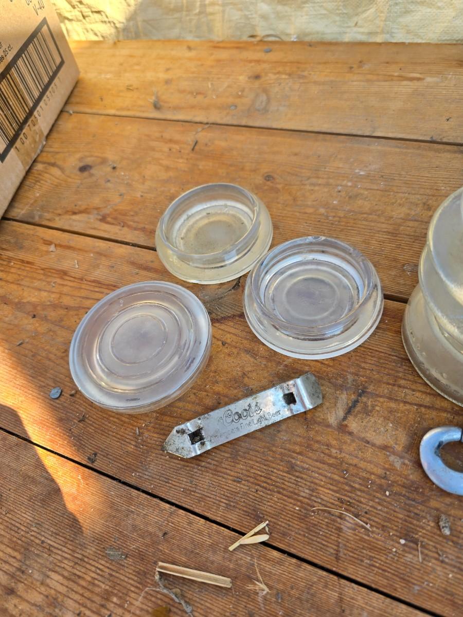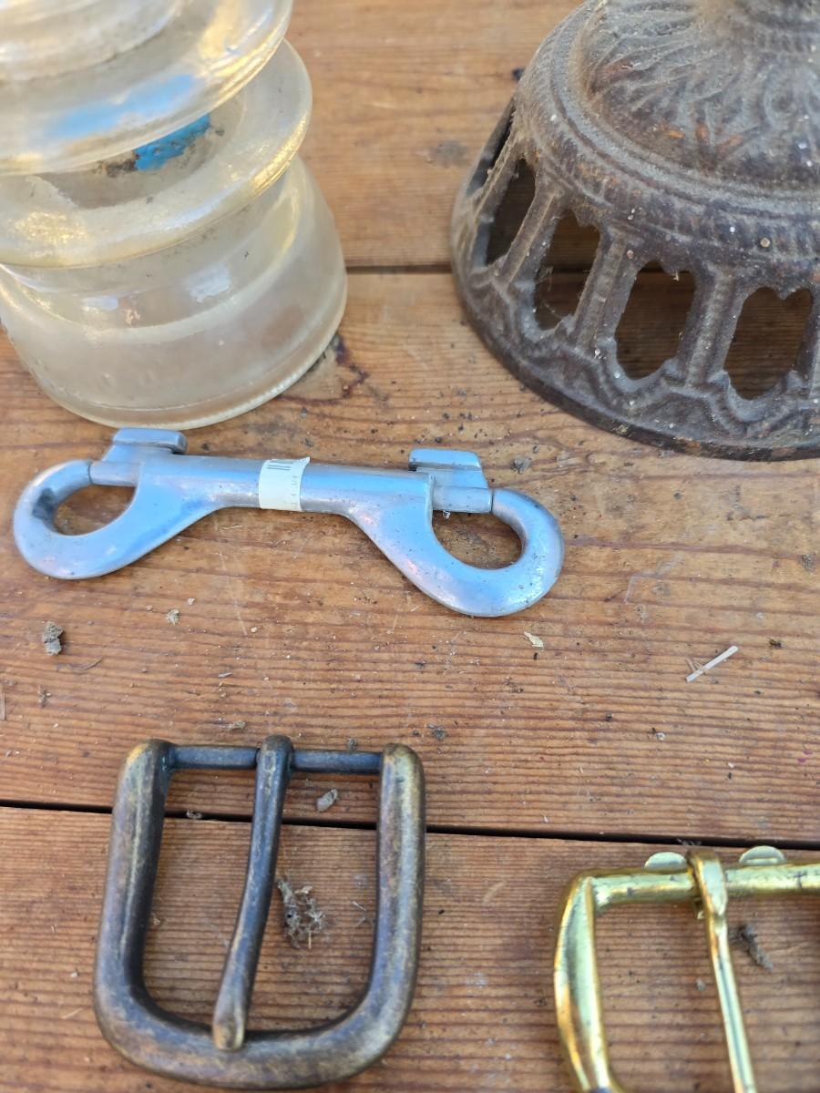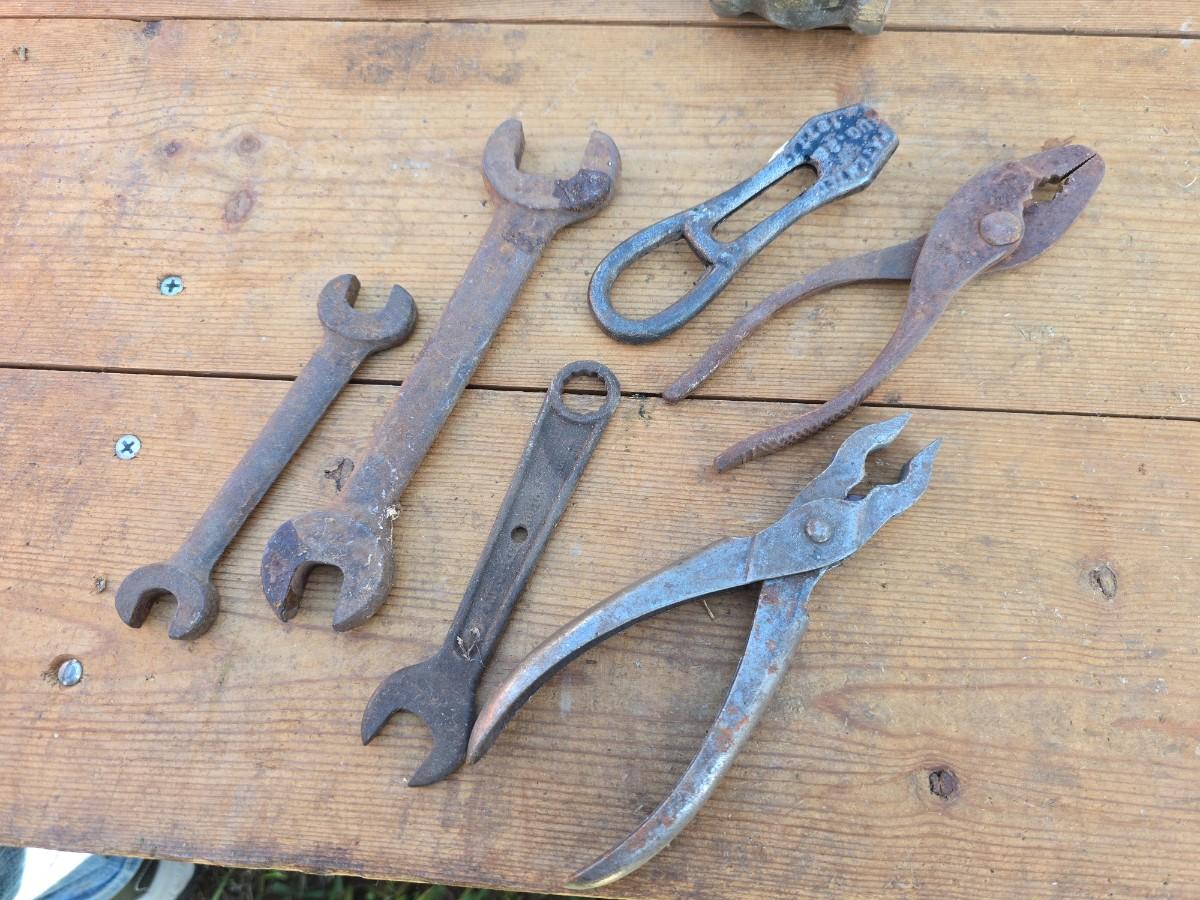 Antique porcelain insulators - cast iron - wrenches - and other rustic farm items for the side of the farm shed!