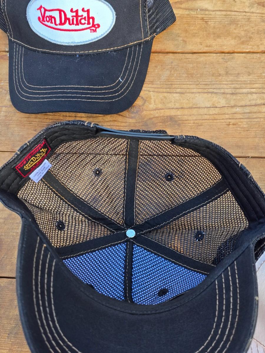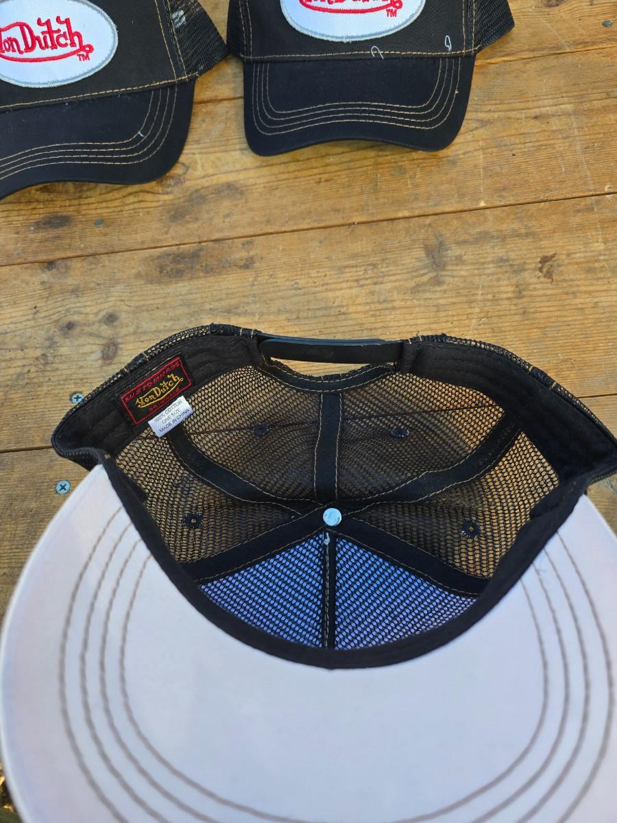 Three Von Dutch brand hats White and Black - and two Black with red stitching - Trucker caps