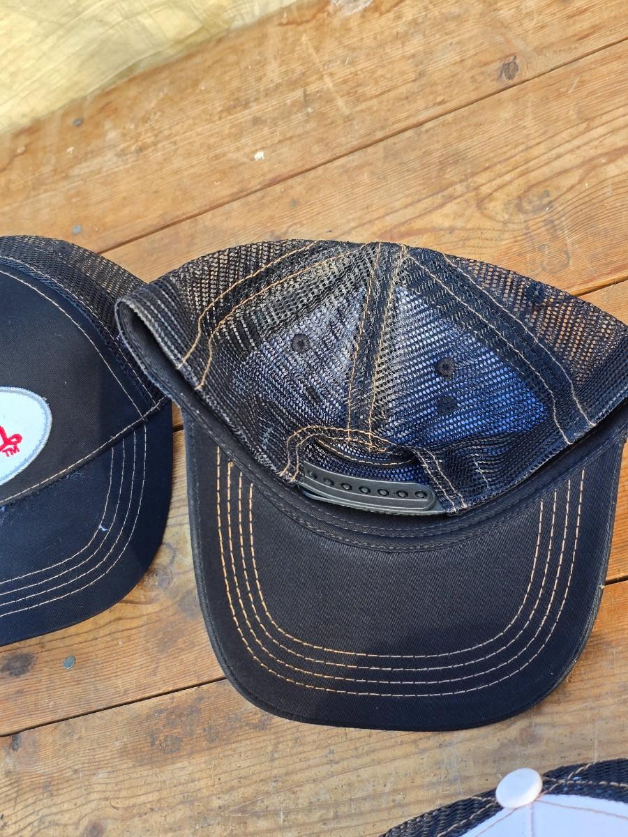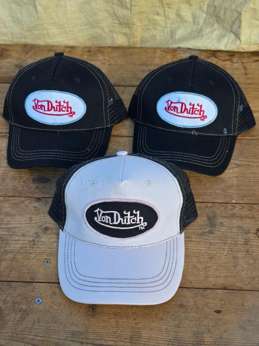 Three Von Dutch brand hats White and Black - and two Black with red stitching - Trucker caps