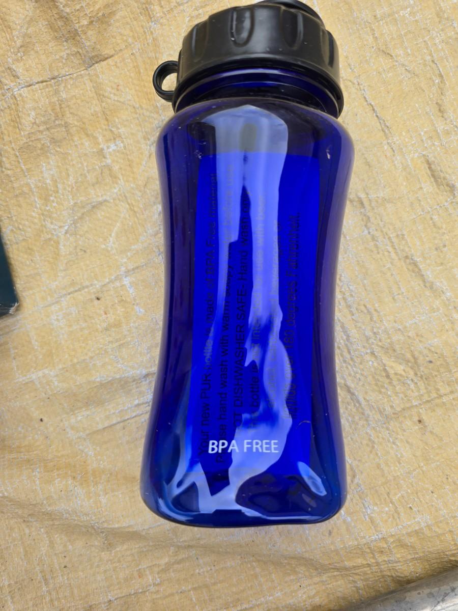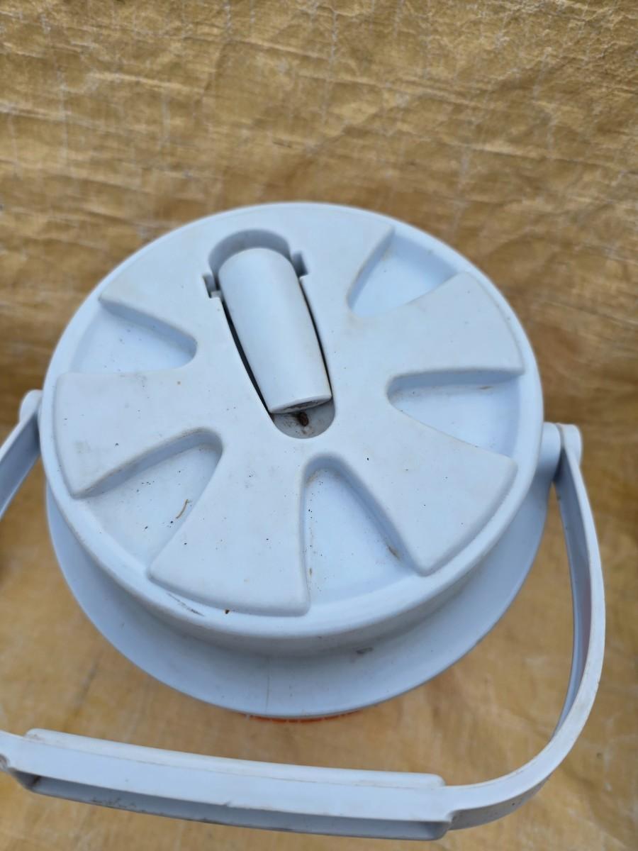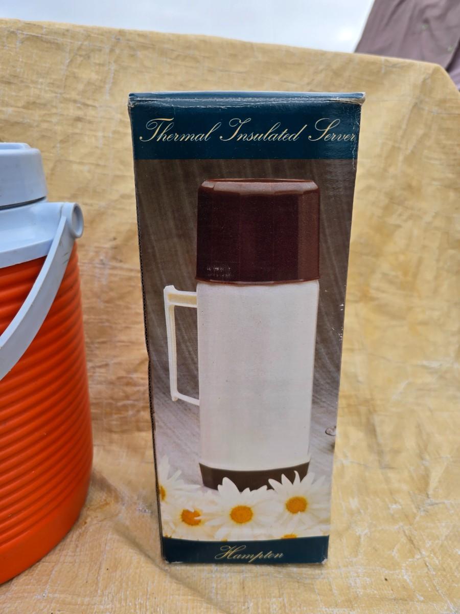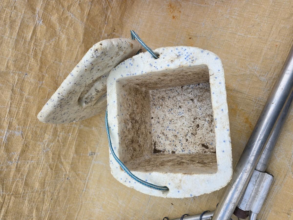 Two long, large fish nets - bob bet bait box- thermos, and a water bottle