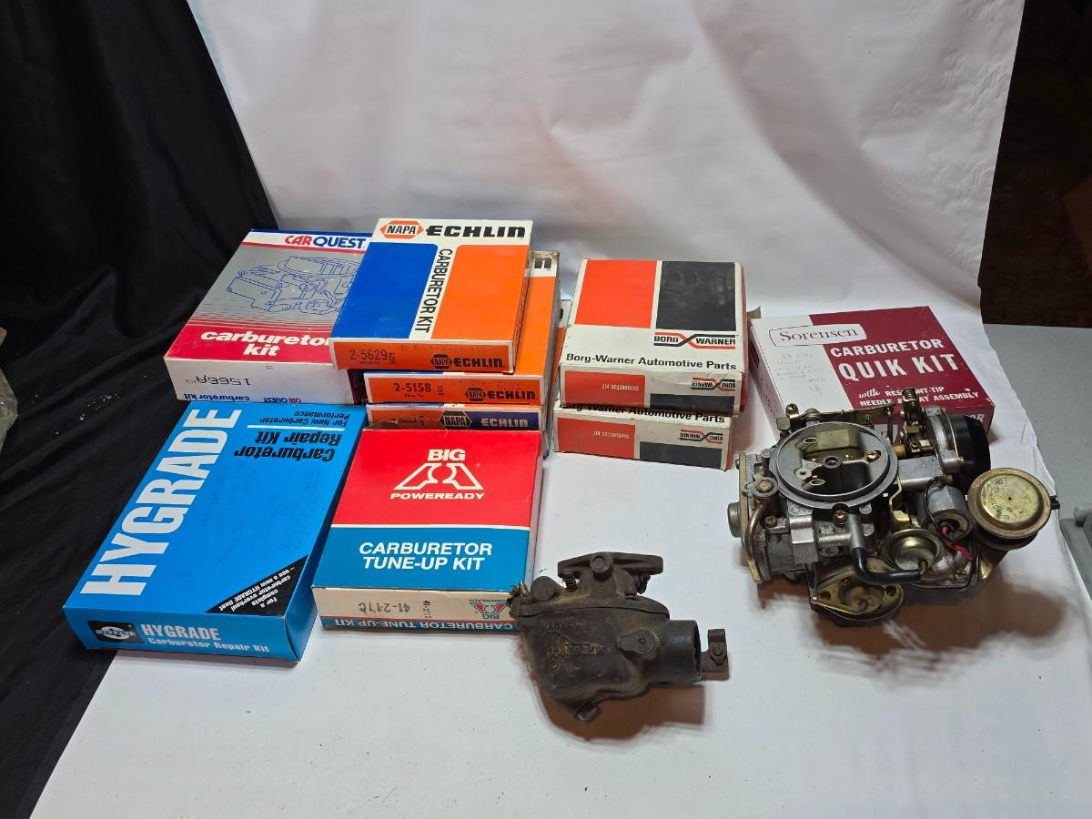Antique Wisconsin gas carburetor - larger carburetor - and many carburetor tune up kits