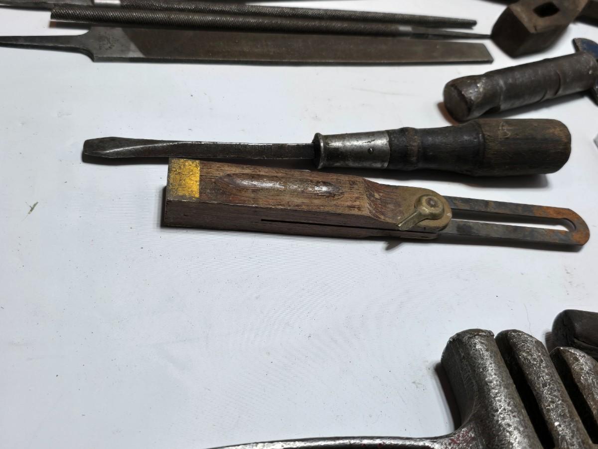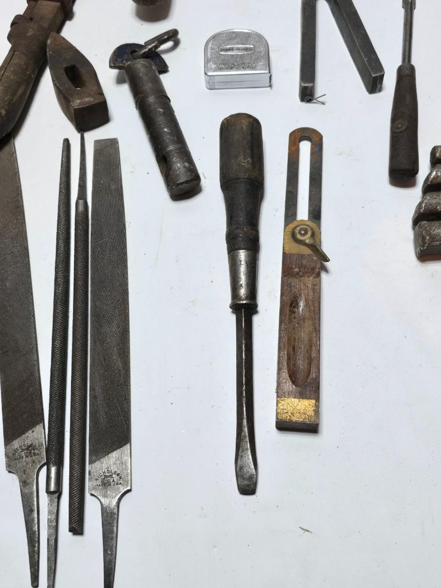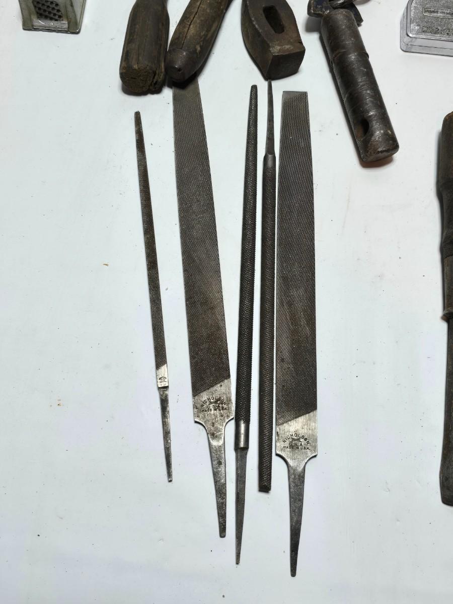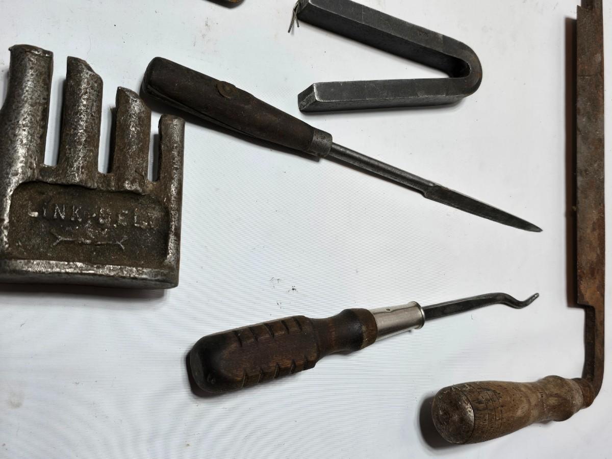 Antique farm tools - drawbar - Monkey wrench - screwdrivers - Rasp - Hershel chain break detacher - and more