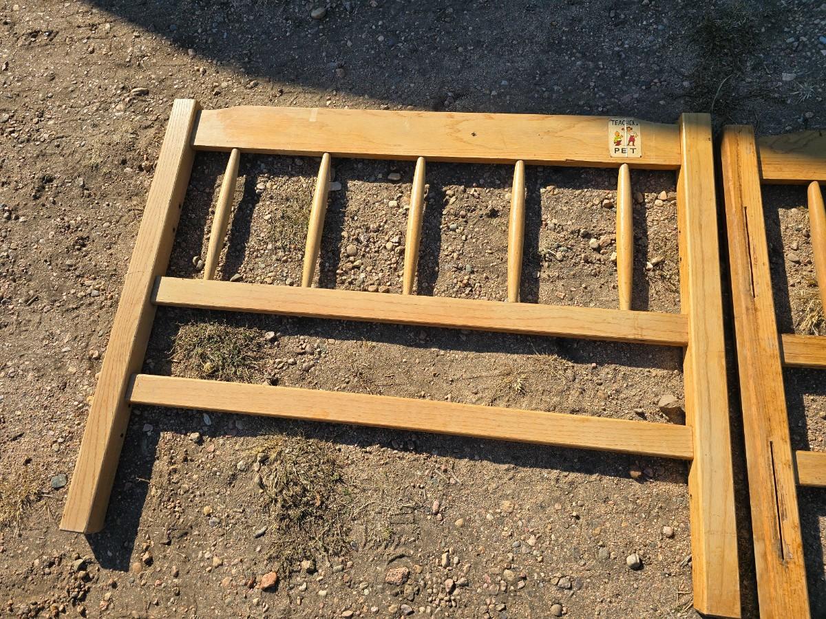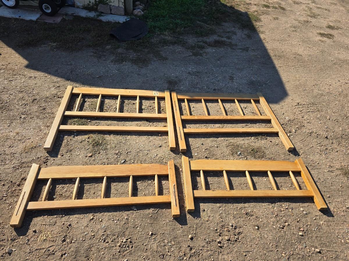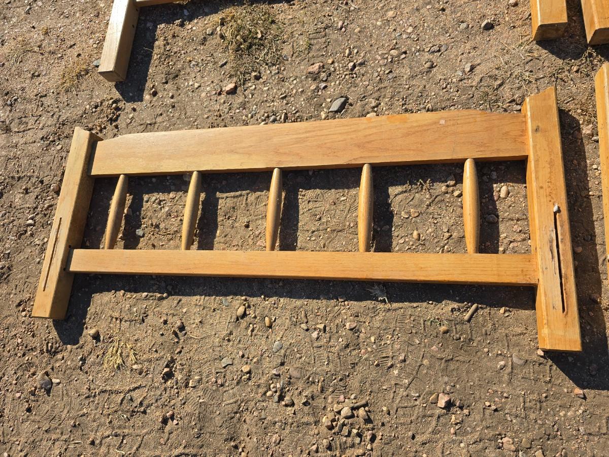 Two matching twin - sized wooden headboard & footboards