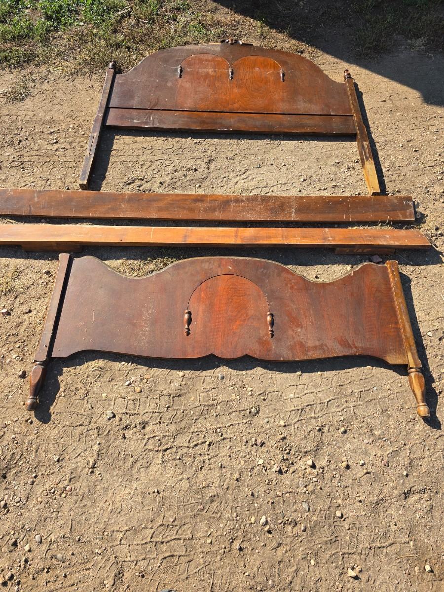 Antique wooden full - Double sized bed frame - headboard, footboard and rails