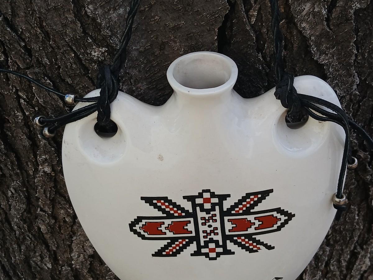 Native American design wall art pottery vase