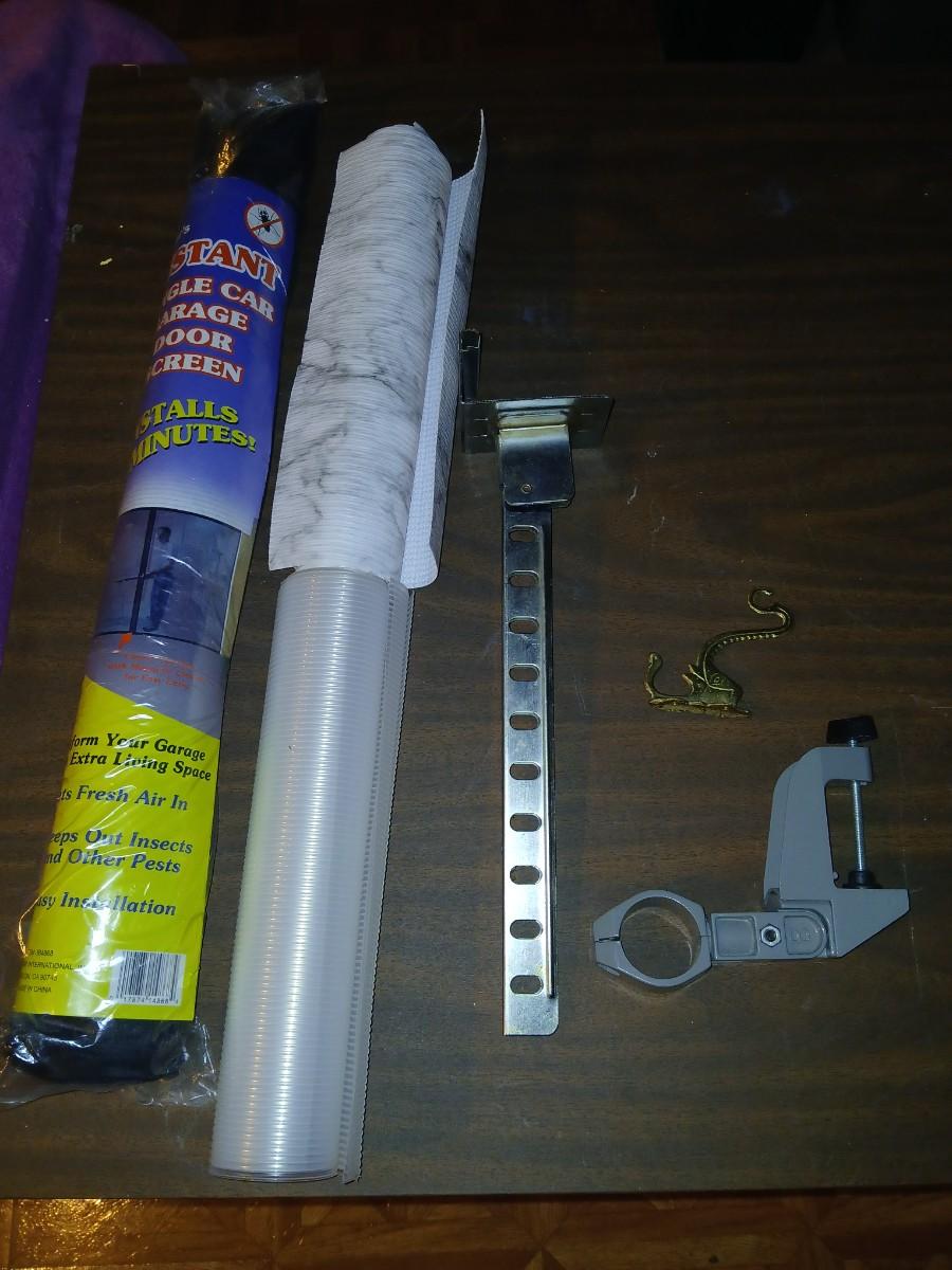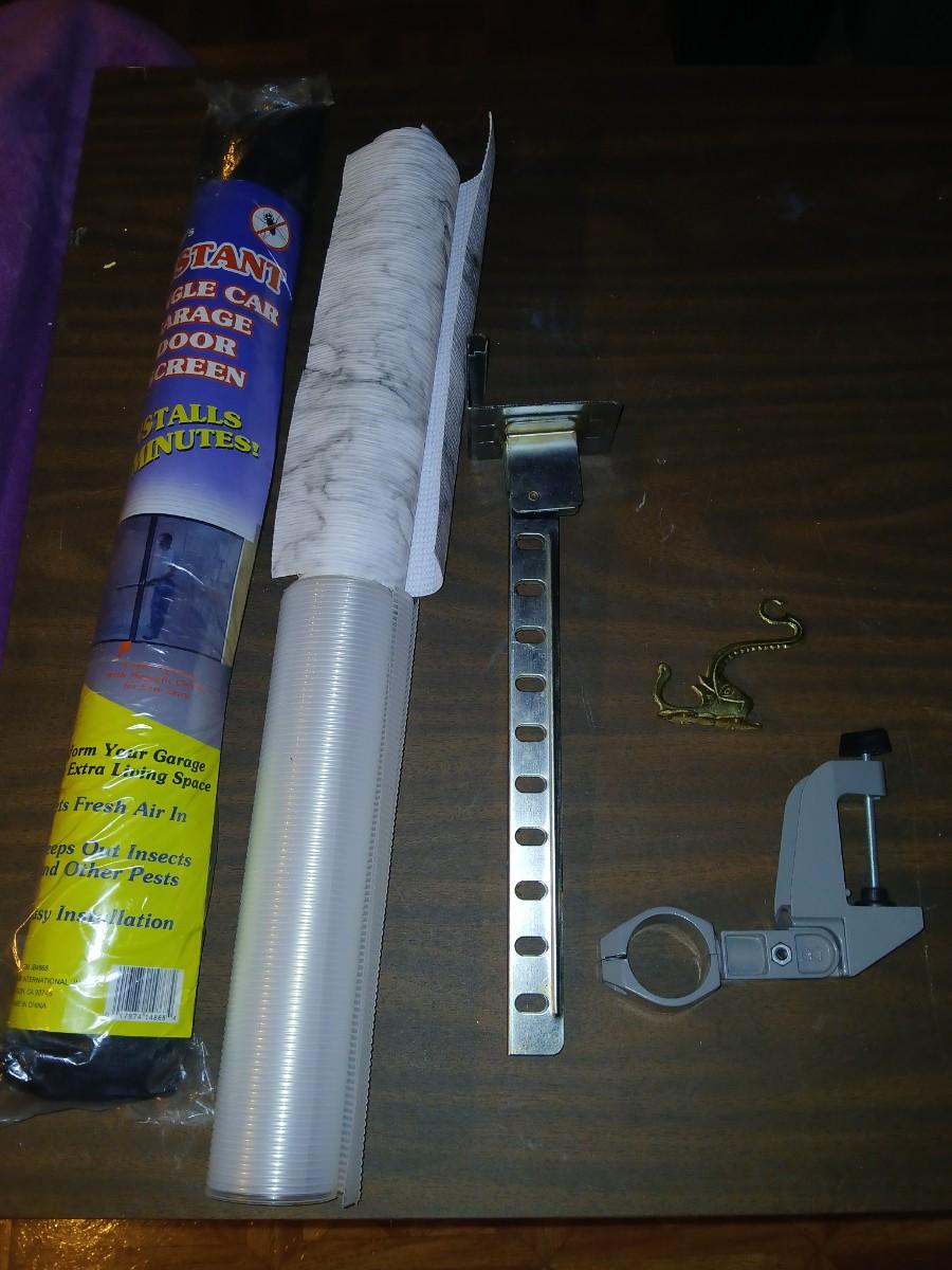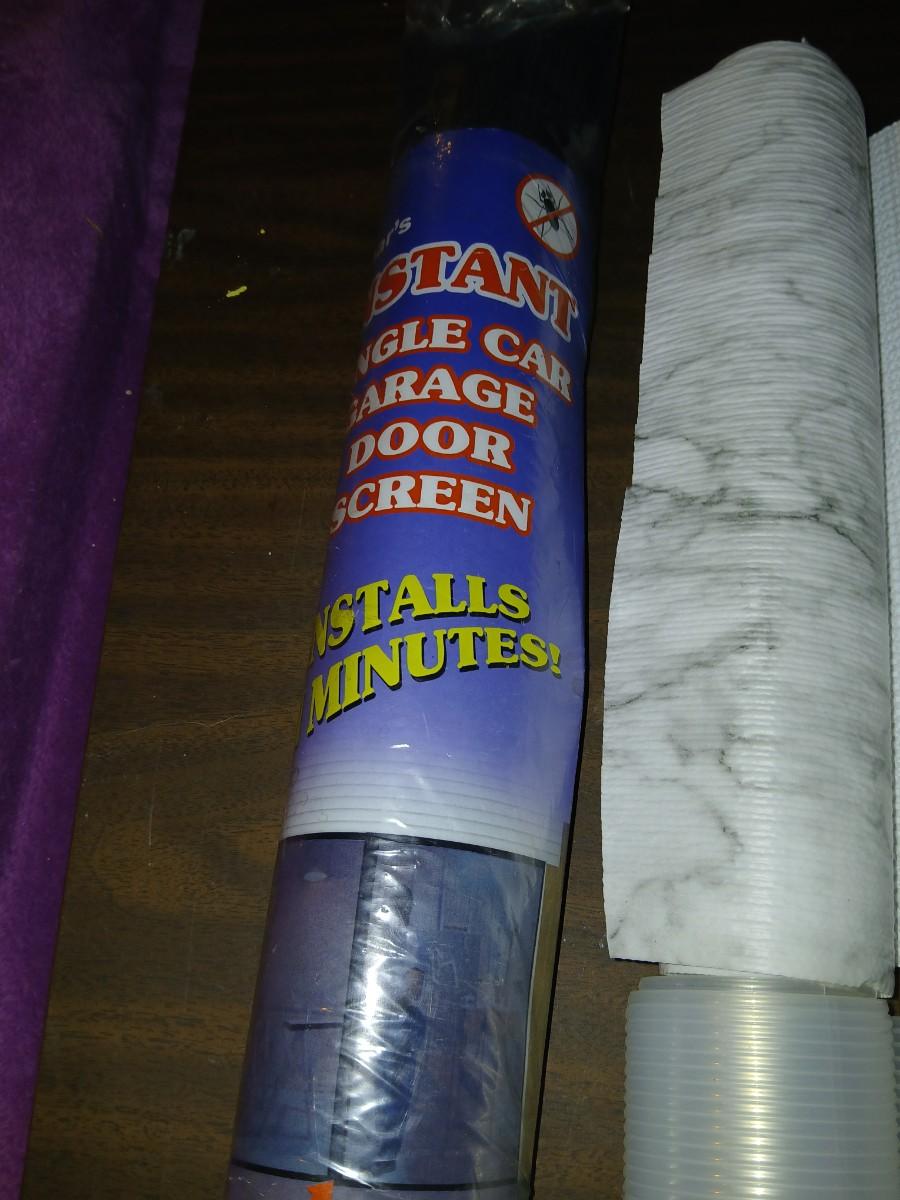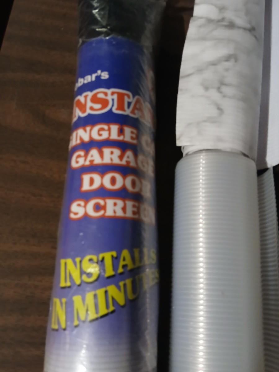 Giant garage door screen new in the package - some shelf liner - a small vise and more