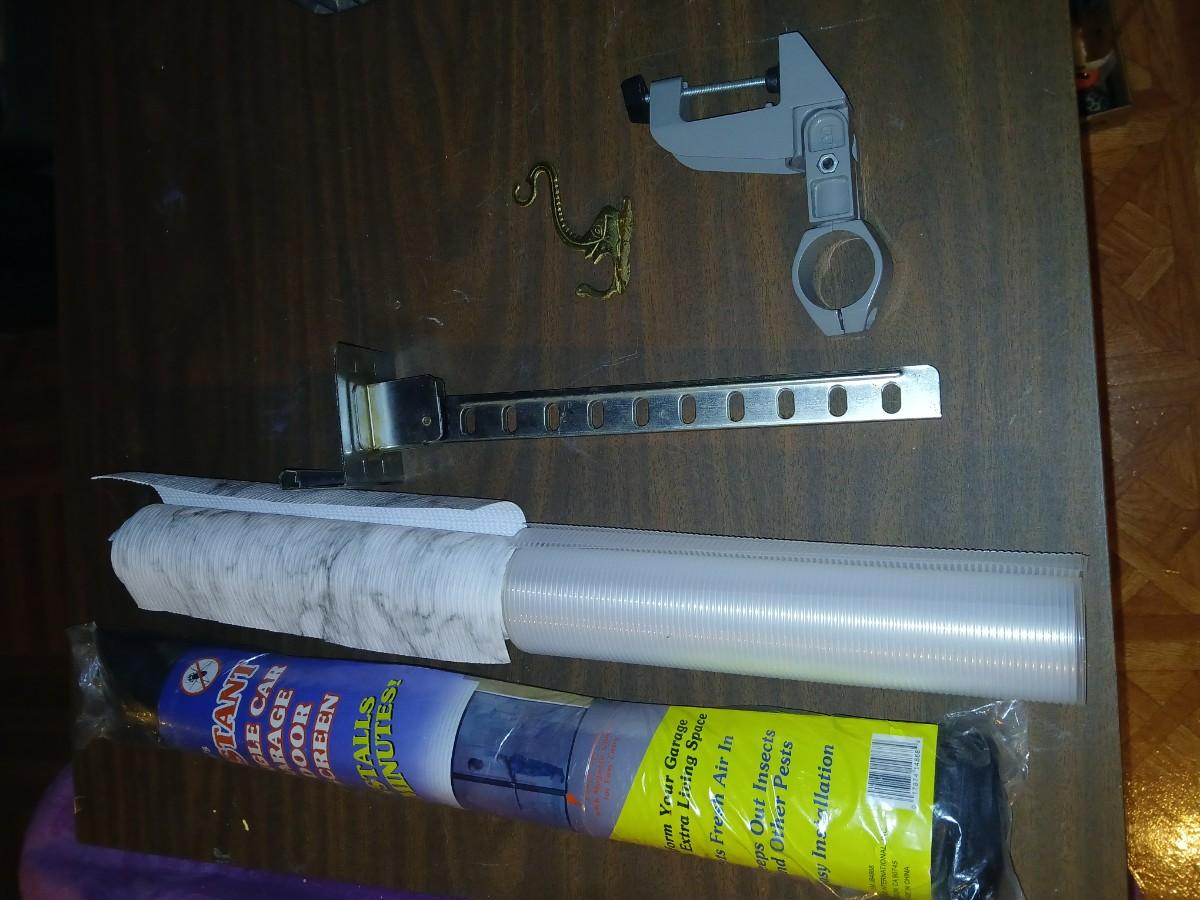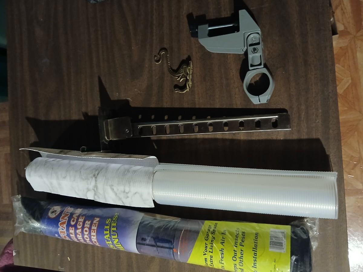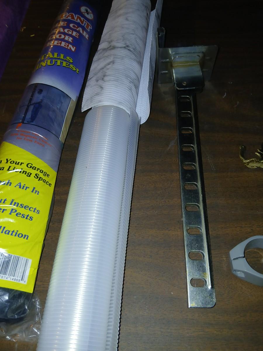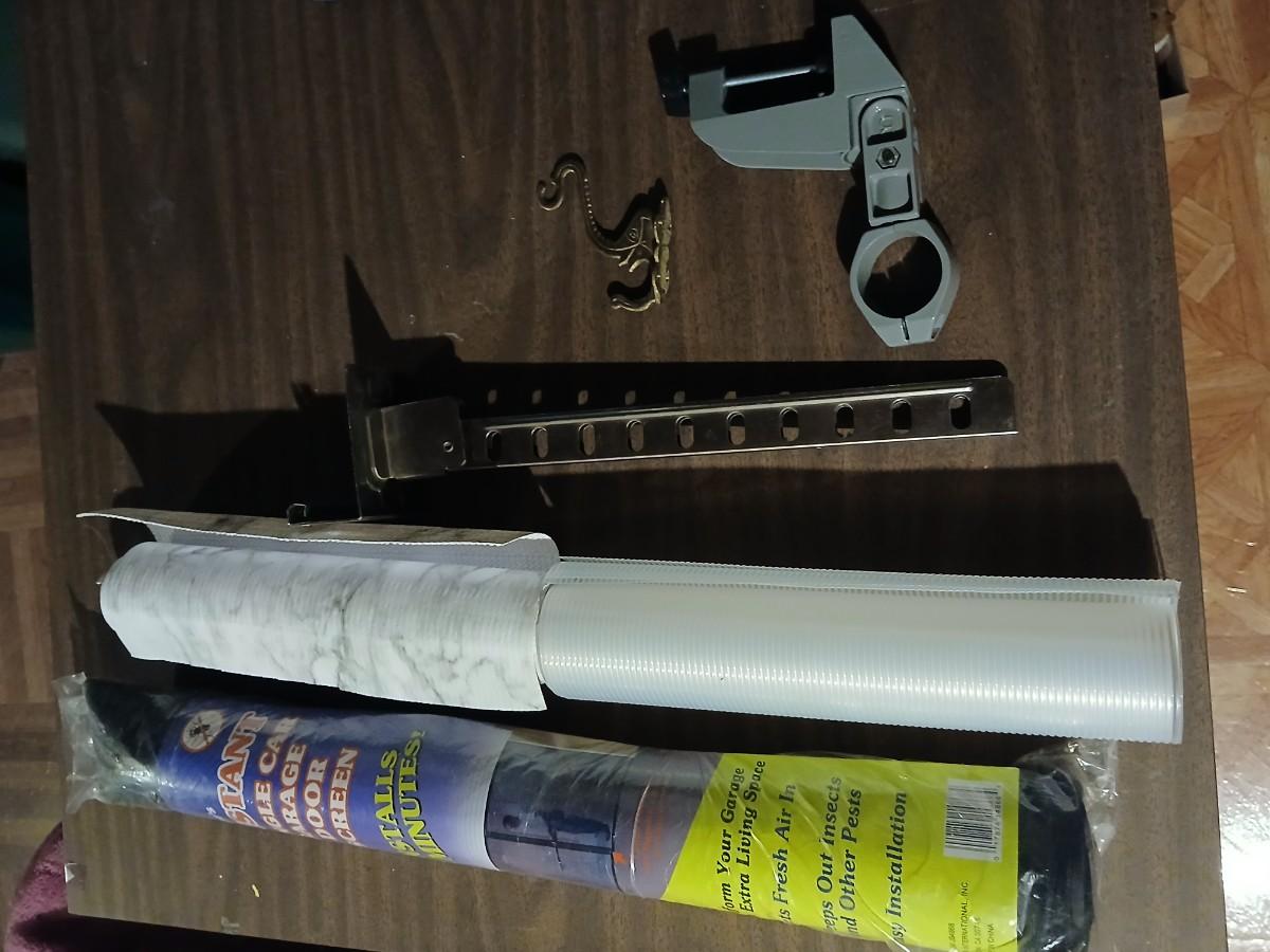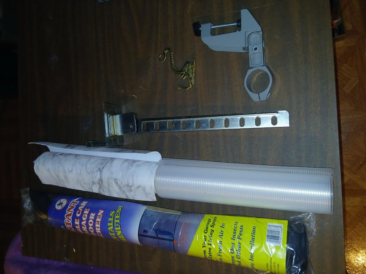 Giant garage door screen new in the package - some shelf liner - a small vise and more