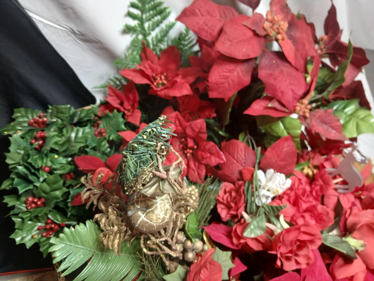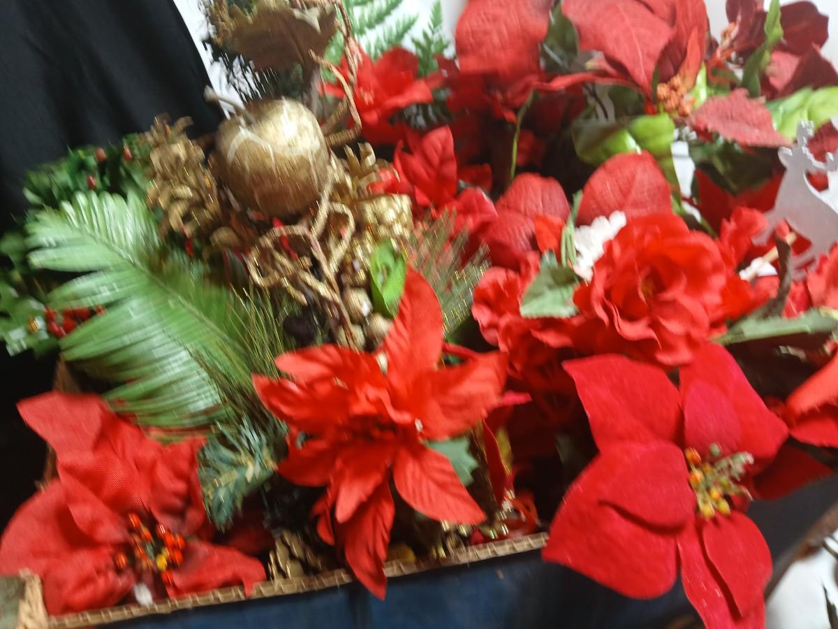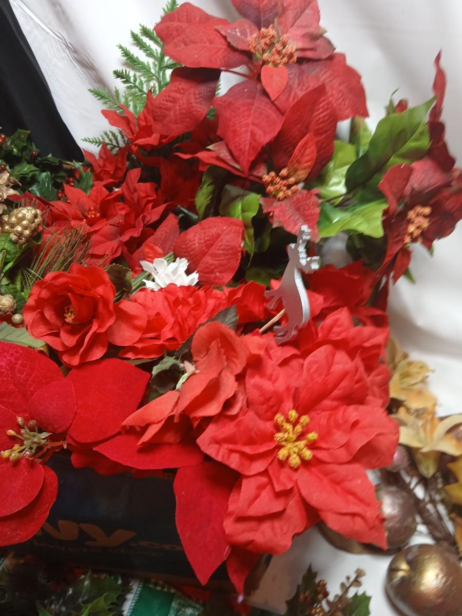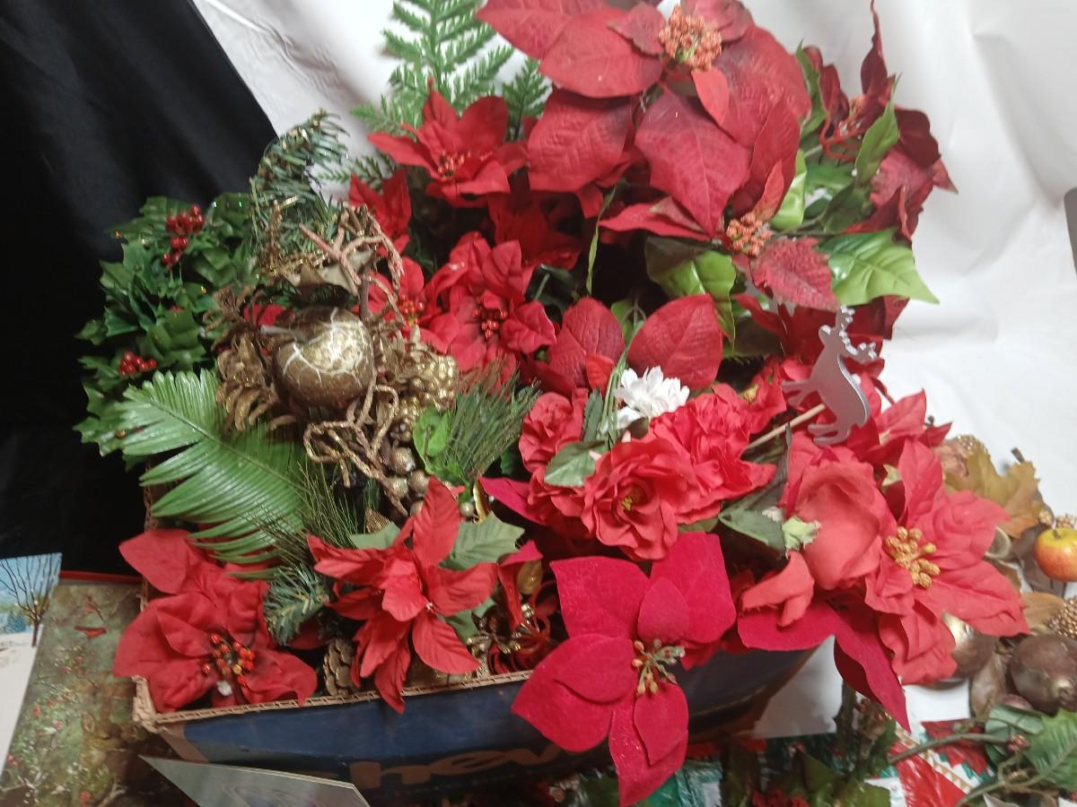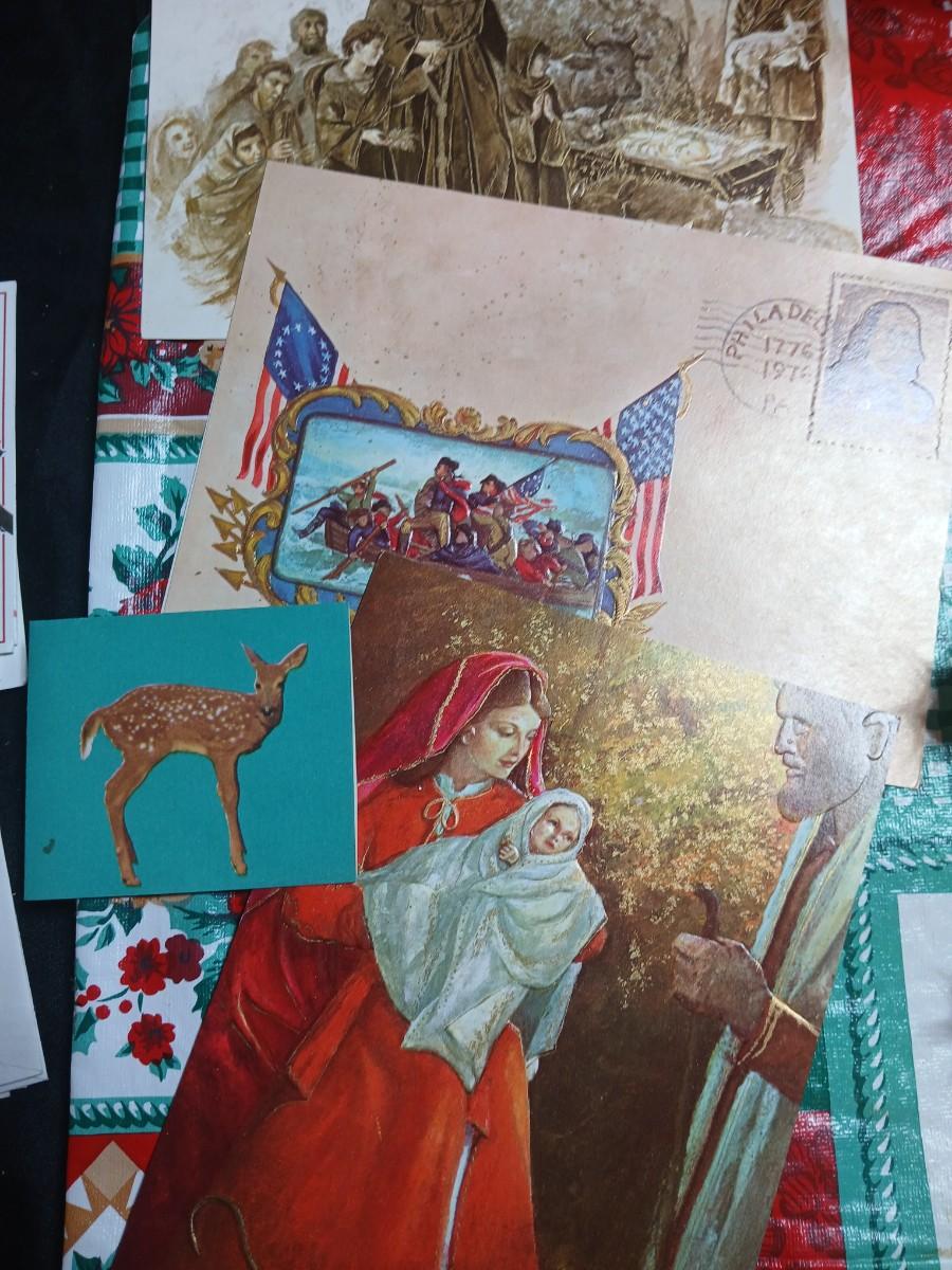 Christmas greenery, Wreath making twigs, cards, Vintage cute stickers, and a box of assorted ribbon