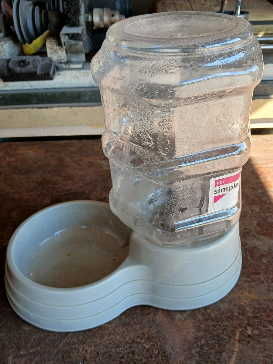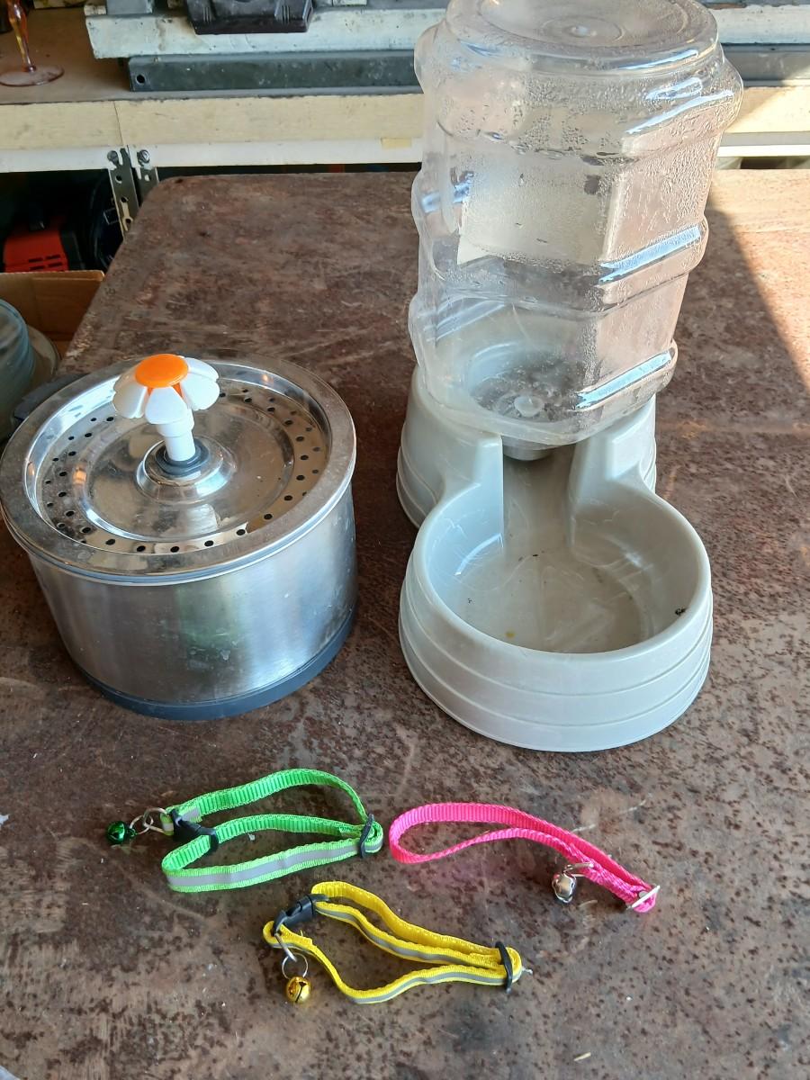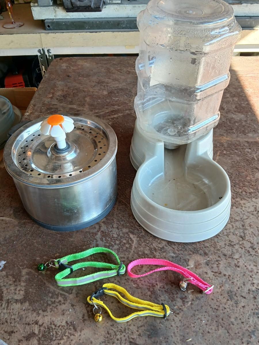 Pet drinking fountain - an automatic water / food dispenser and three little collars with bells -