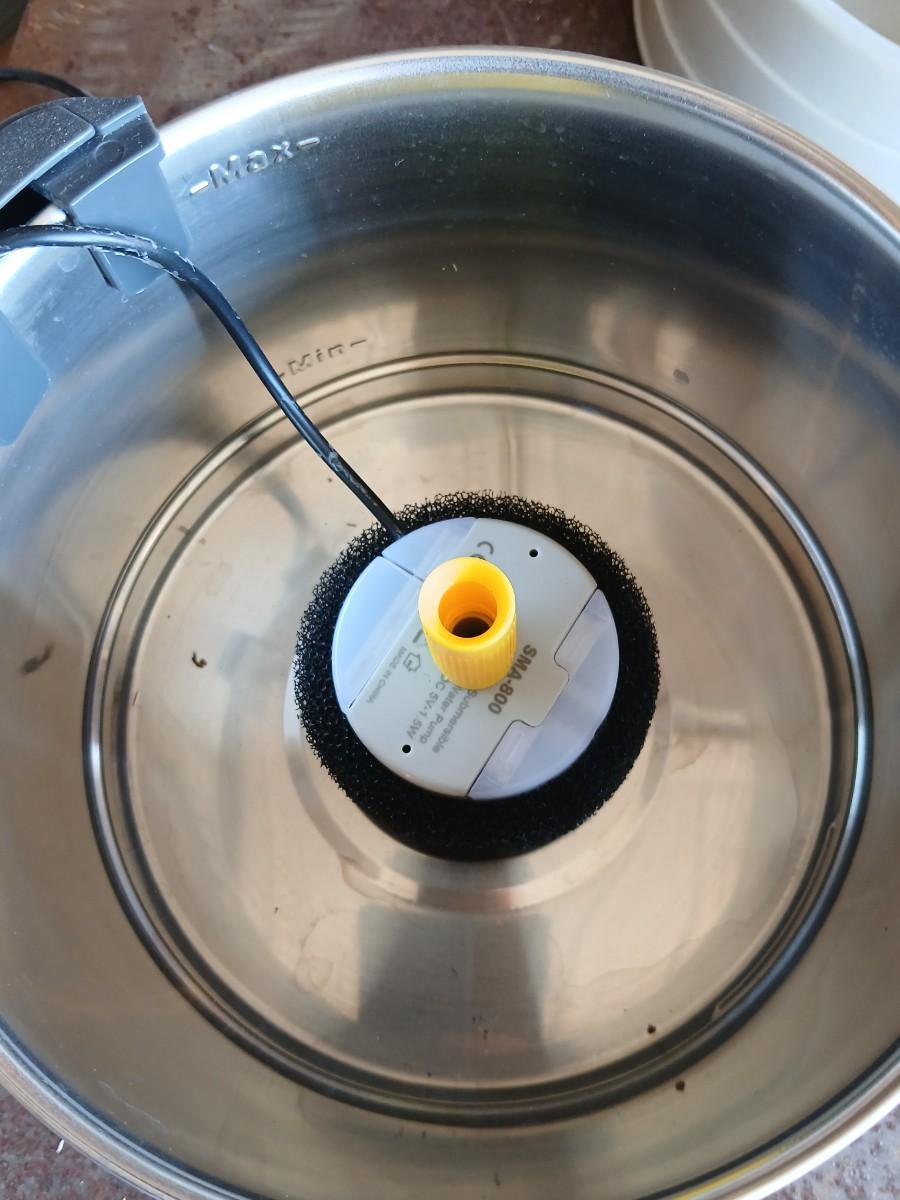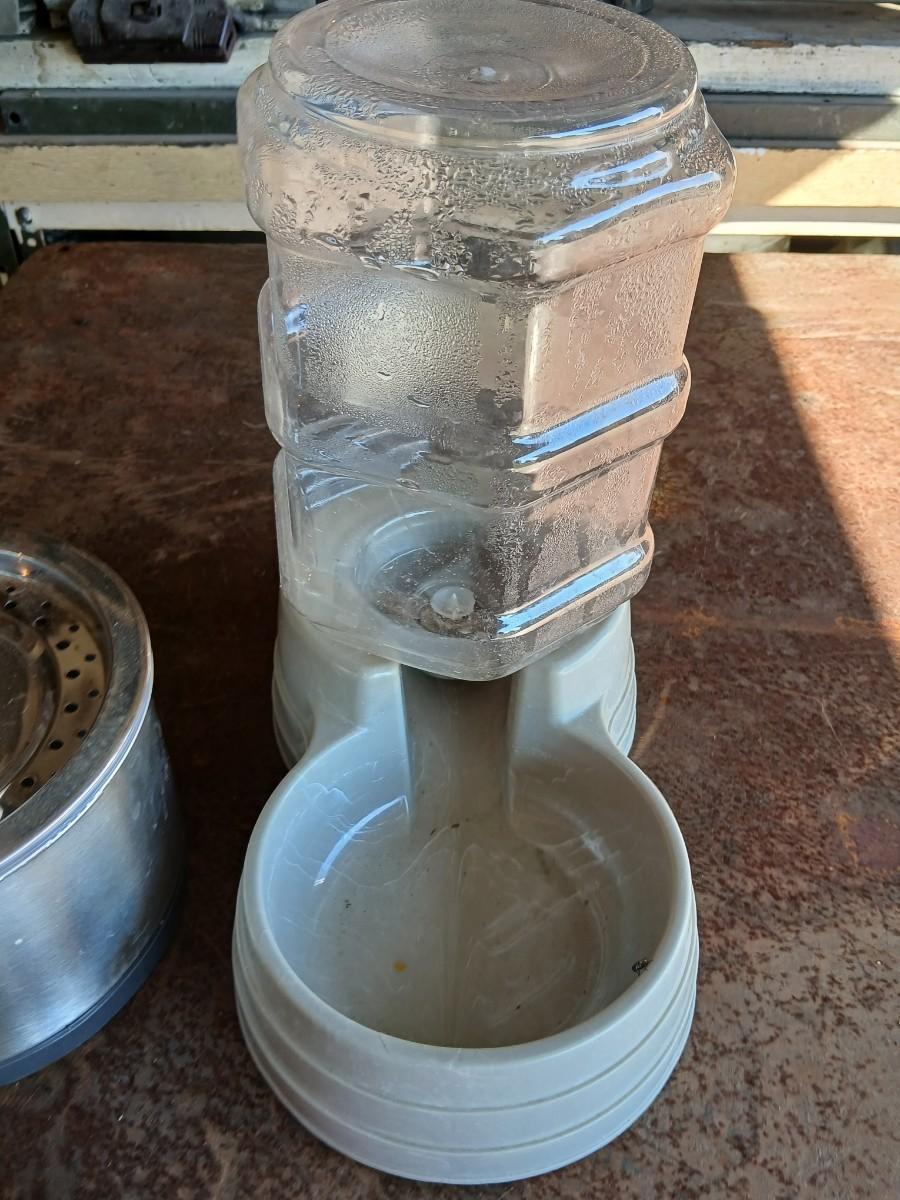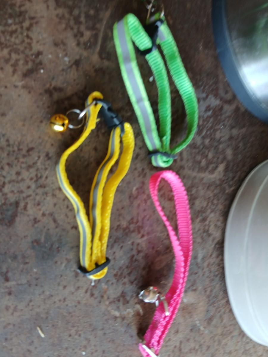 Pet drinking fountain - an automatic water / food dispenser and three little collars with bells -