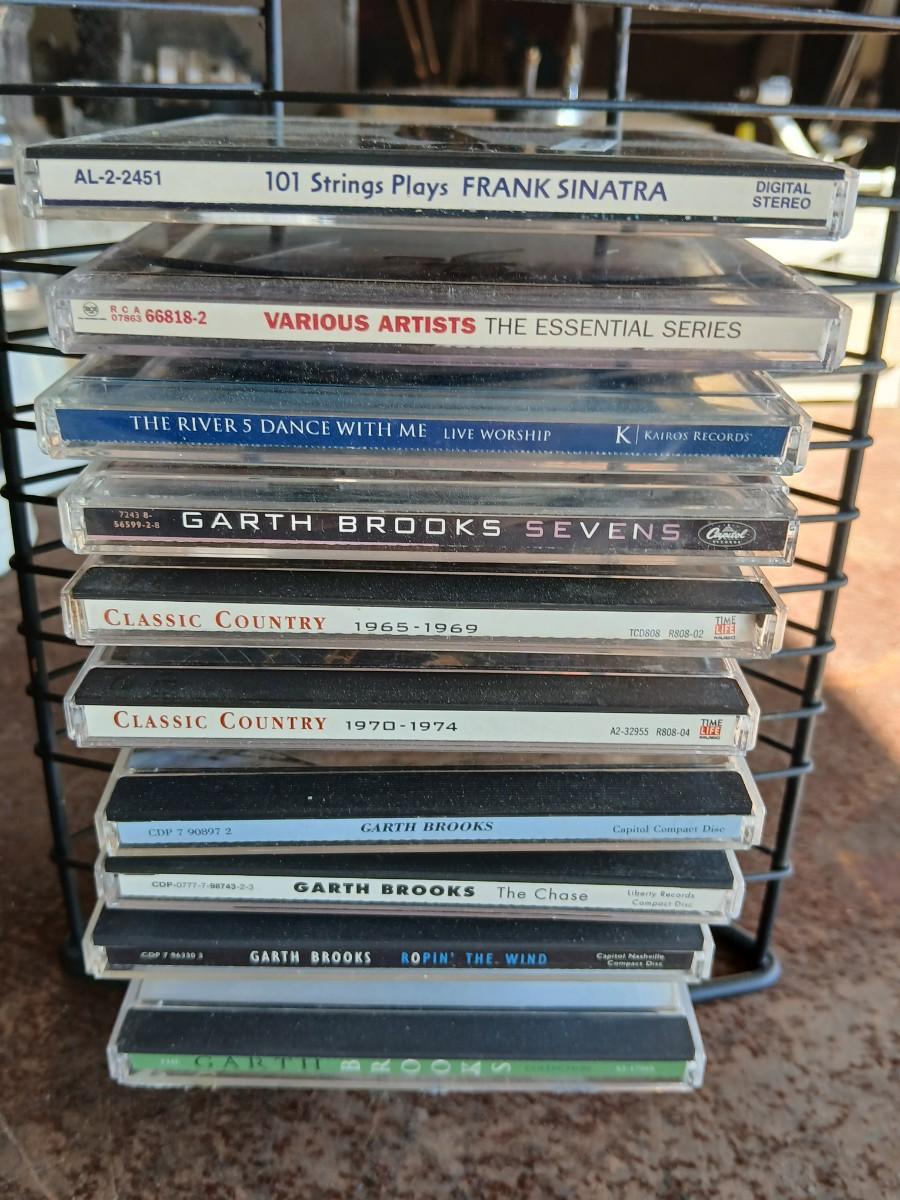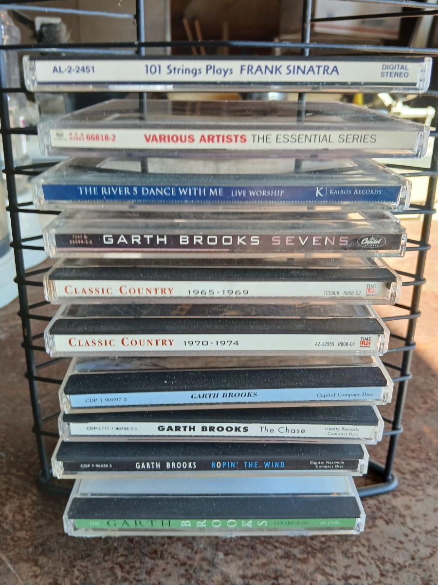 Music on CD - mostly Garth brooks - with an organizing stand
