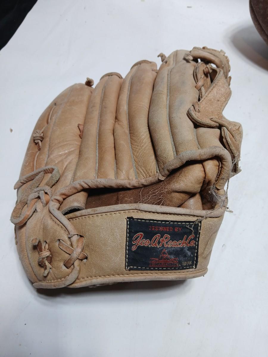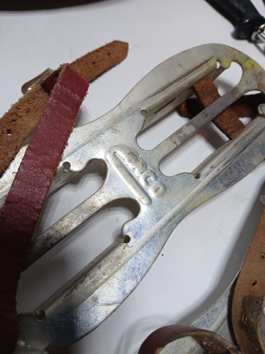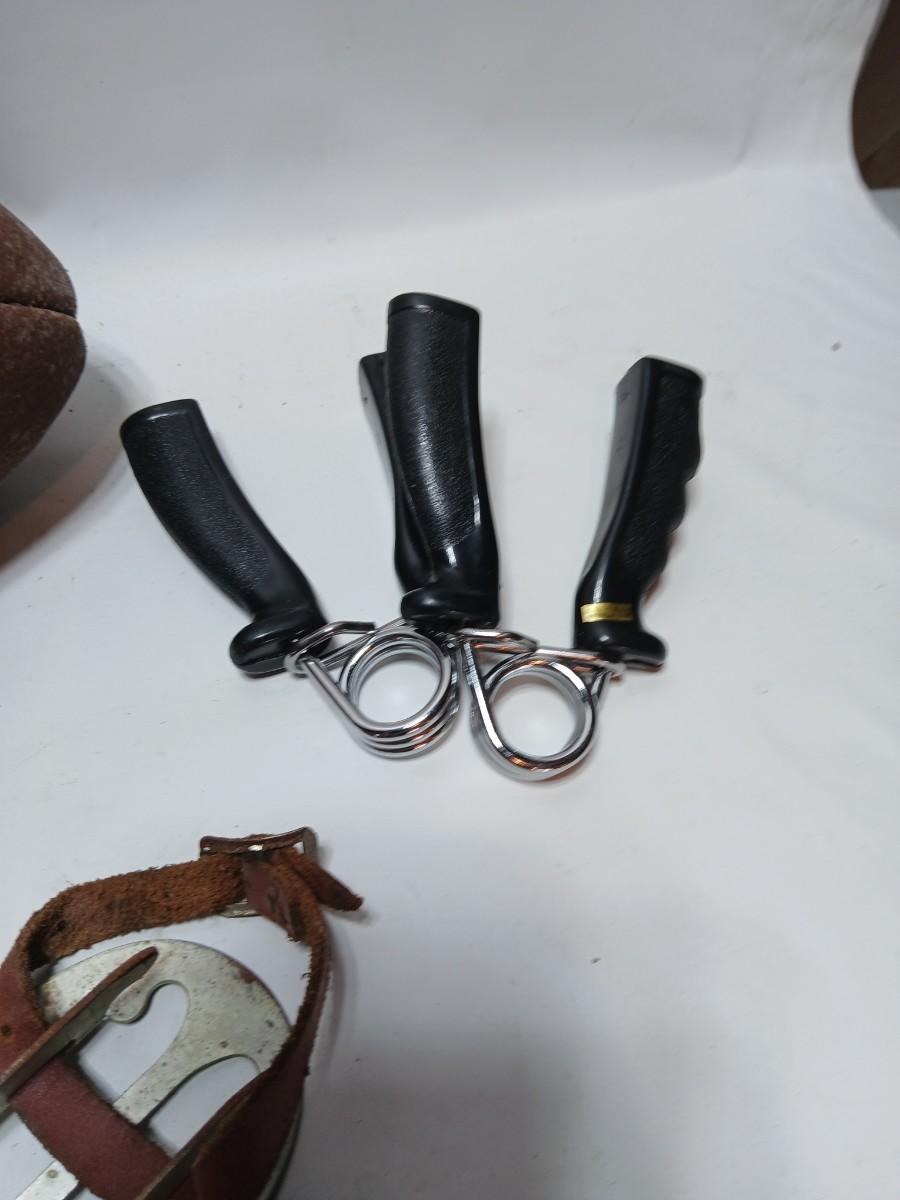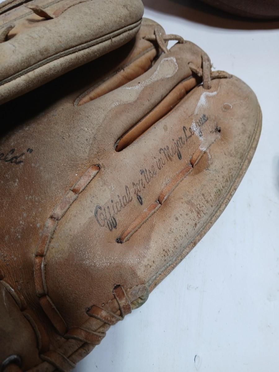 Vintage sporting - Antique metal ice skates, old football and a softball mitt