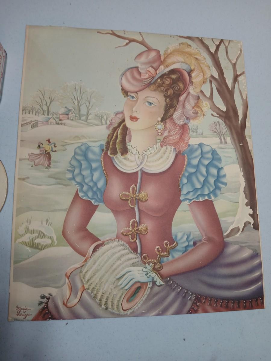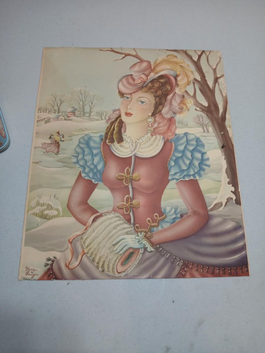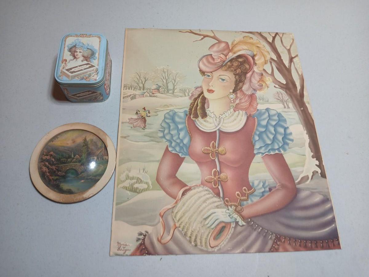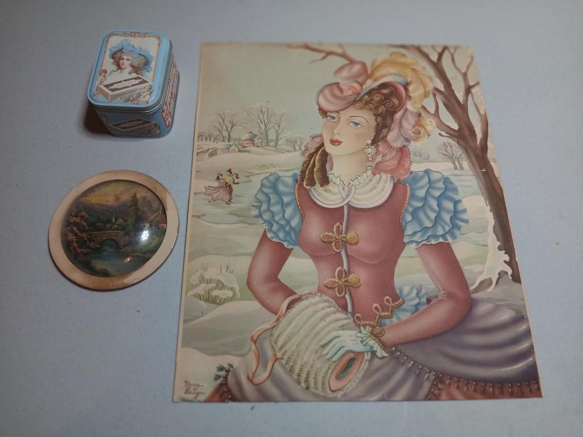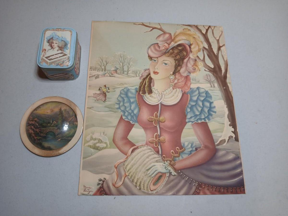 Rare "Winter Skate Southern Belle Air Brushed Lith" Donald Art Company, Inc- Convex wall art picture - and a vintage Nabisco Tin