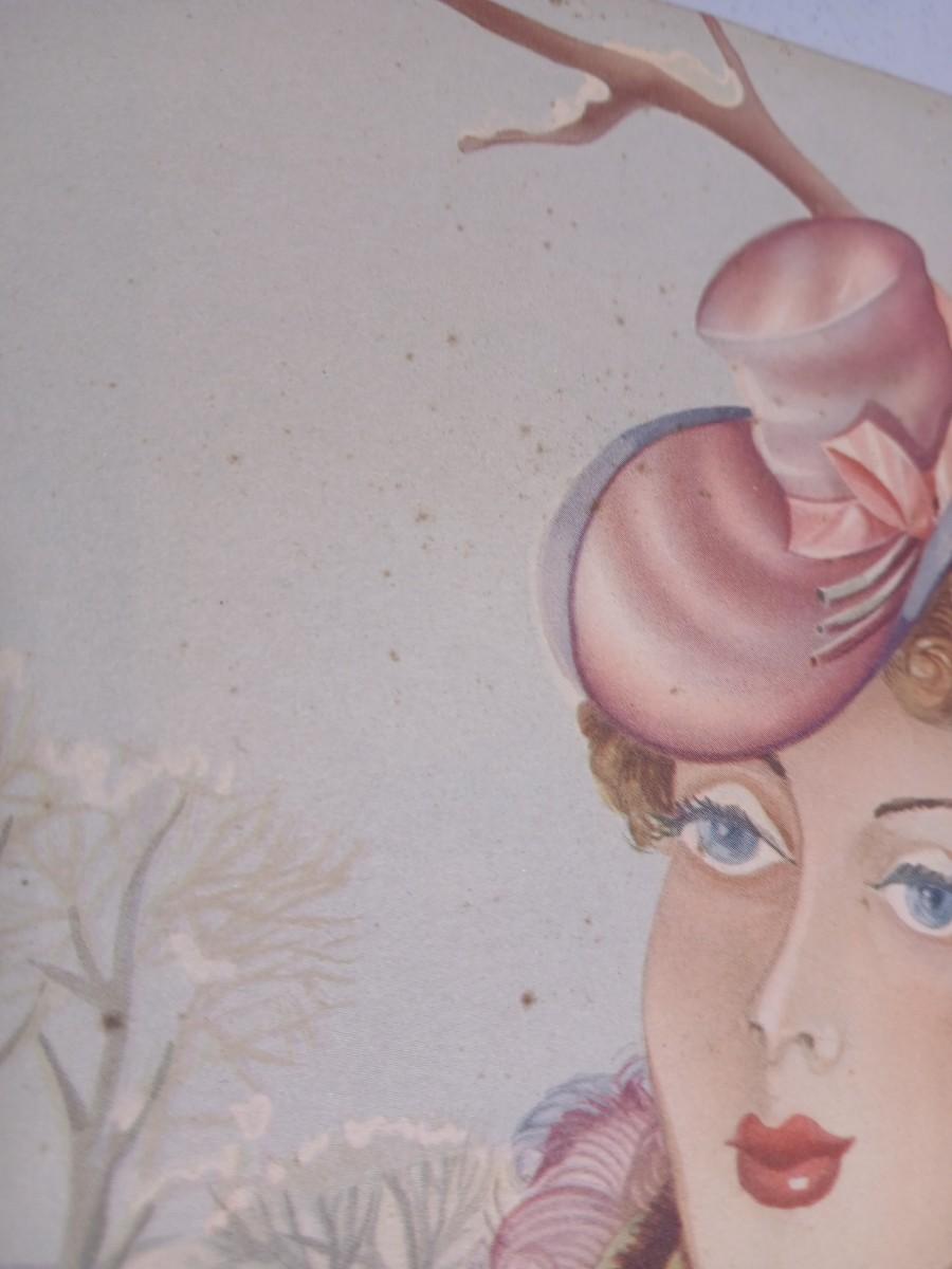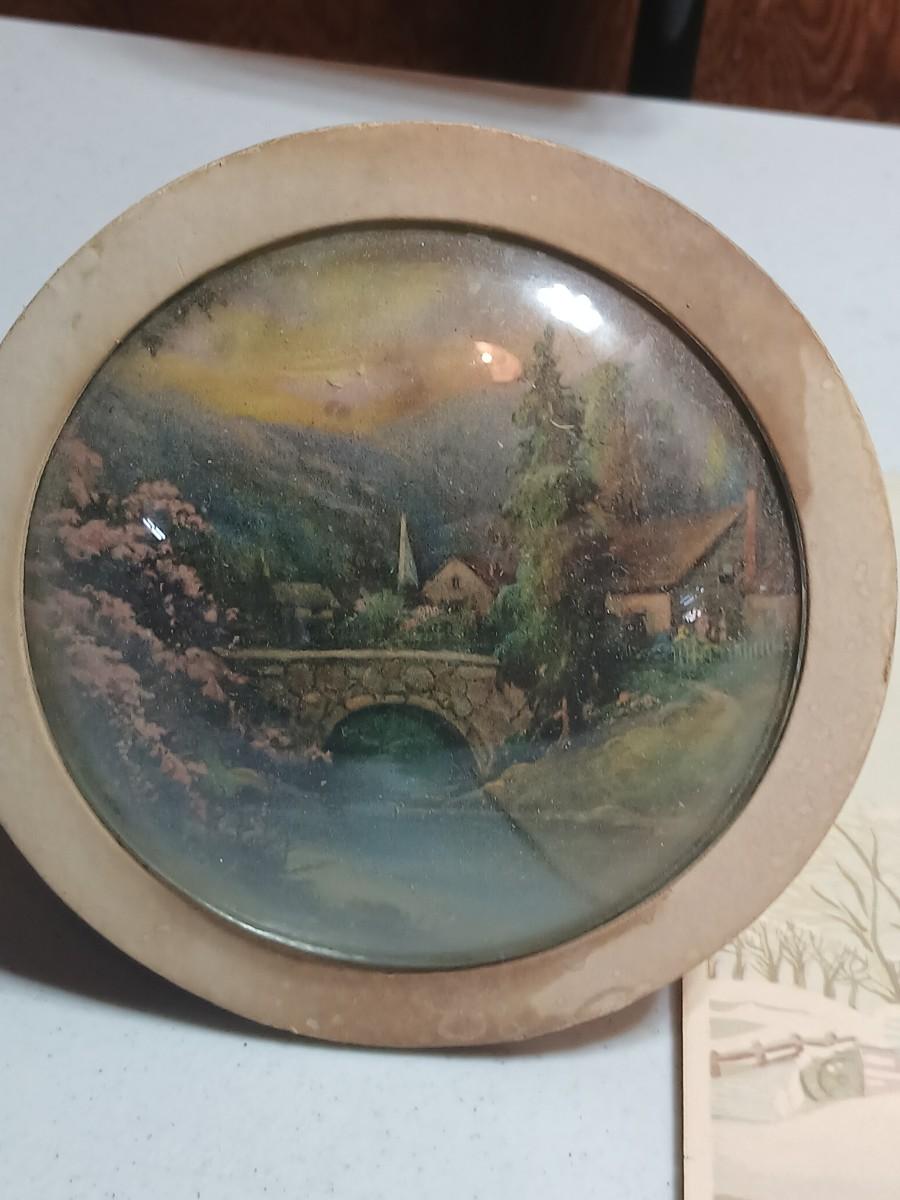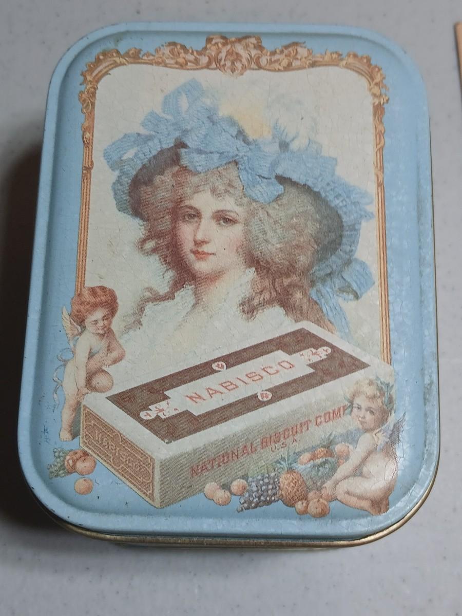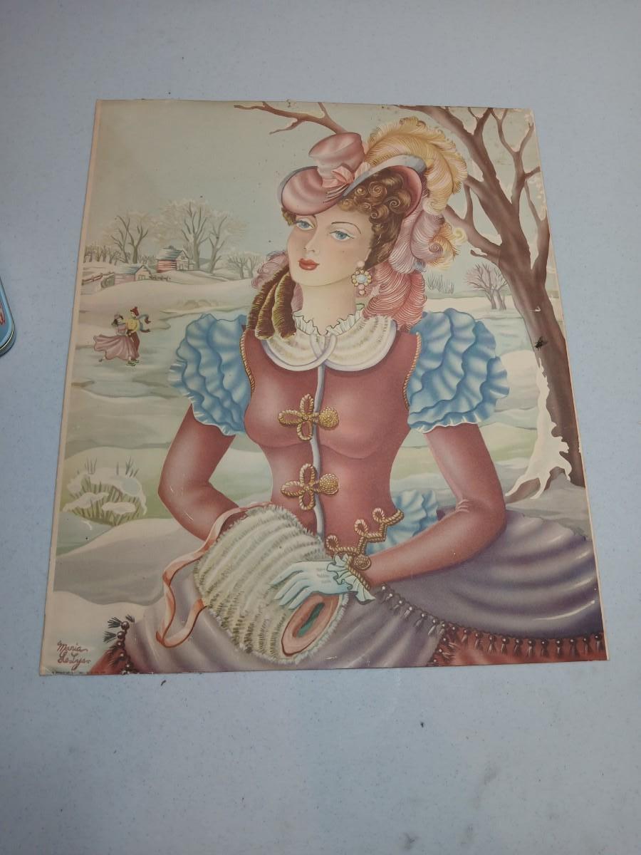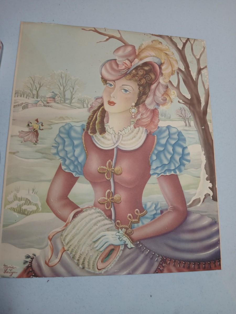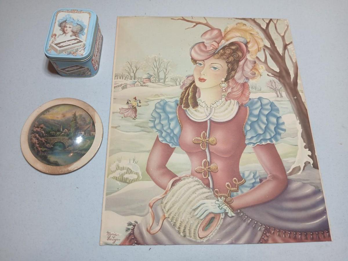 Rare "Winter Skate Southern Belle Air Brushed Lith" Donald Art Company, Inc- Convex wall art picture - and a vintage Nabisco Tin