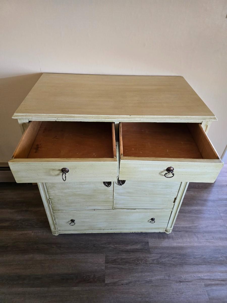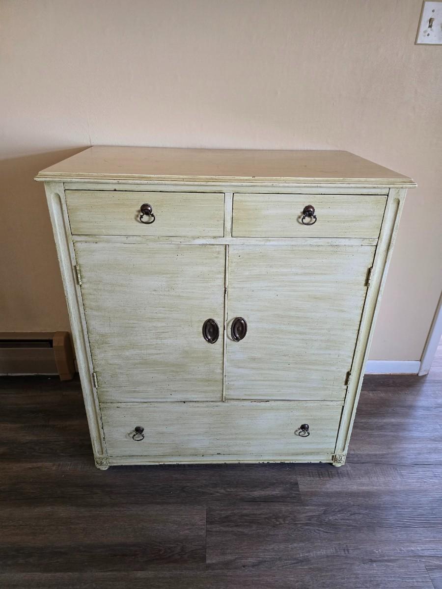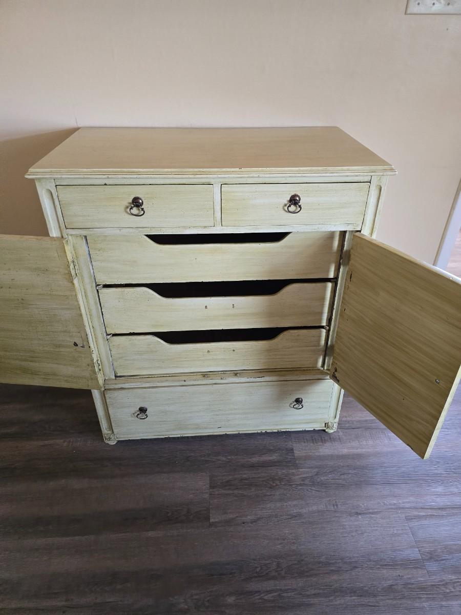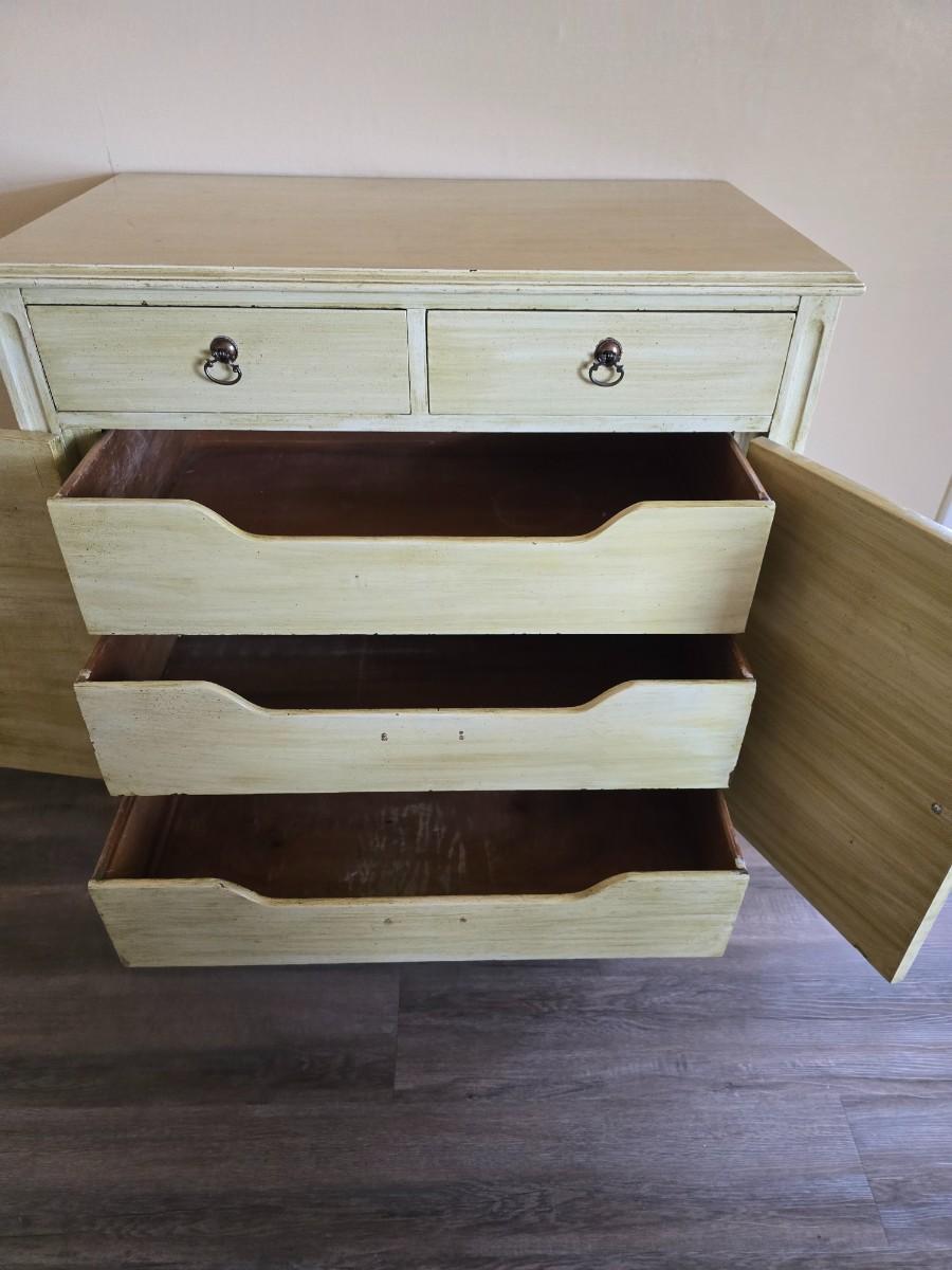 Distressed Walnut Chest of Drawers with front cabinet doors