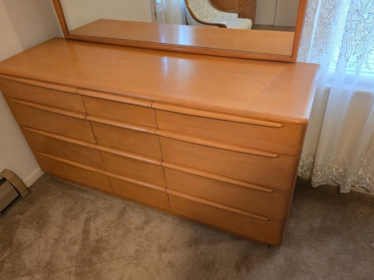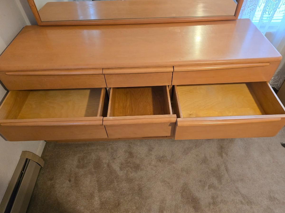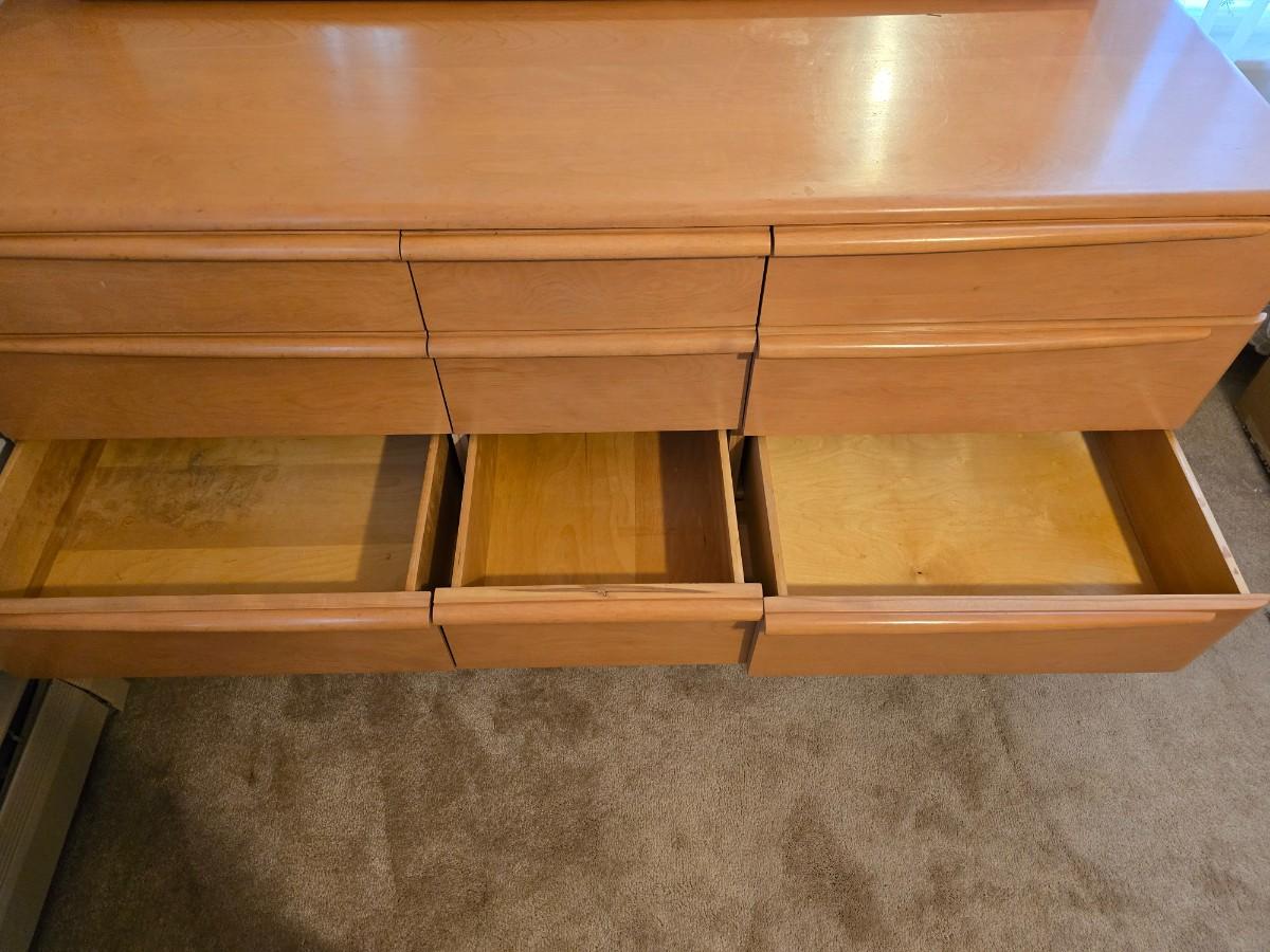 Beautiful vintage Heywood-Wakefield mid-century modern nine-drawer dresser and mirror