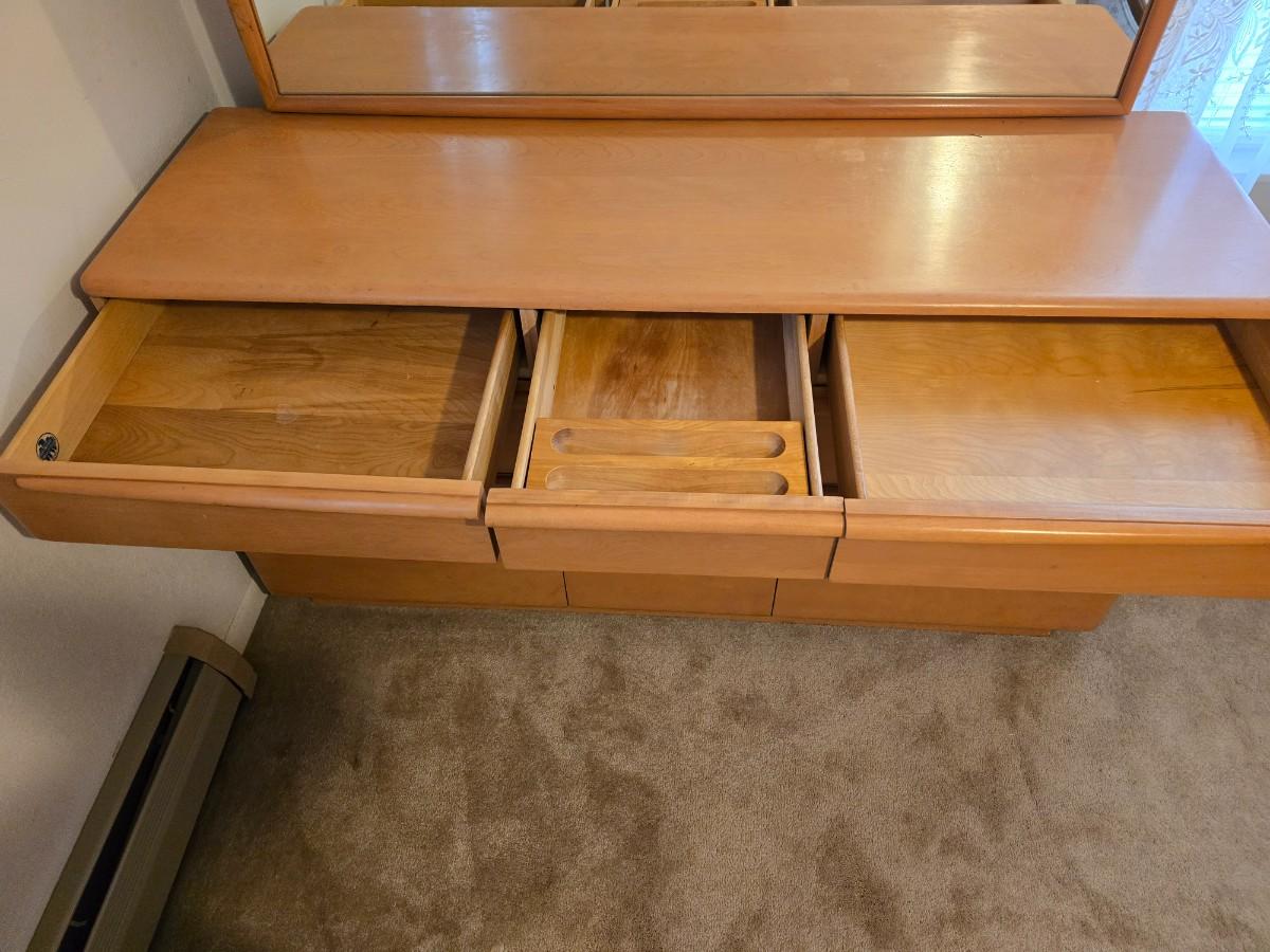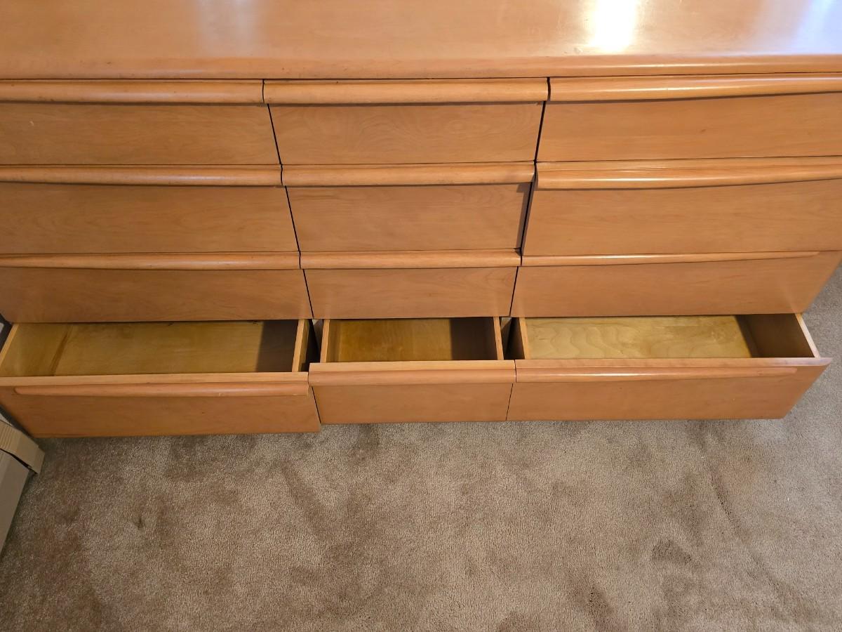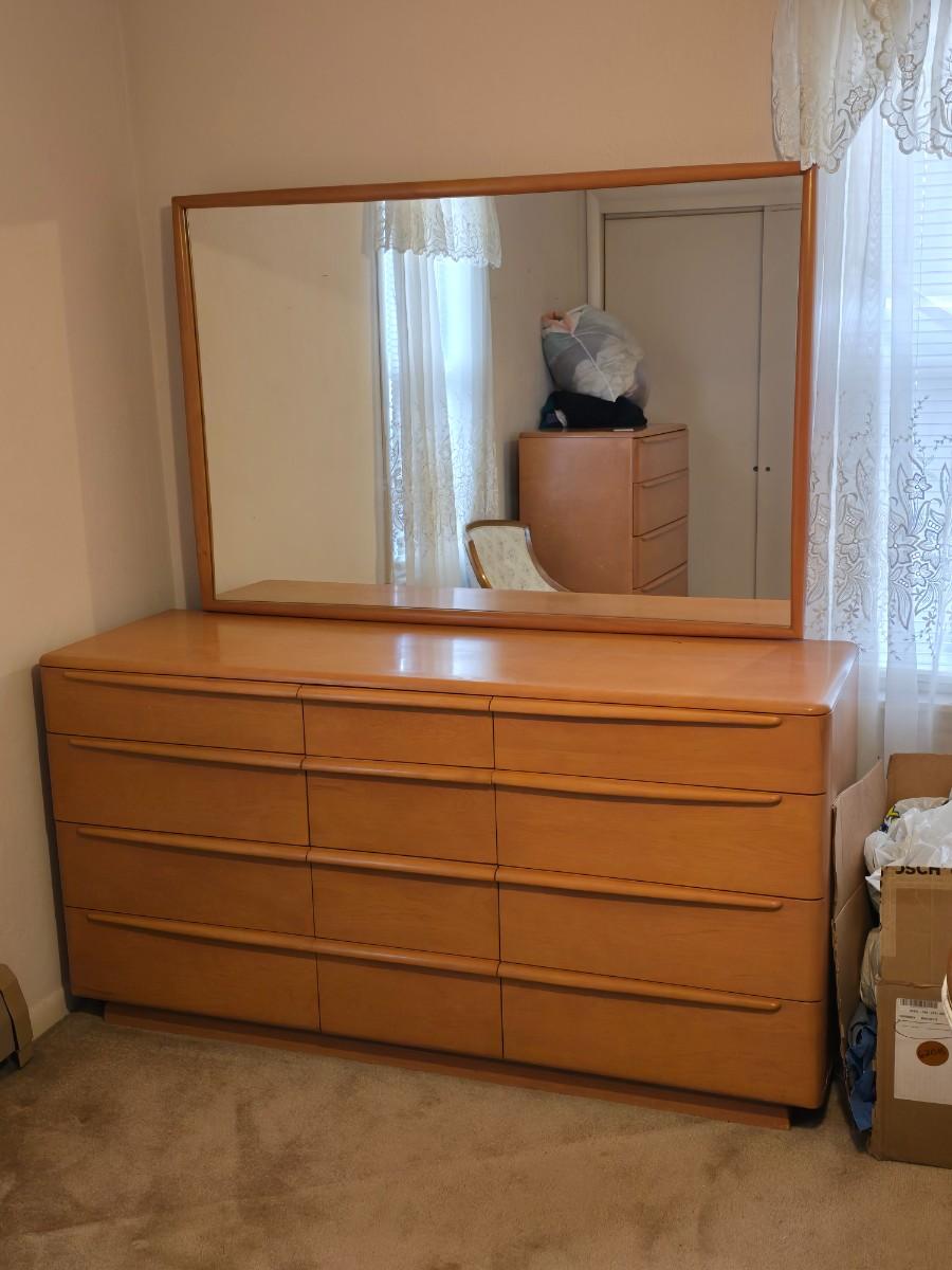 Beautiful vintage Heywood-Wakefield mid-century modern nine-drawer dresser and mirror