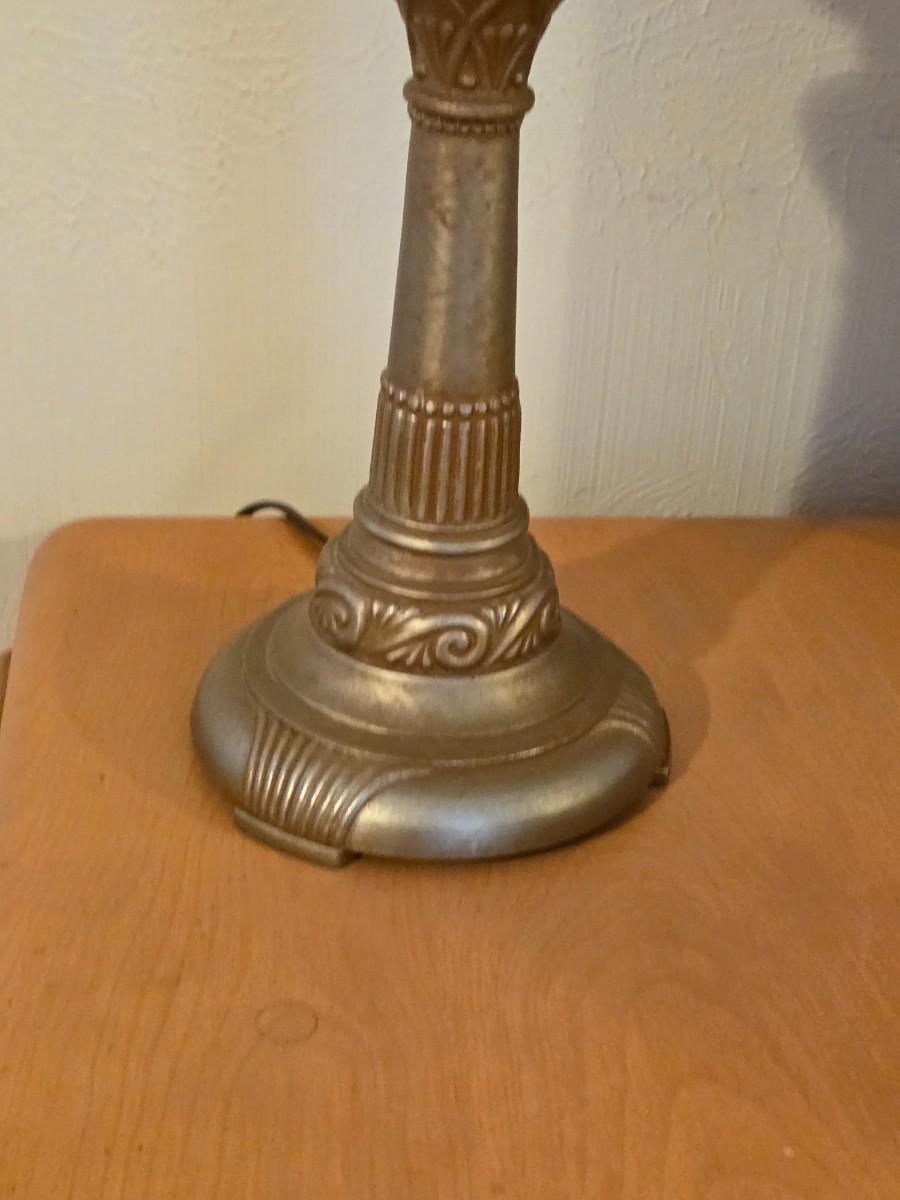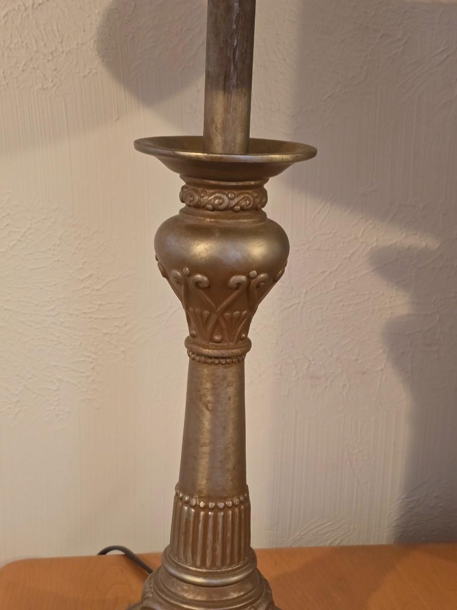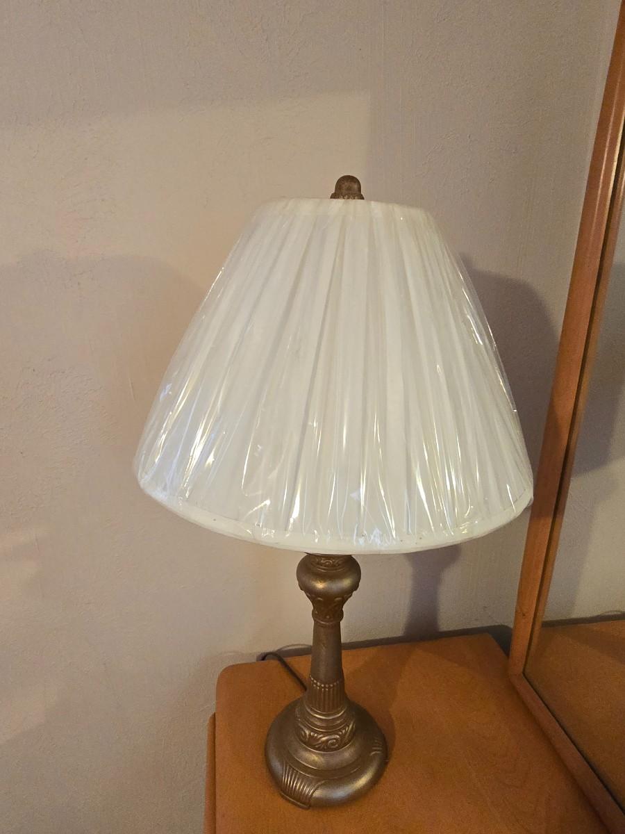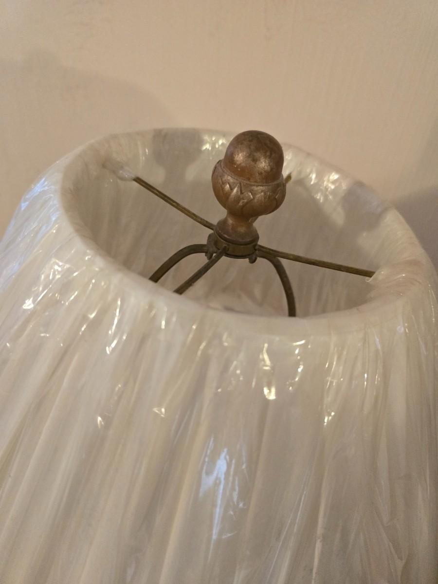28" traditional-style brass table lamp with an ornate base and a white pleated shade