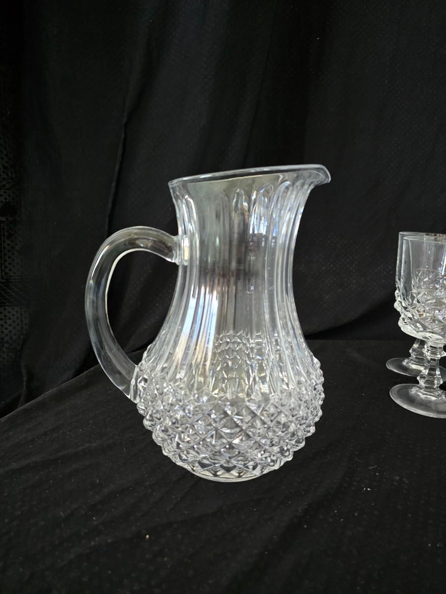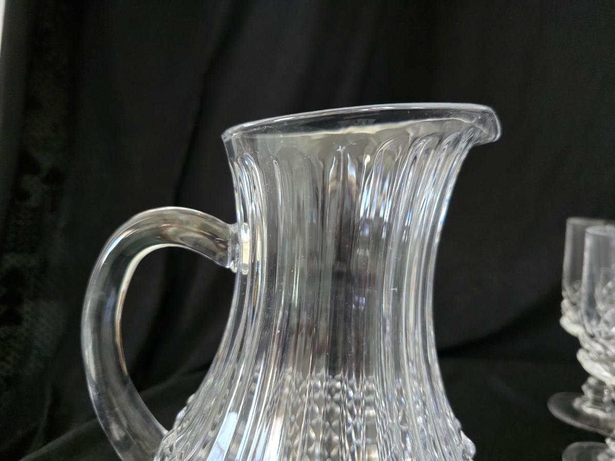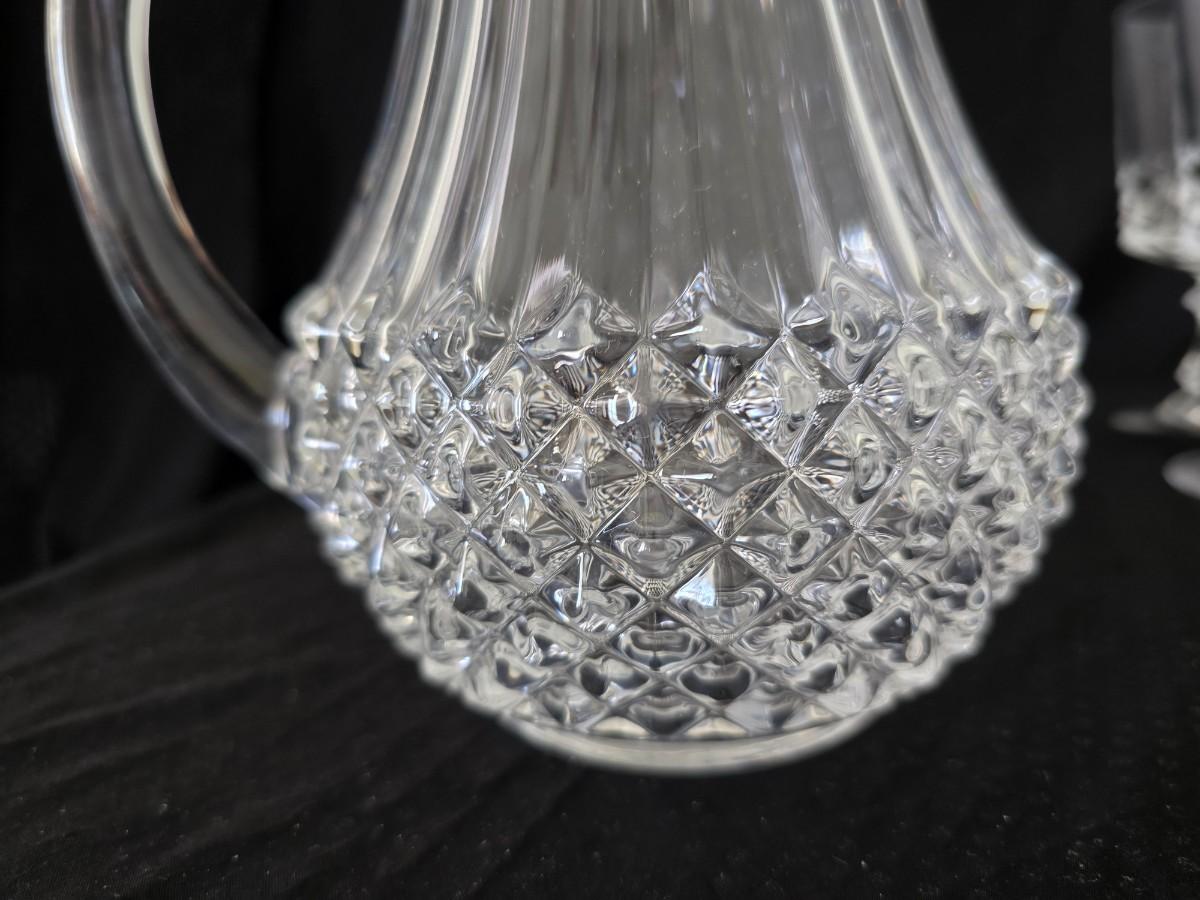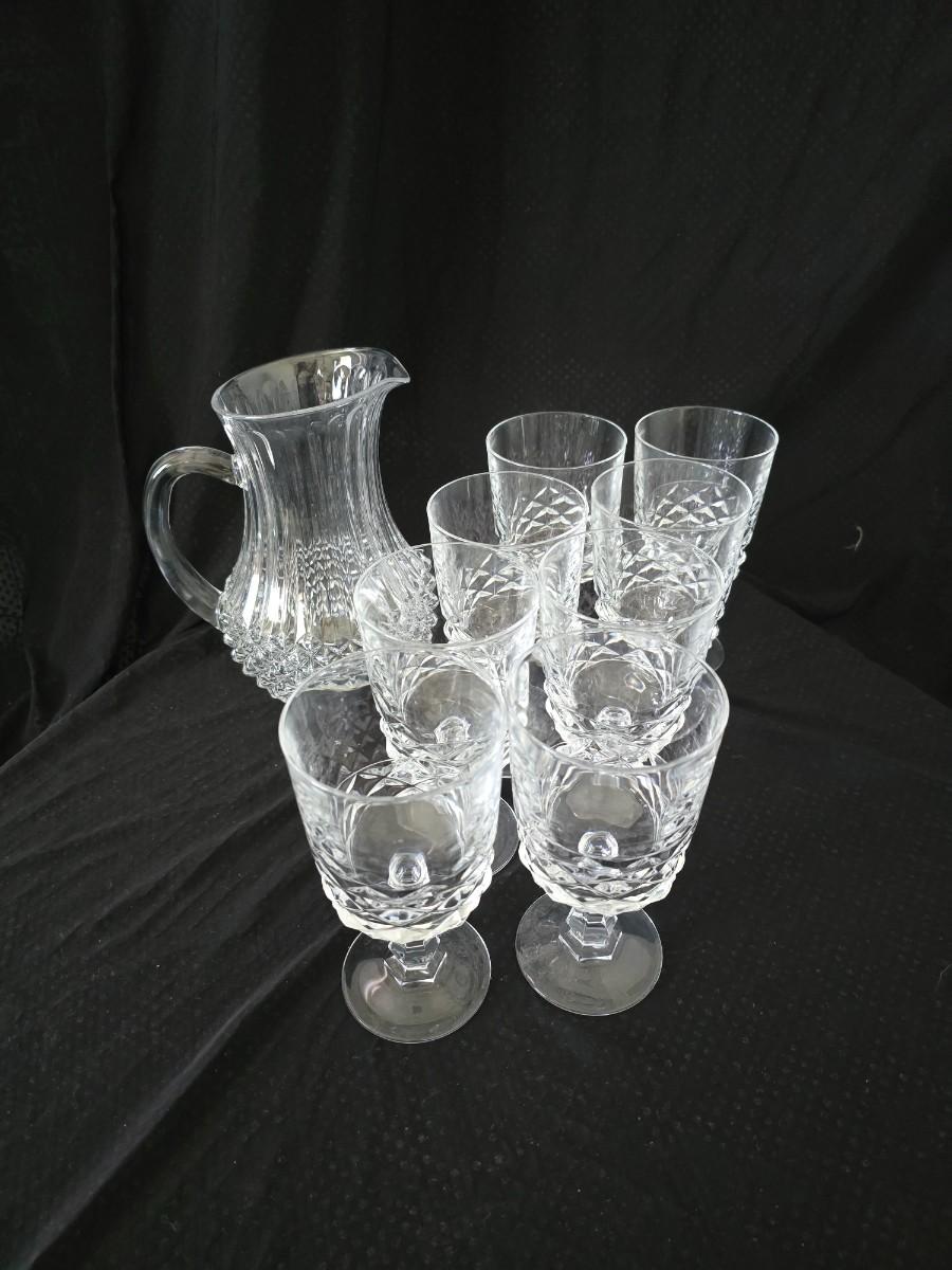 Vintage Cristal d'Arques J.G. Durand Longchamp lead crystal pitcher with 8 wine glasses