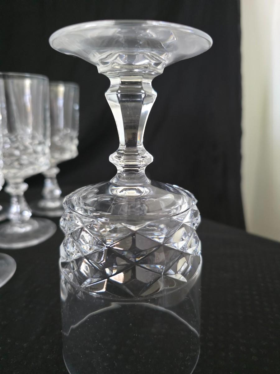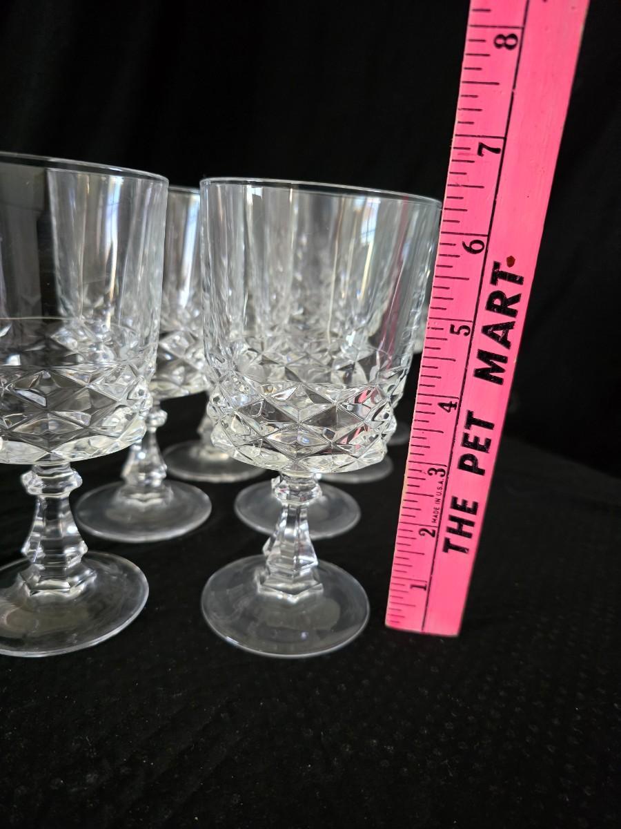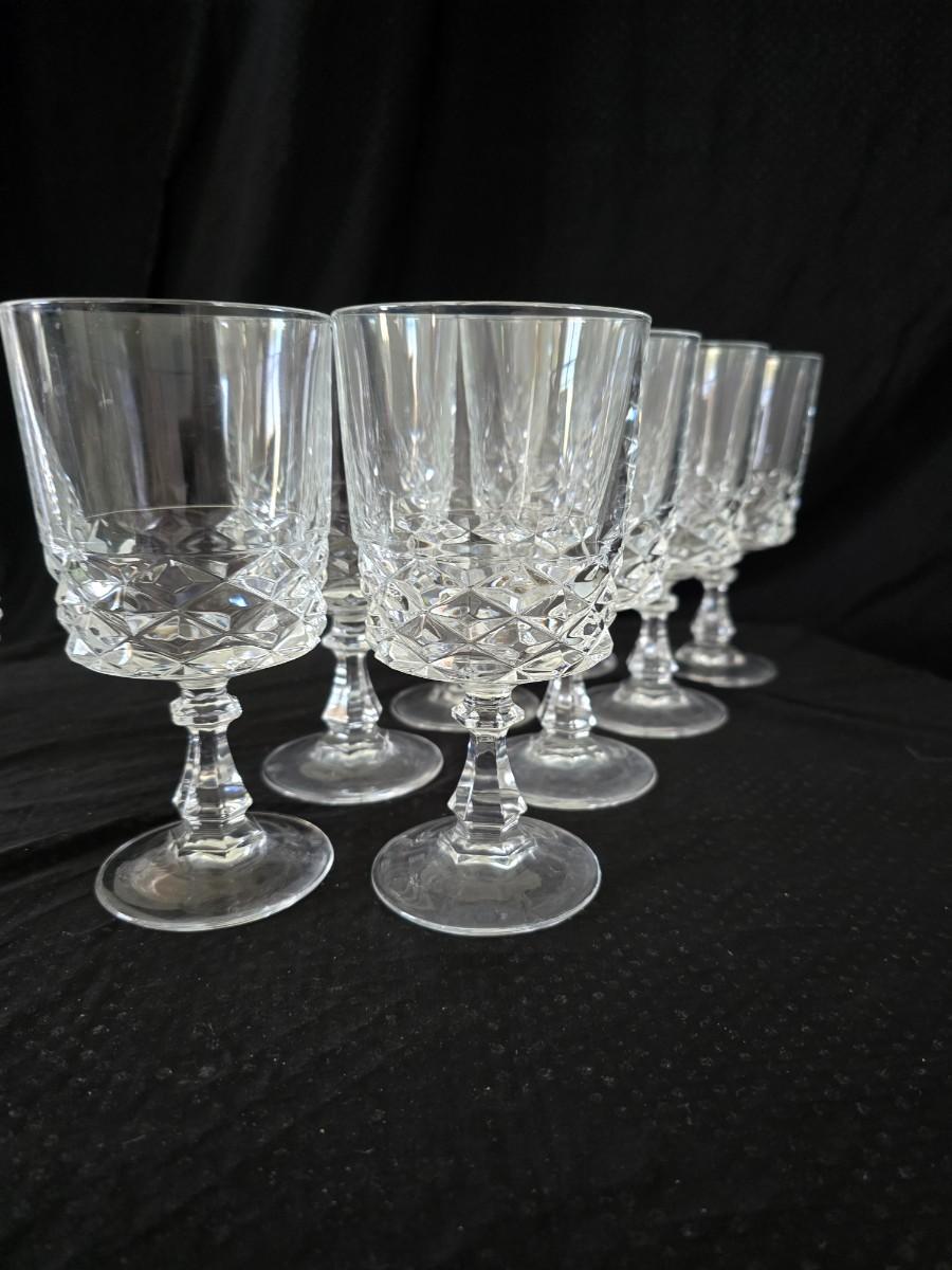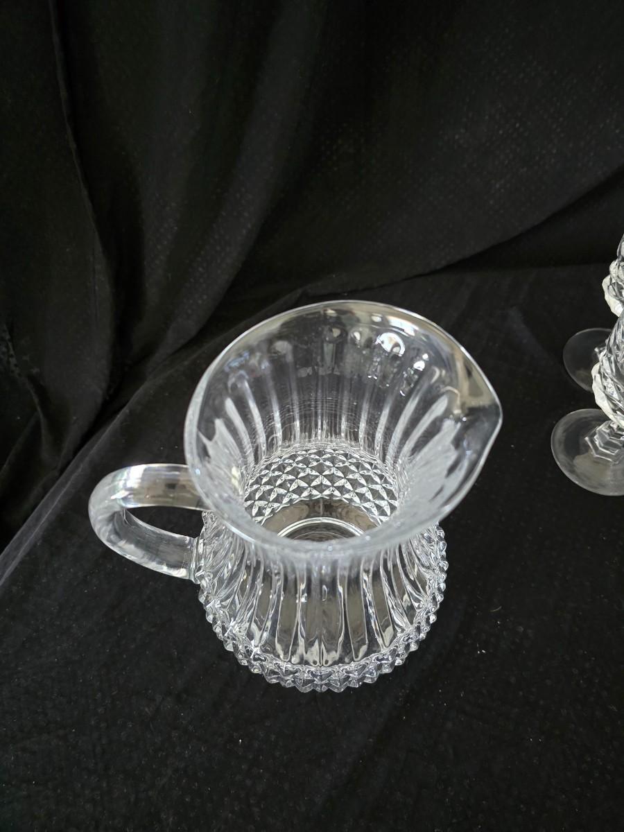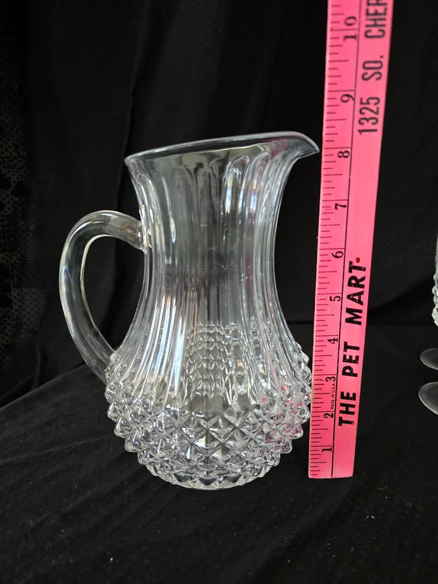 Vintage Cristal d'Arques J.G. Durand Longchamp lead crystal pitcher with 8 wine glasses