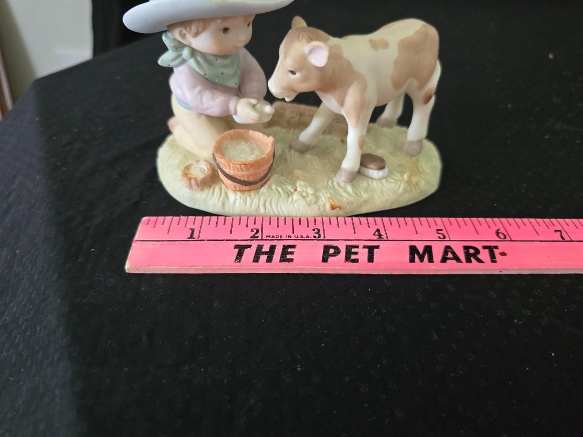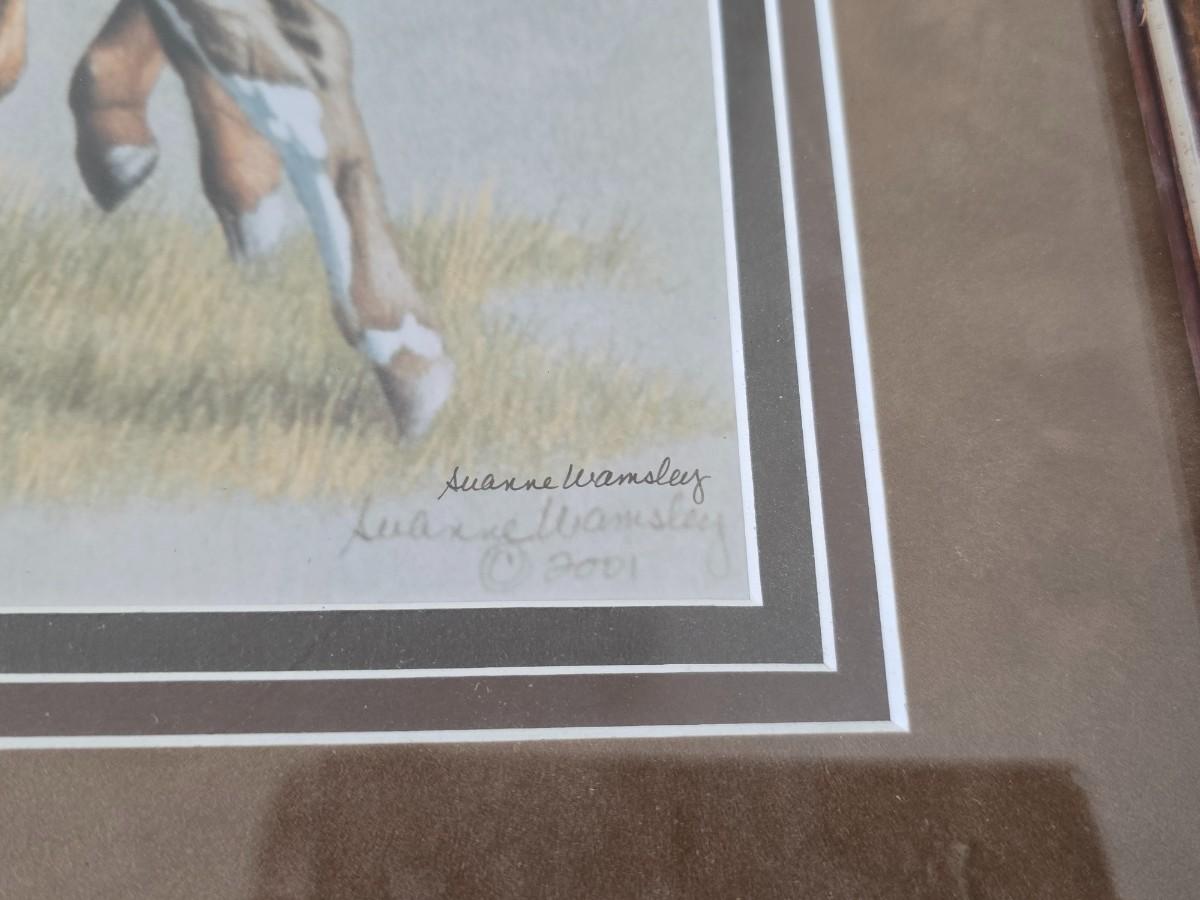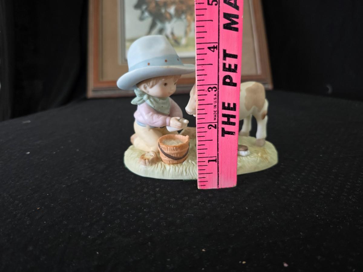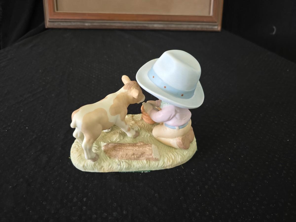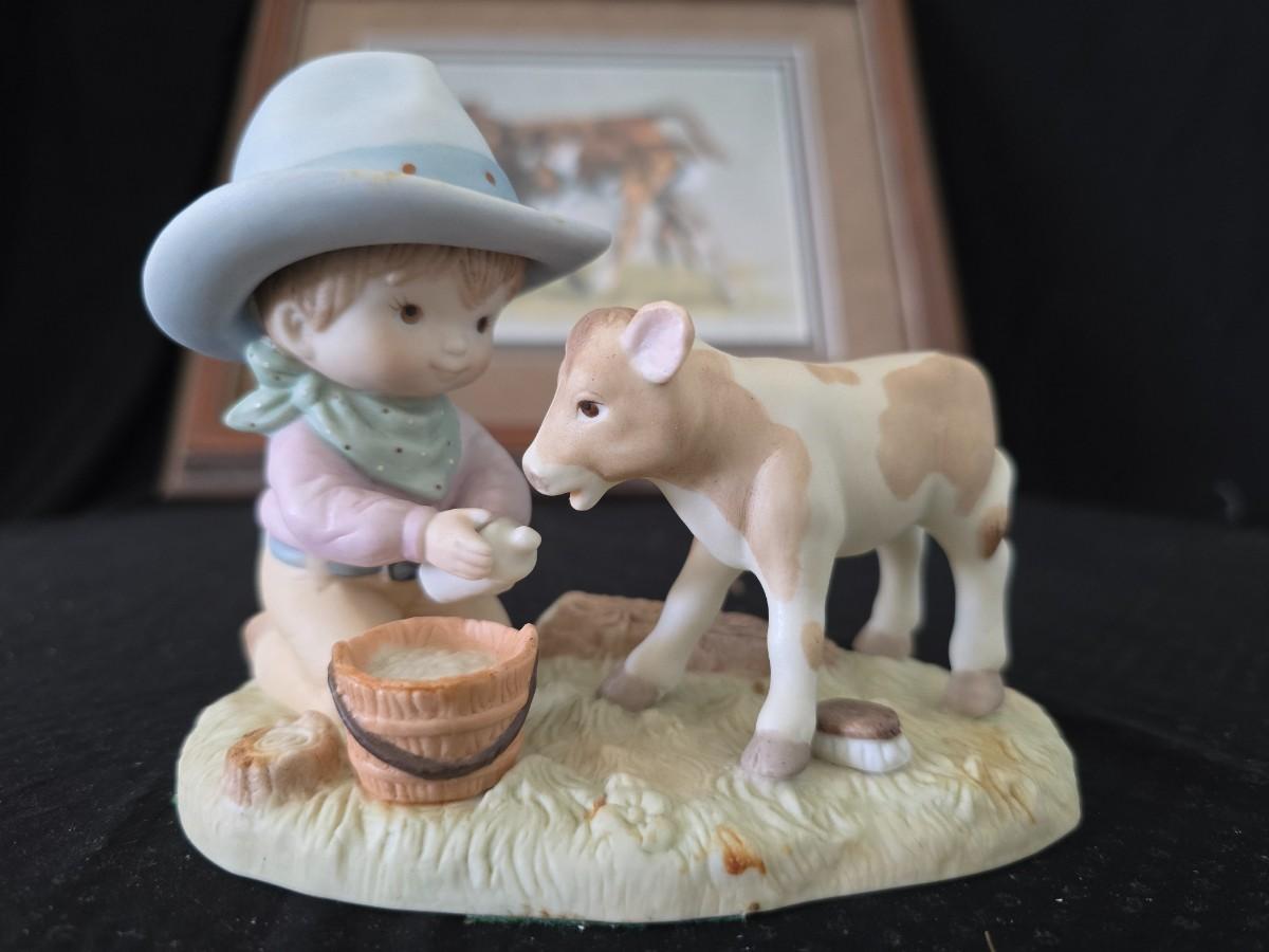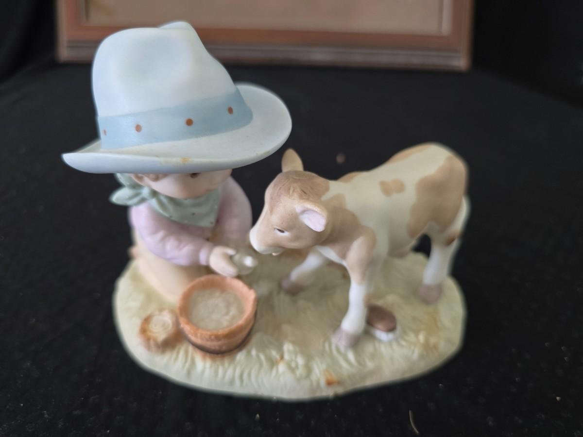 2001 Suanne Wamsley framed & signed calf artwork and 1982 Enesco "Kolby" porcelain figure