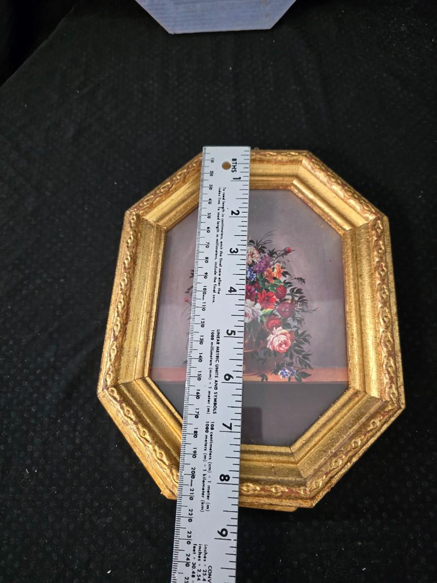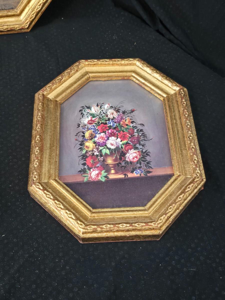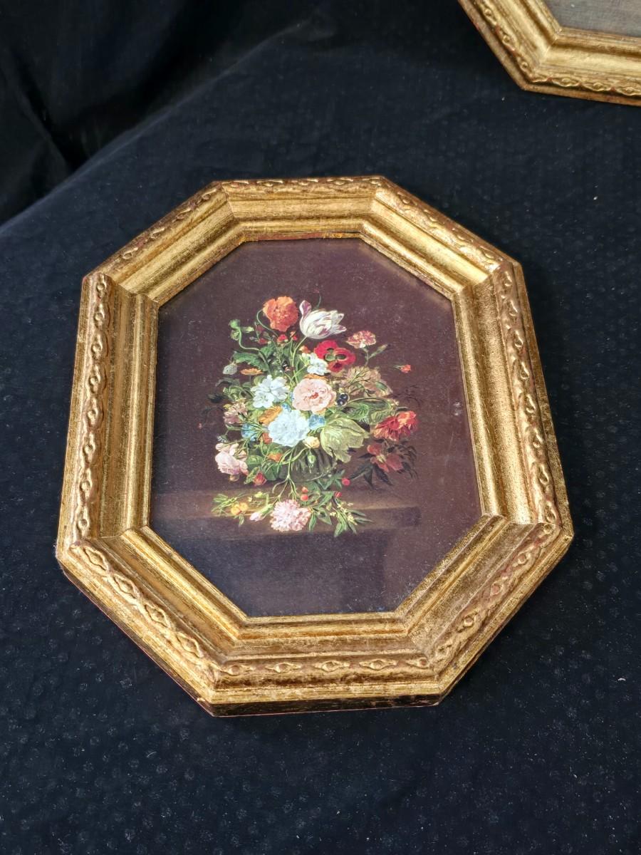 Gold framed Miss Jane Bowles, by the English artist Sir Joshua Reynolds and a pair of vintage Italian Florentine framed floral prints