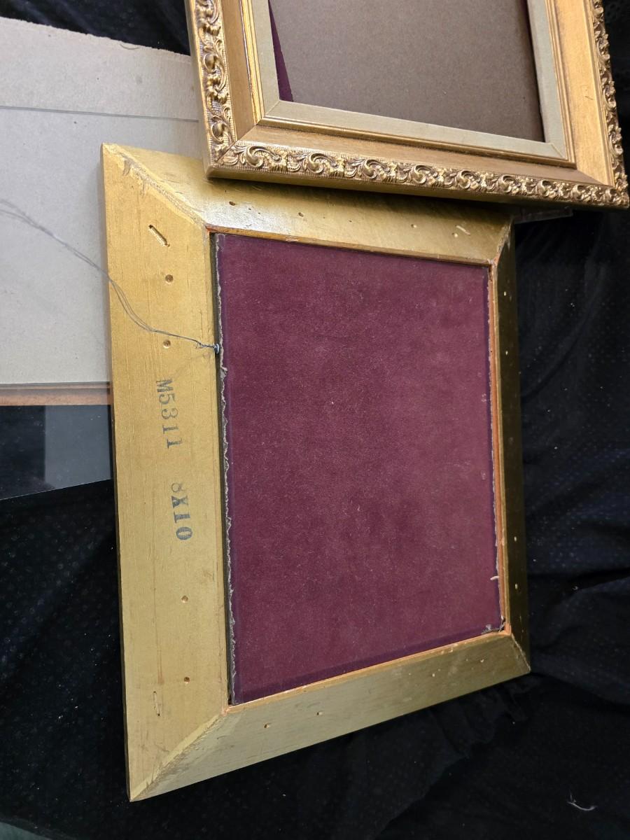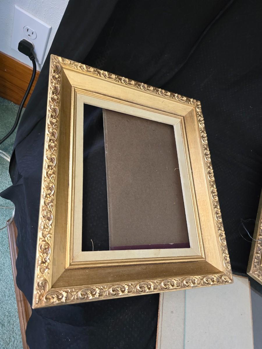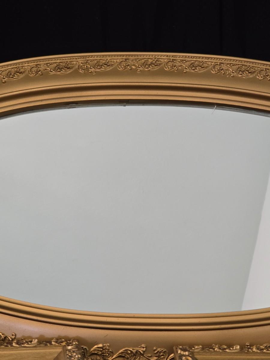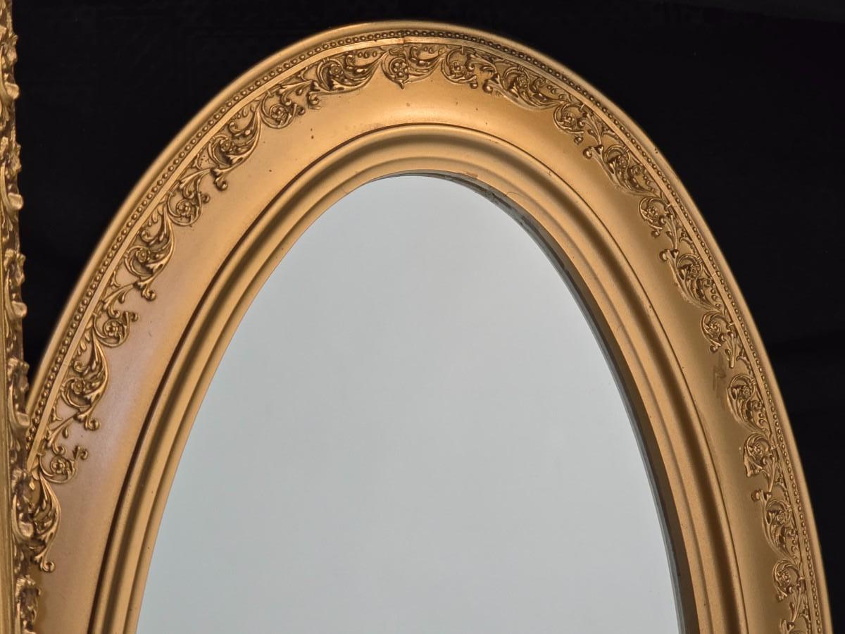 Large oval gold framed mirror with two matching /really close to matching gold decorative picture frames