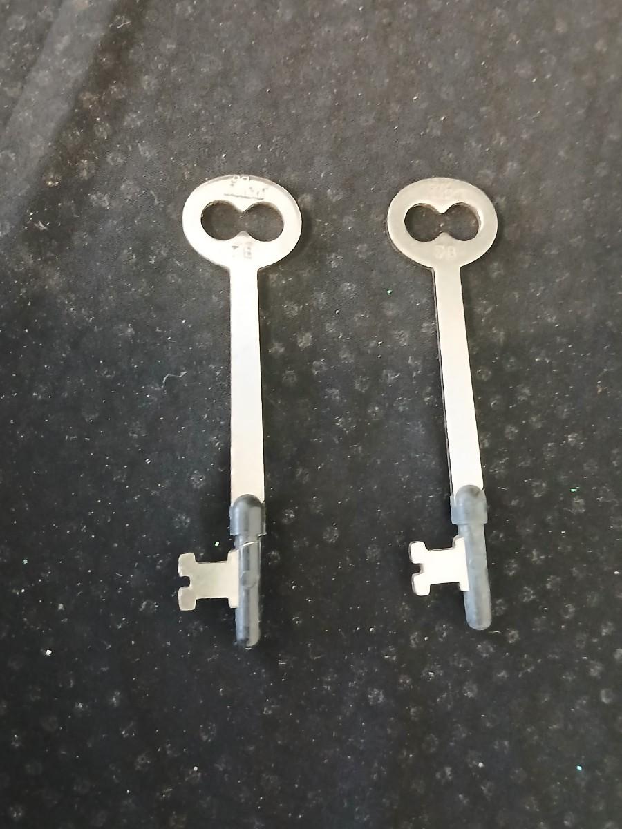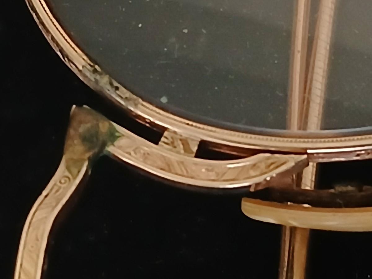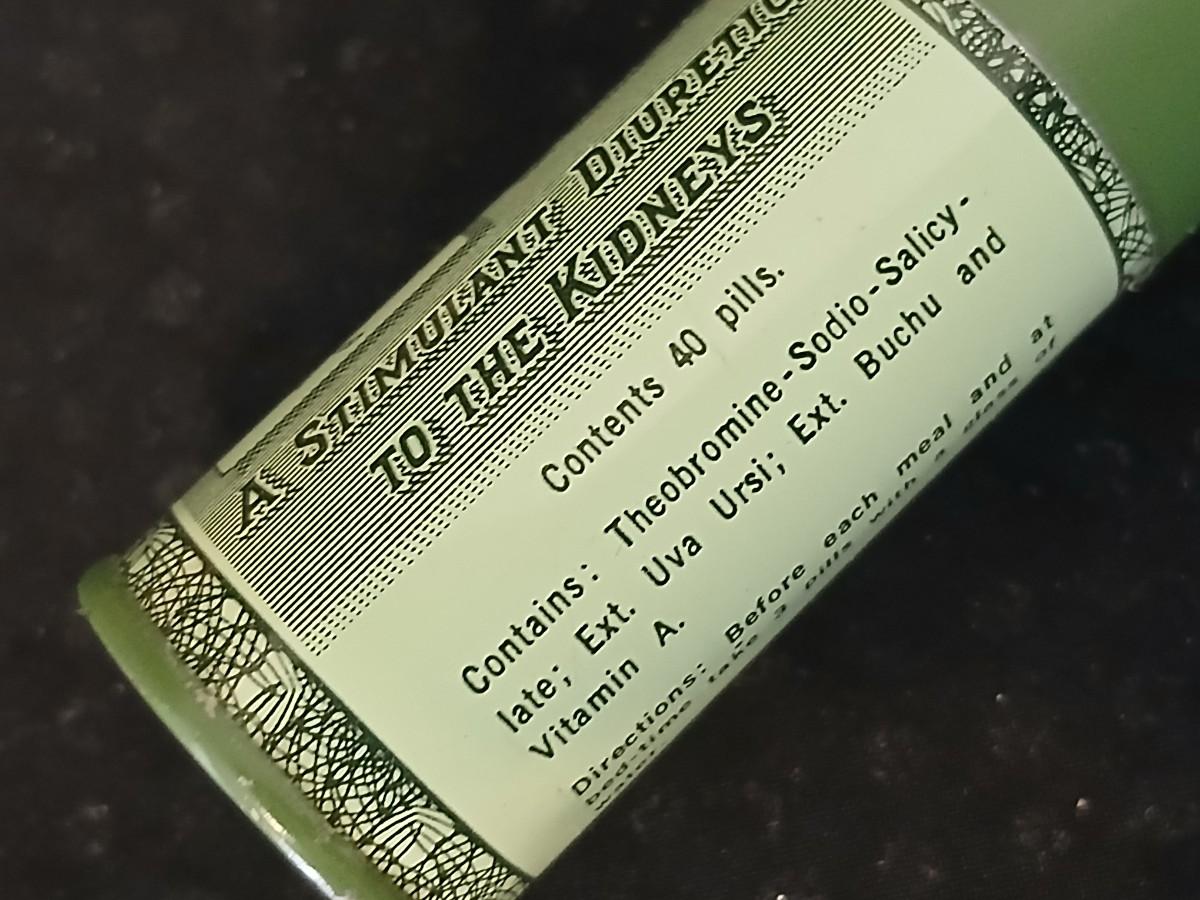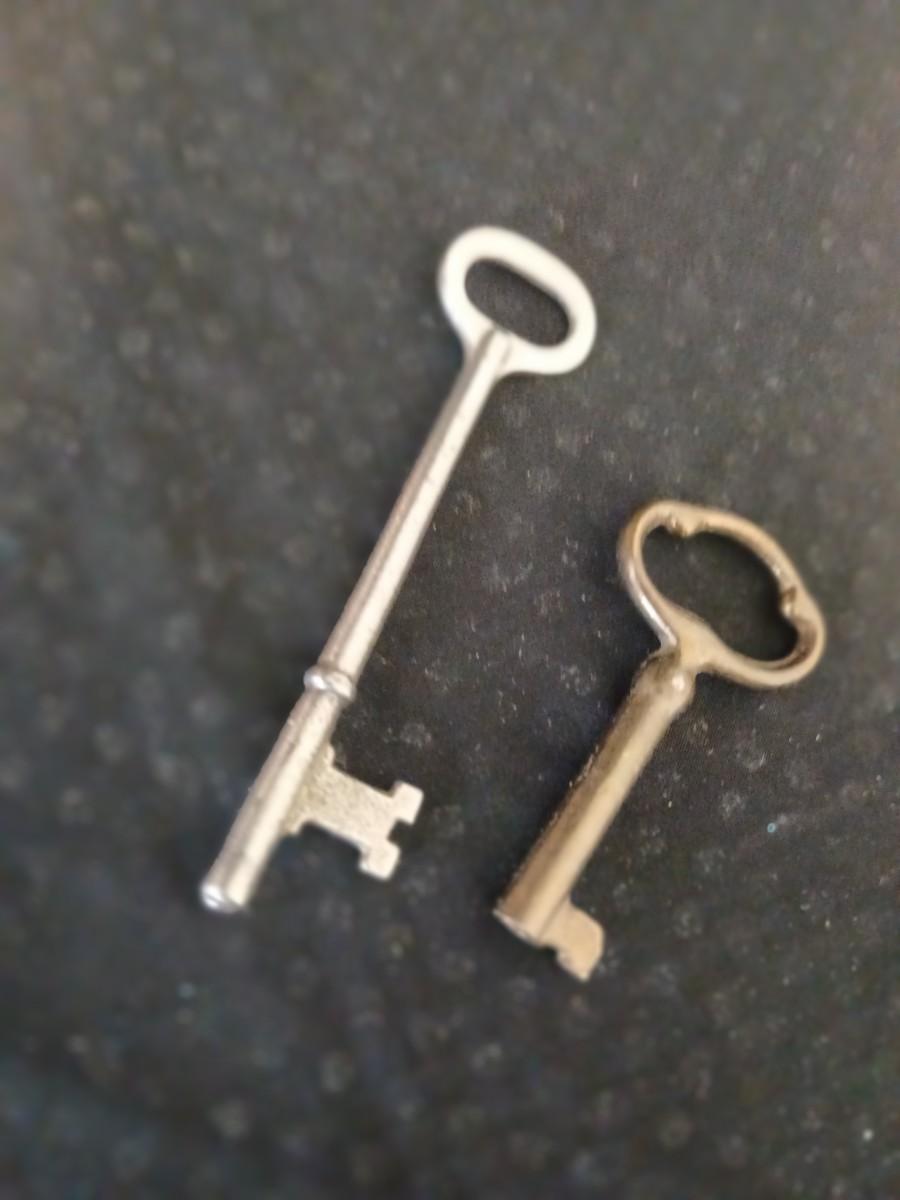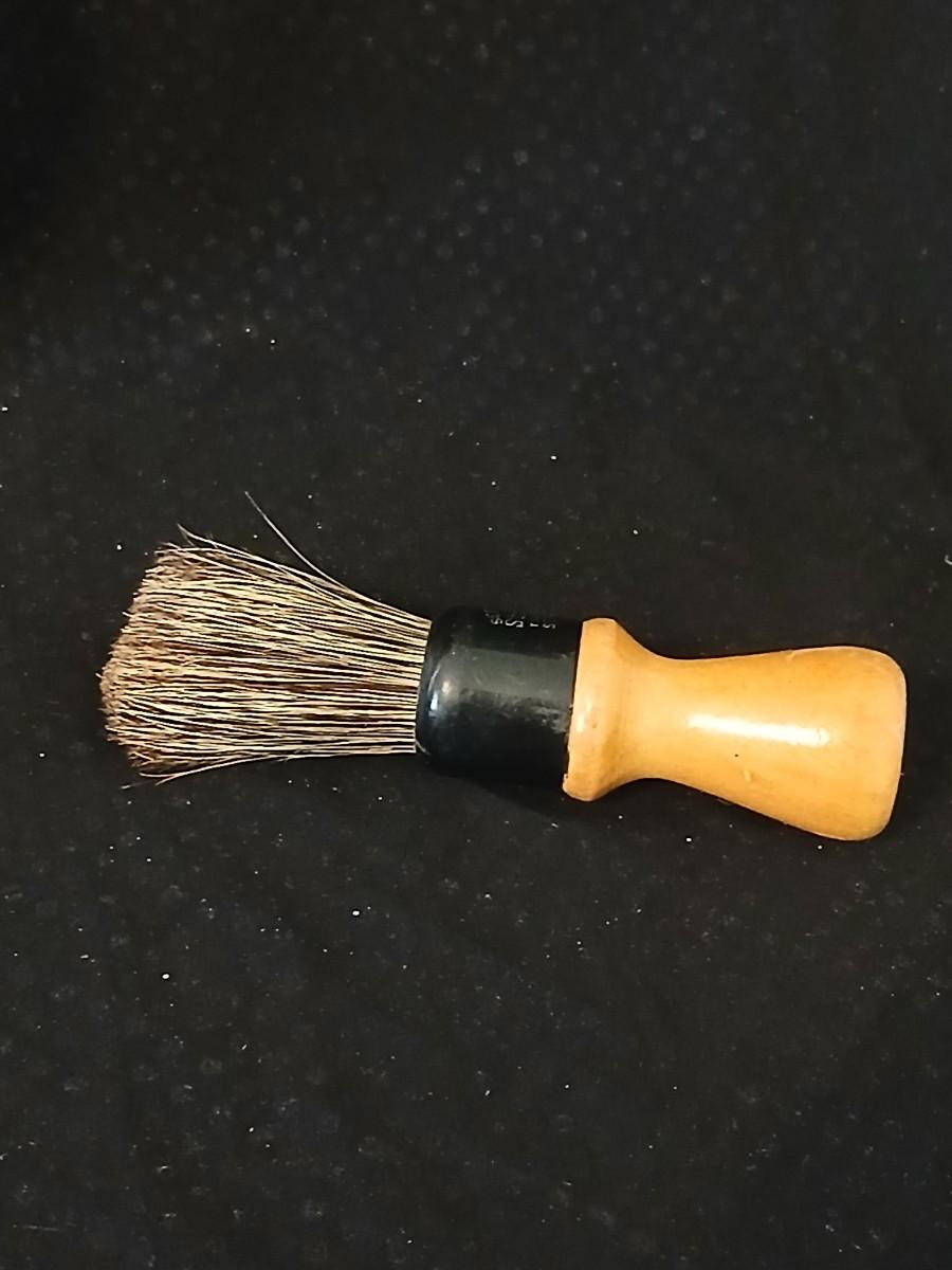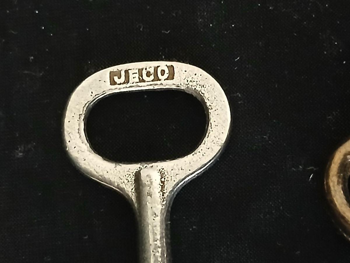 Barber tin with 12 K GF antiques glasses, Doan's pills tin, skeleton keys, Strong set shaving brush,