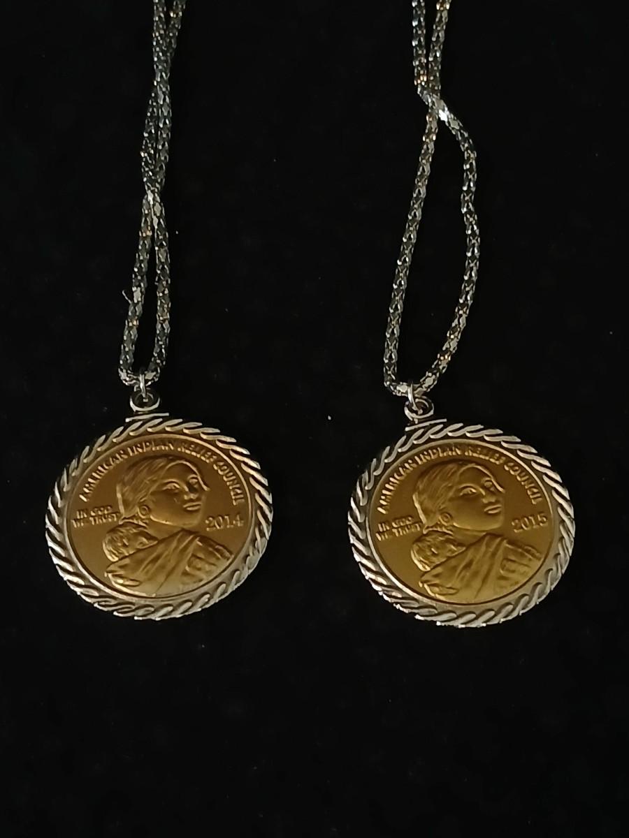 2014 & 2015 American Indian Relief Council coin pendants with chains