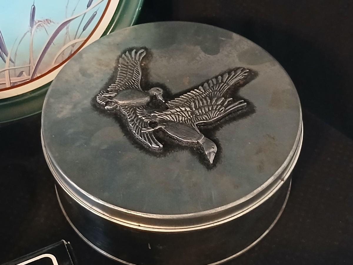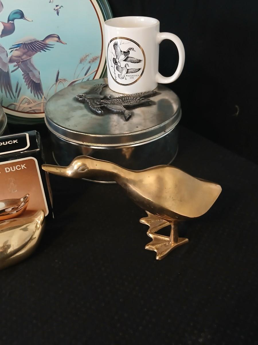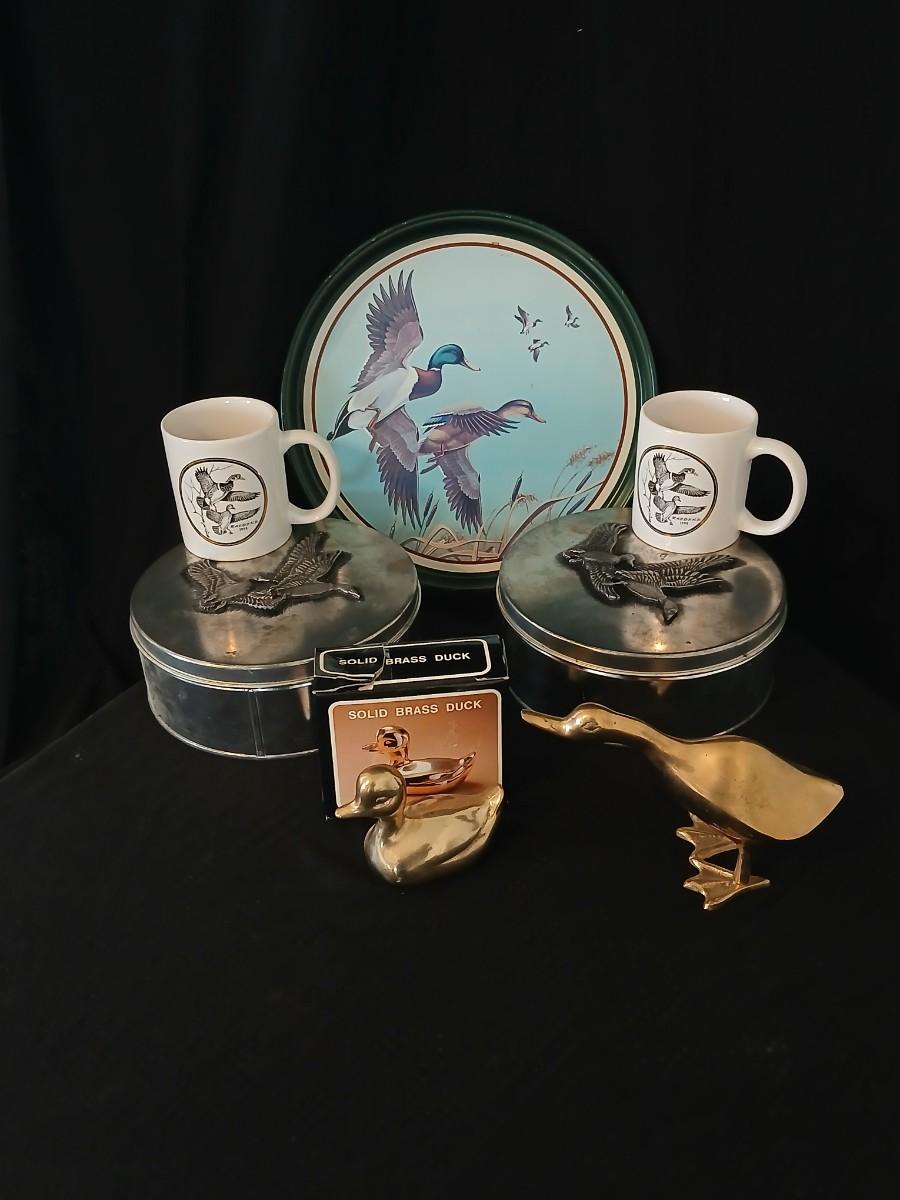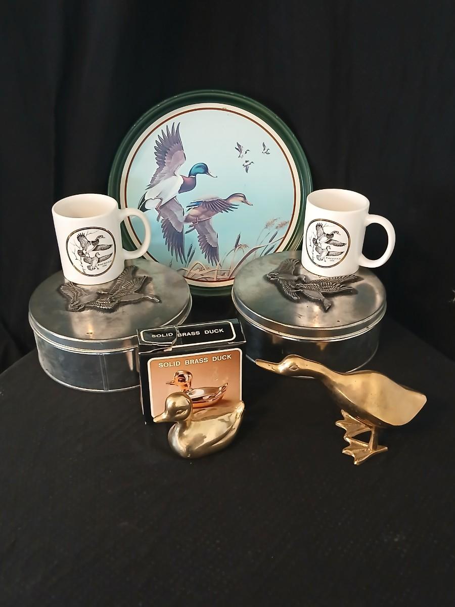 It's all about the Mallards! Mallard ducks in flight tin - Duck mugs - Solid Brass ducks - two additional duck themed tins