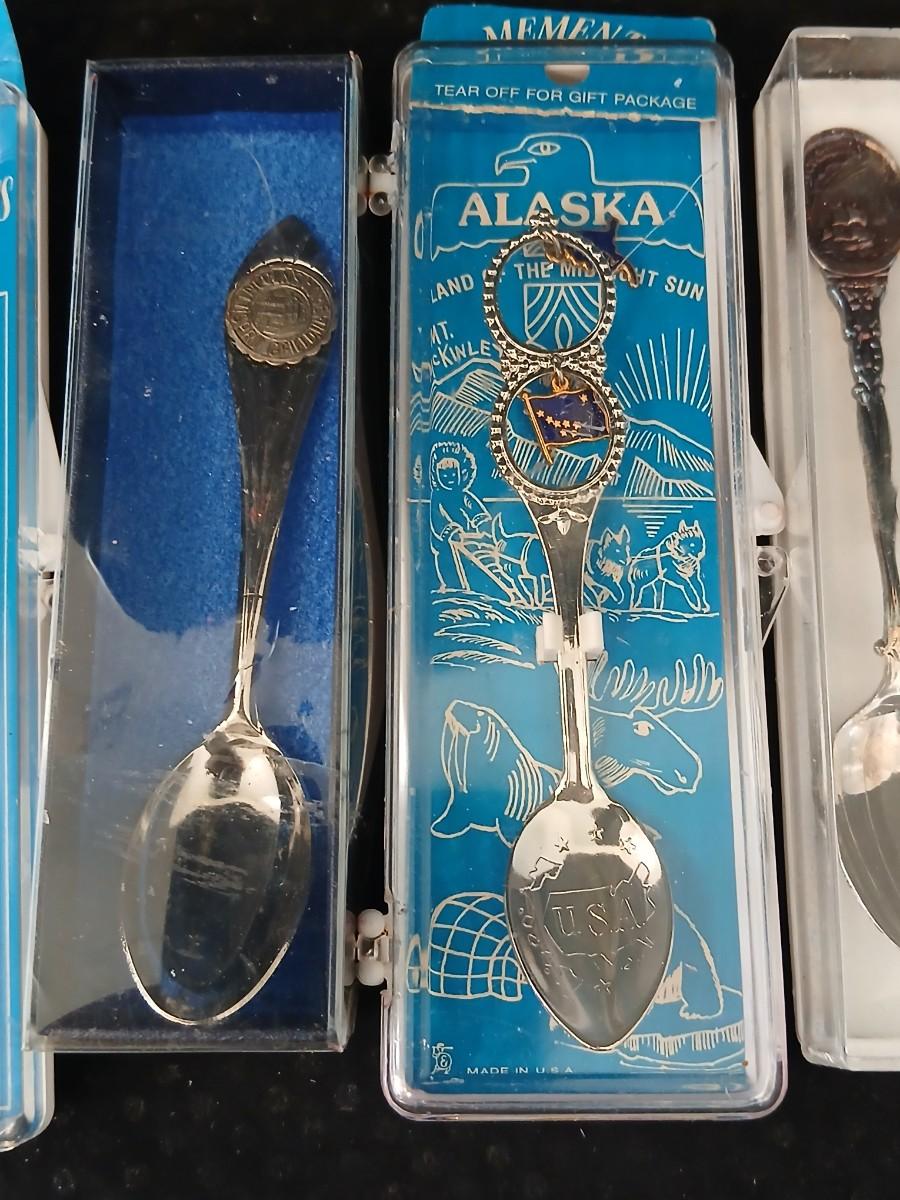 Collection of Souvenir spoons - One Sterling silver - Alaska - San Diego - New Mexico - and more