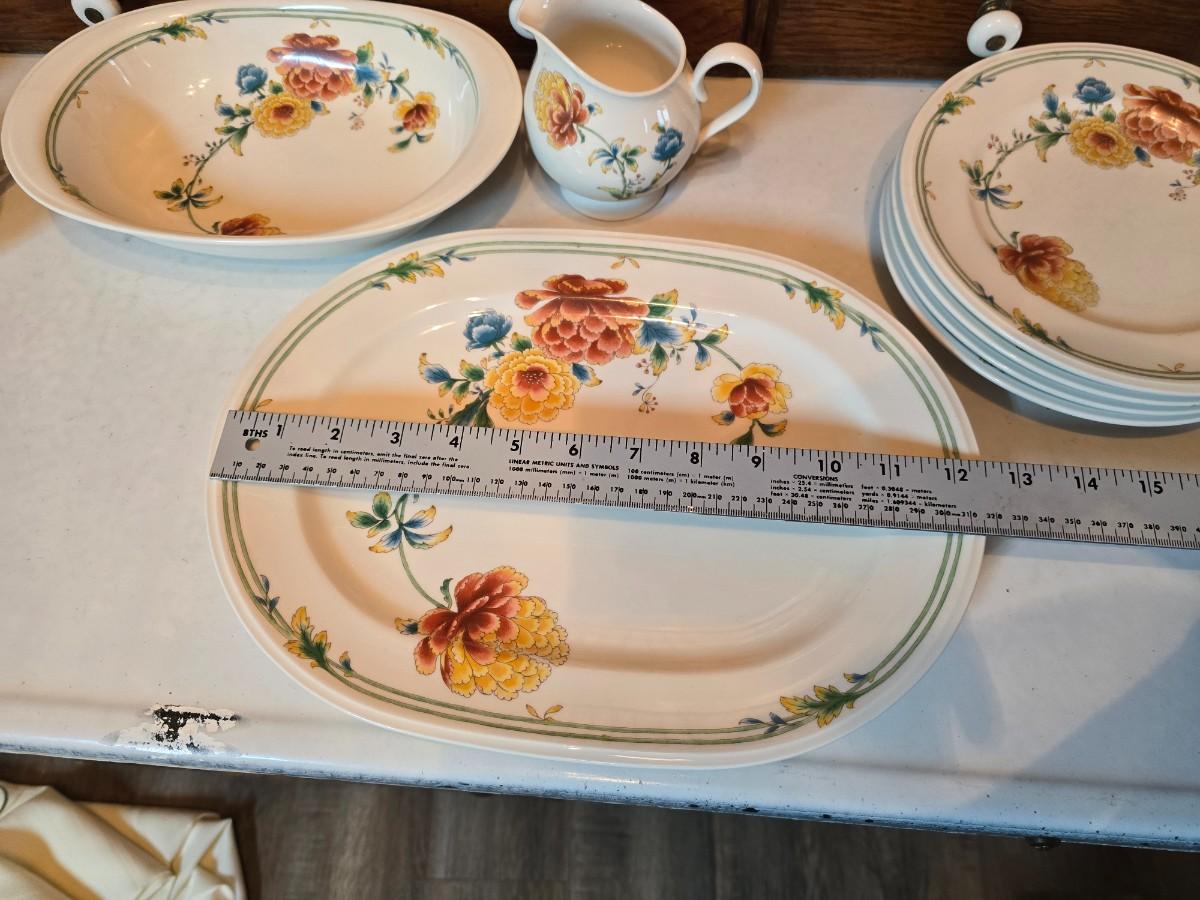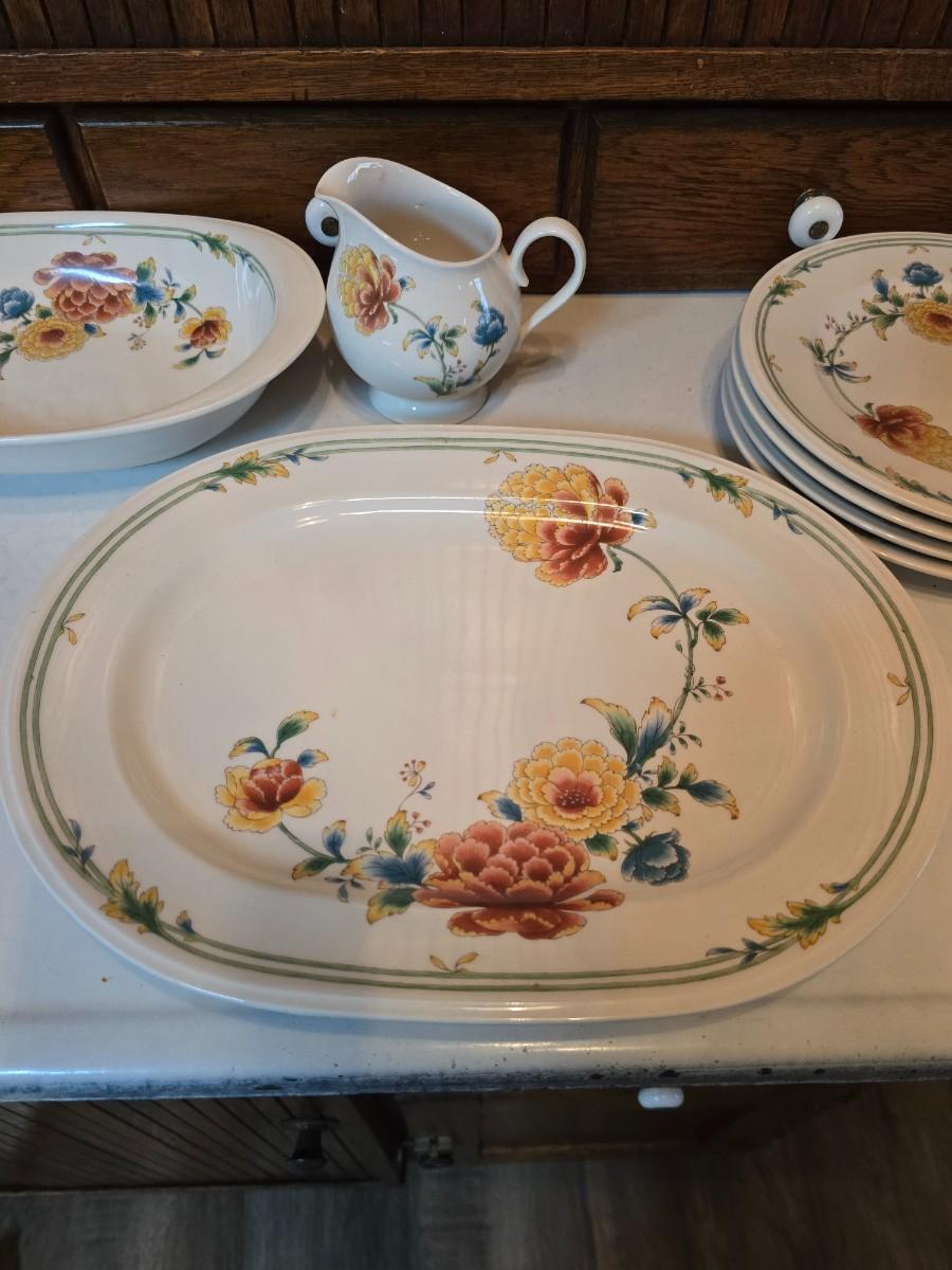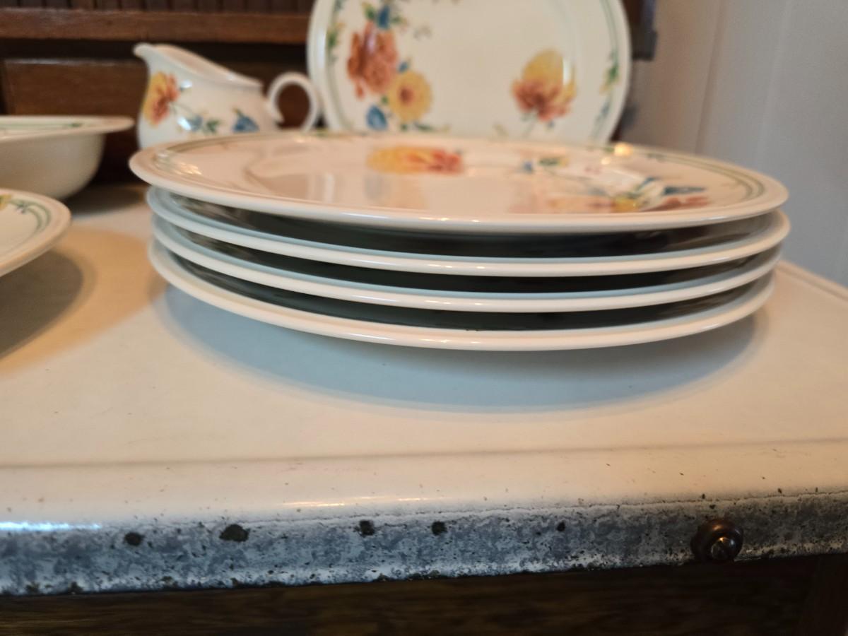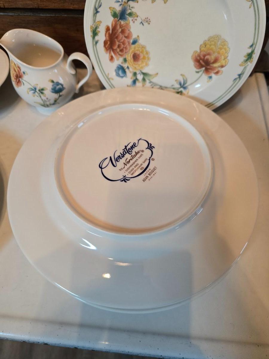 Noritake Versatone Asian Bouquet pattern - 4-piece place setting Plates with oval bowl, sugar & creamer, platter & mugs