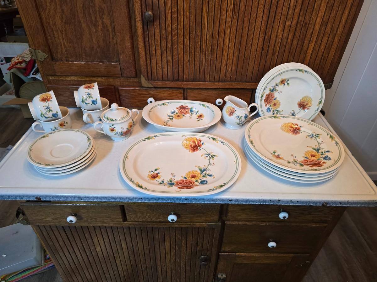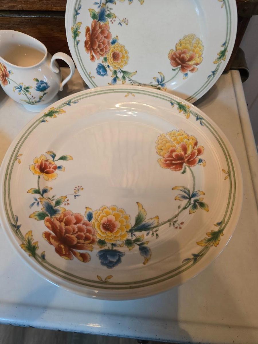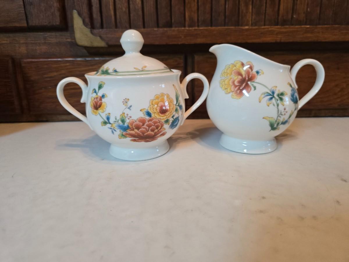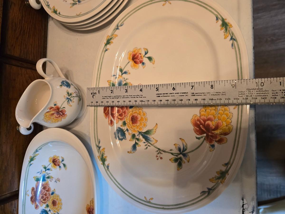 Noritake Versatone Asian Bouquet pattern - 4-piece place setting Plates with oval bowl, sugar & creamer, platter & mugs
