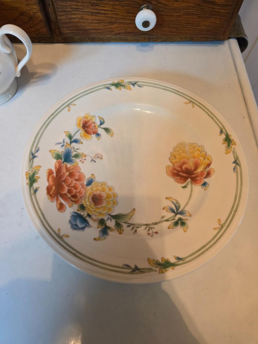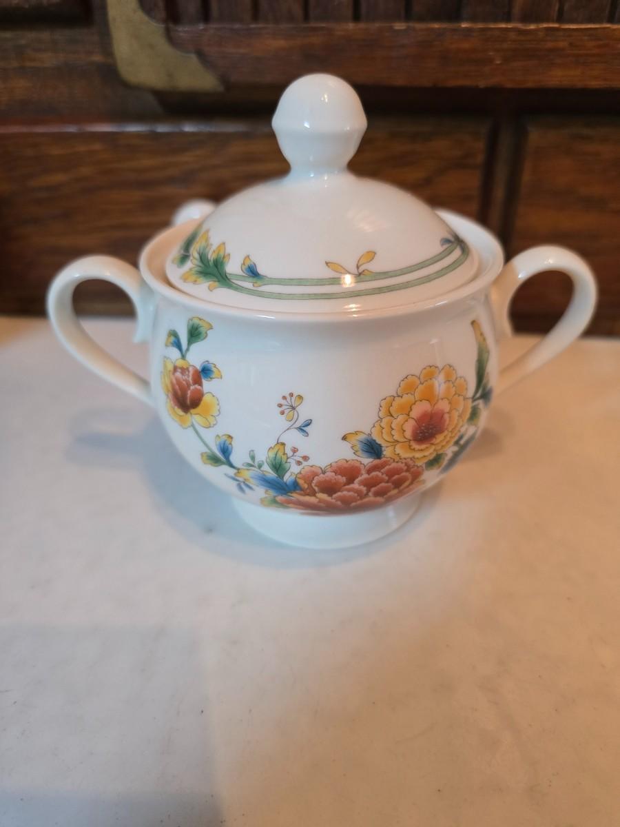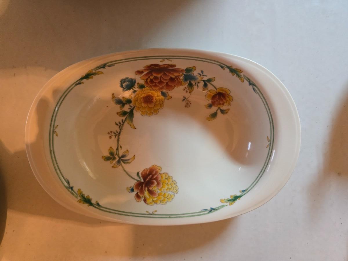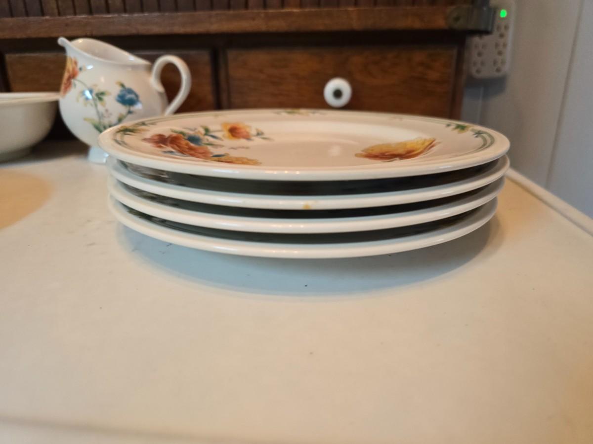 Noritake Versatone Asian Bouquet pattern - 4-piece place setting Plates with oval bowl, sugar & creamer, platter & mugs