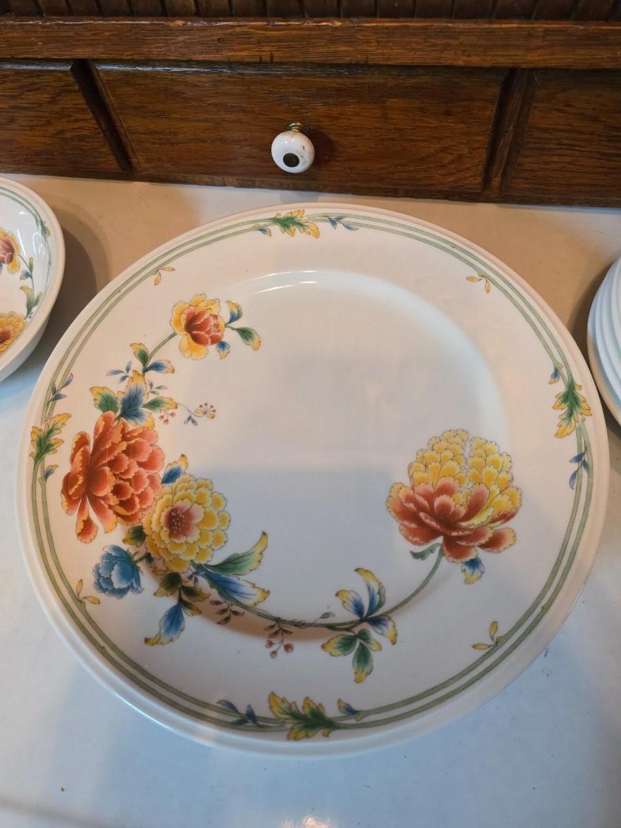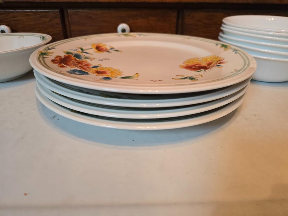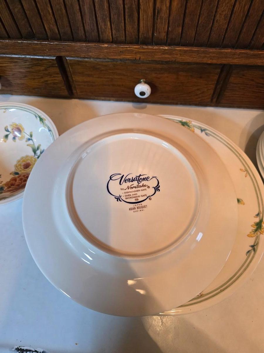 Noritake Versatone Asian Bouquet pattern -Assorted replacement plates & mugs with white corelle bowls