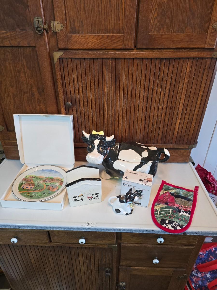 Holstien cow cookie jar - Villeroy & Brooch collectible plate - Cow napkin holder - creamer and more