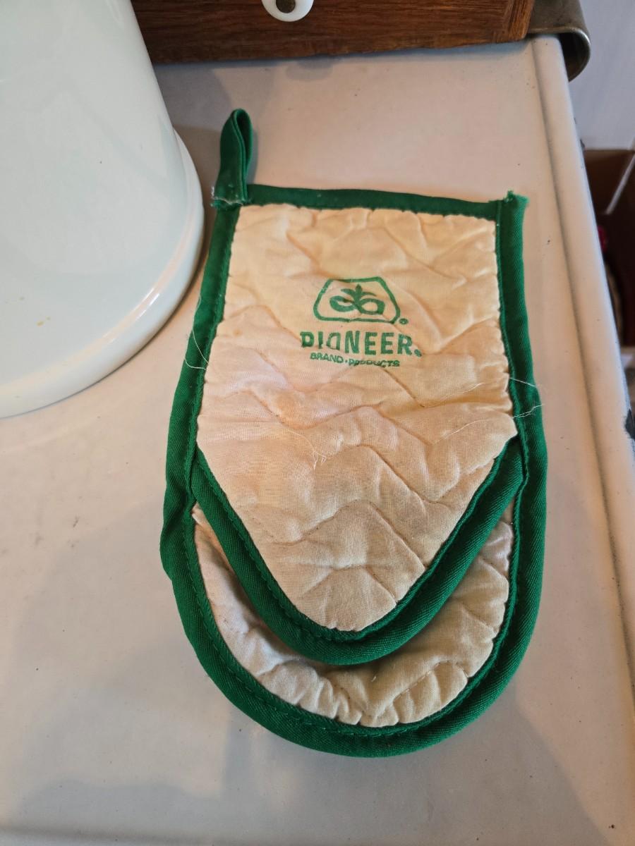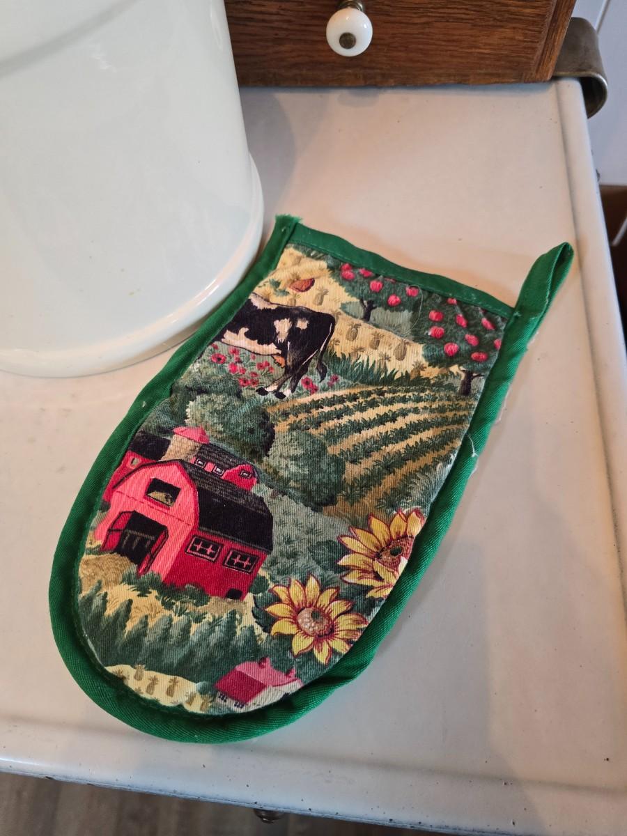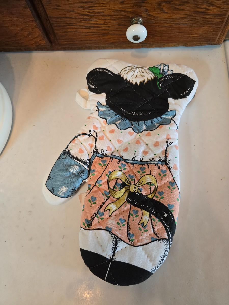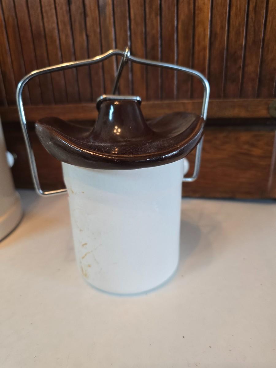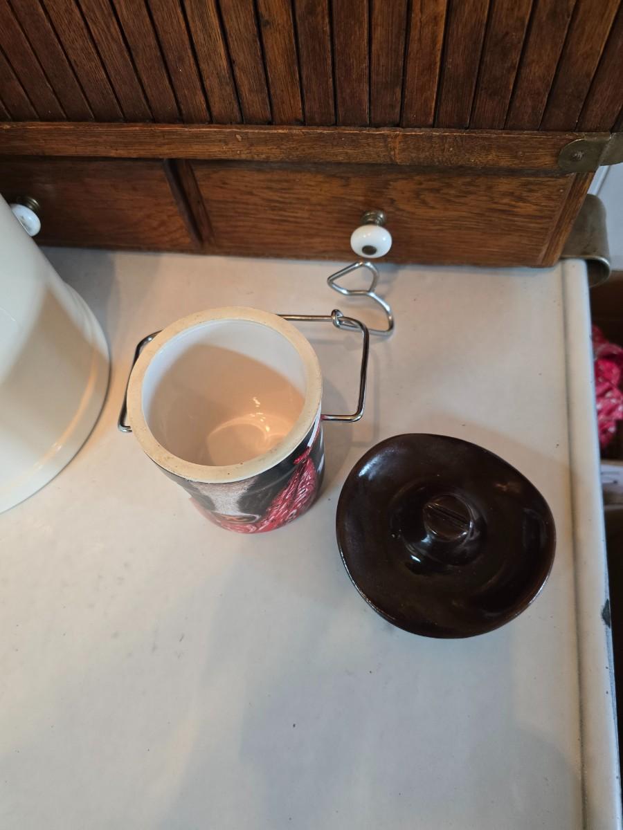 Cow canister - Ceramic cow themed crock - copper-toned cast iron trivet in the shape of a cow - and more