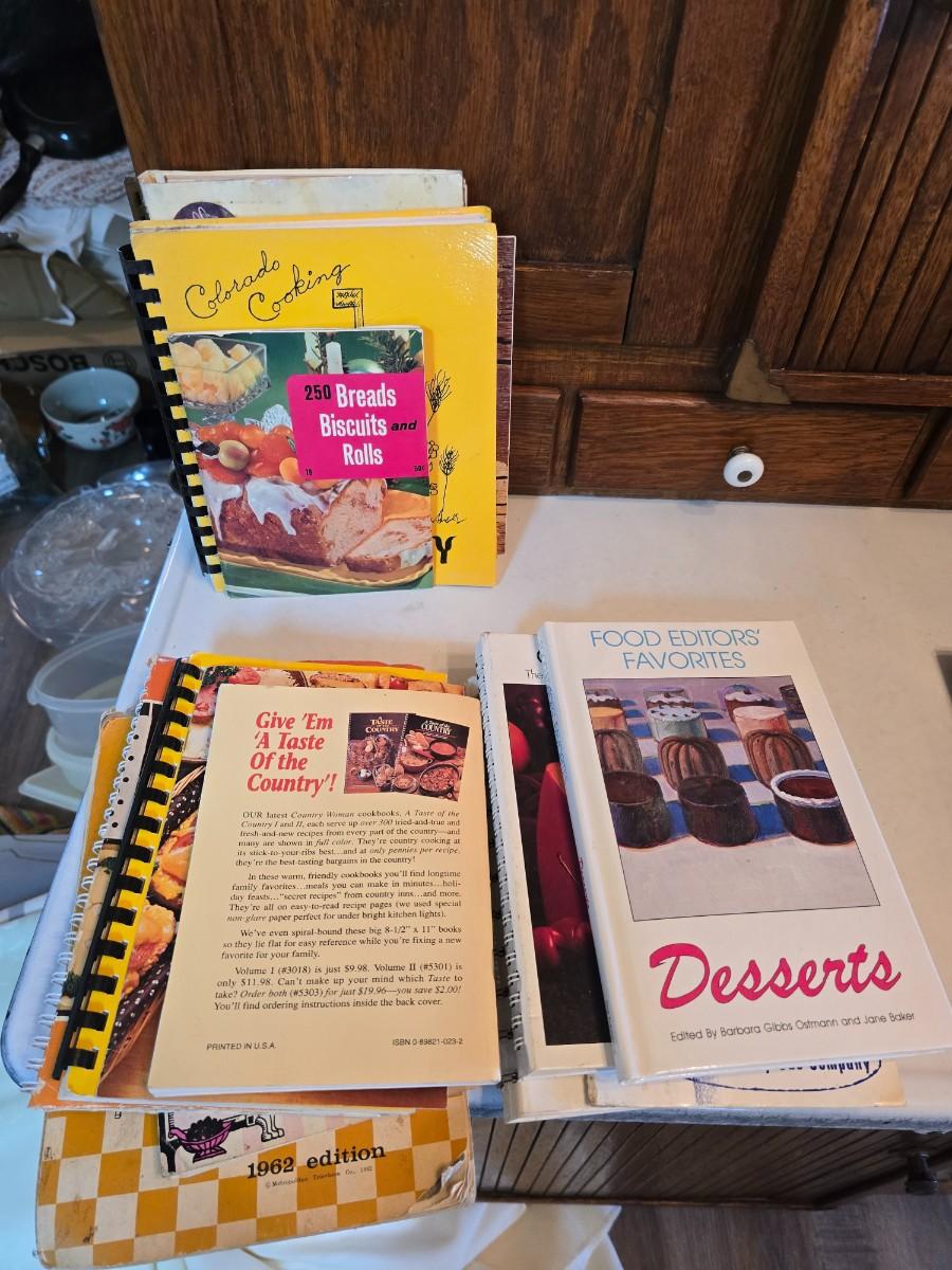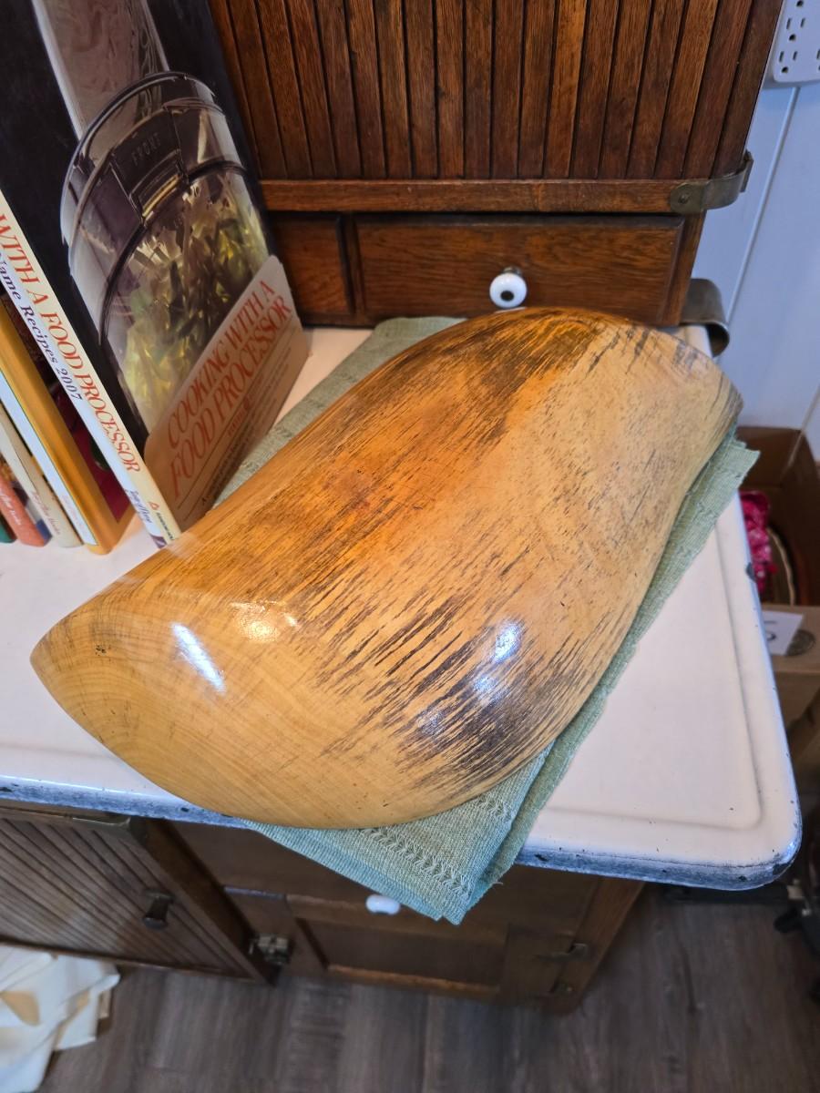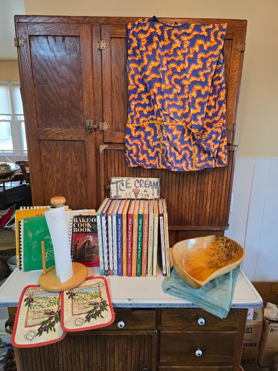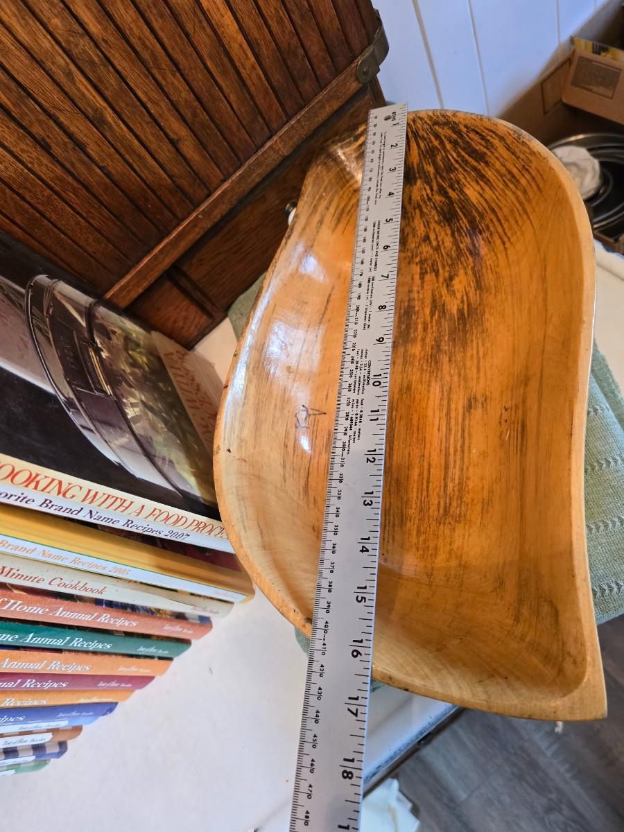 Vintage hand-hewn white birch dough bowl - cookbooks - apron - and other kitchen items