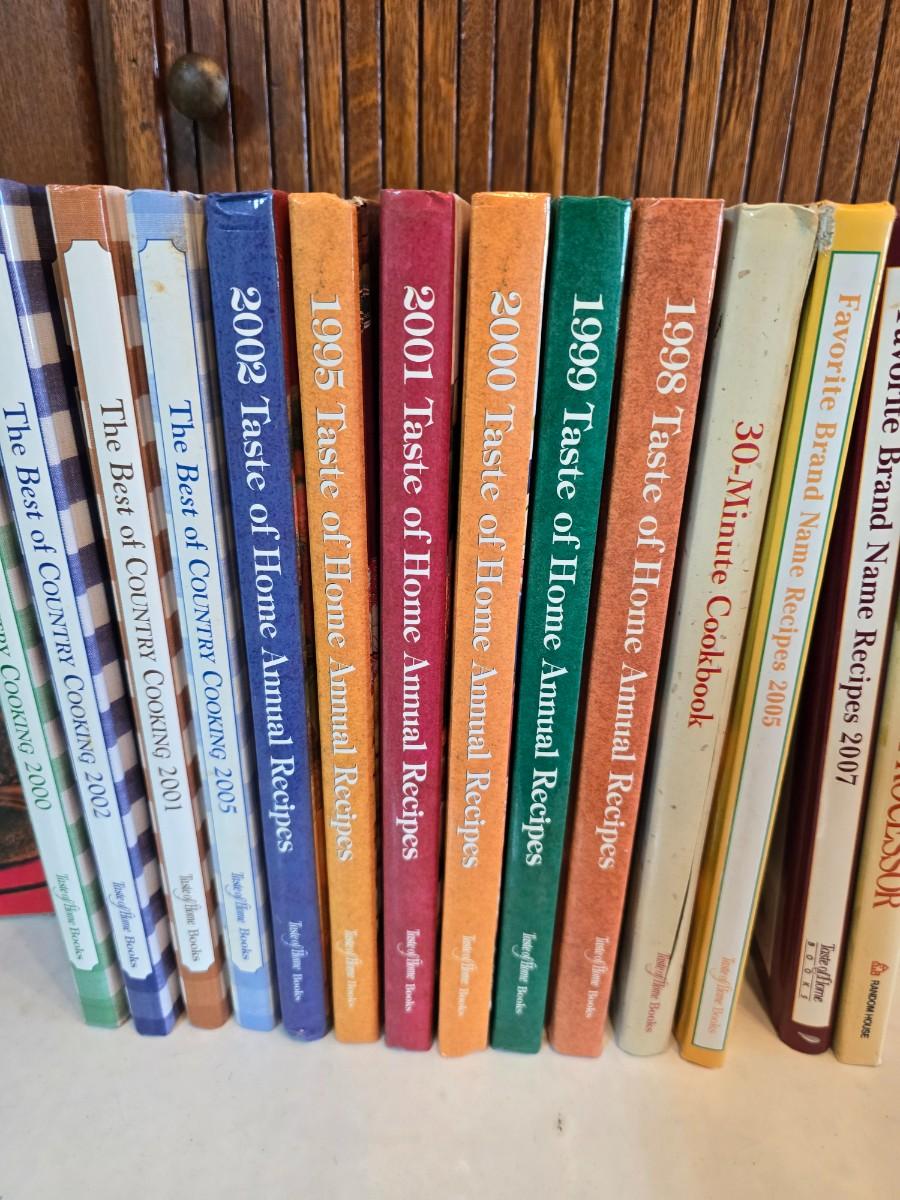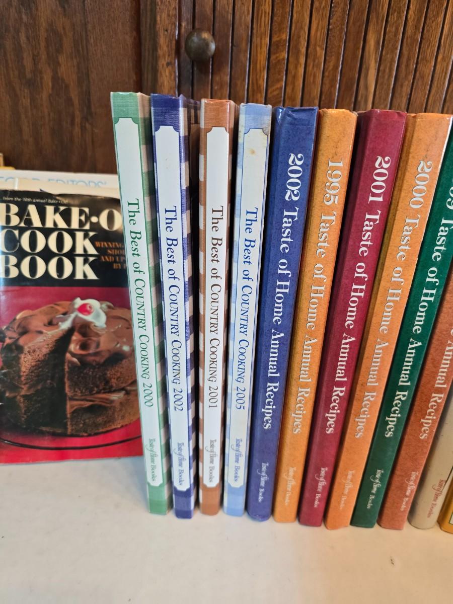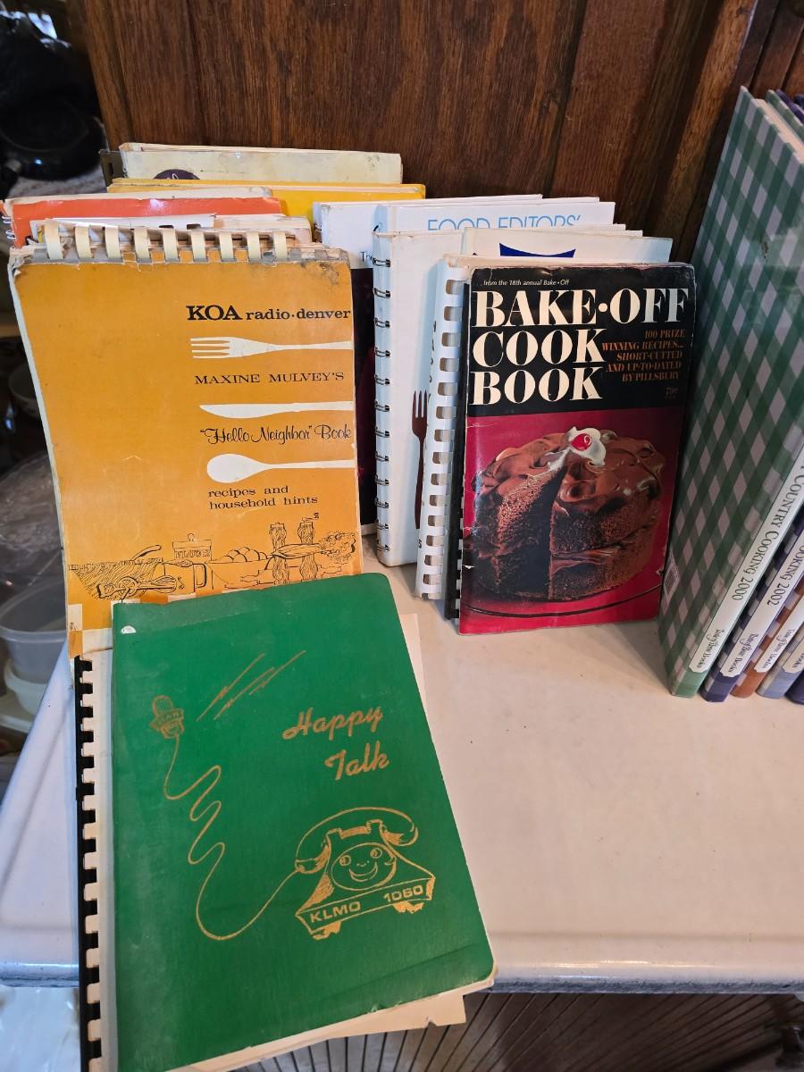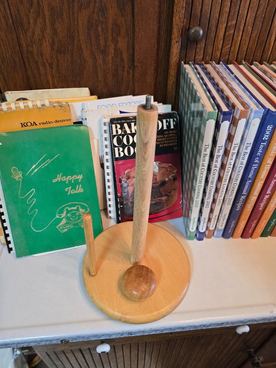 Vintage hand-hewn white birch dough bowl - cookbooks - apron - and other kitchen items