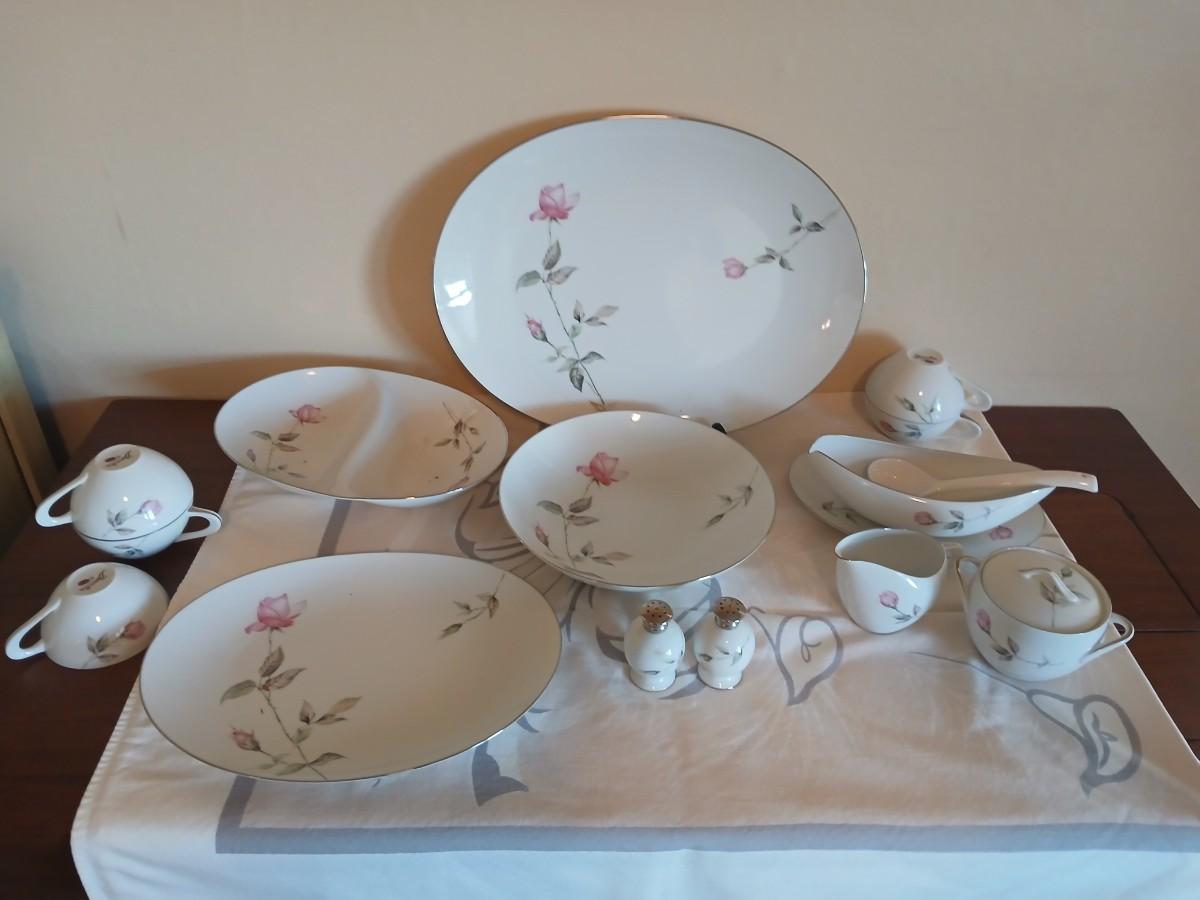 Includes platters, vegetable bowl, salt & pepper, creamer & sugar, Gravy boat, a couple cups, and a divided dish